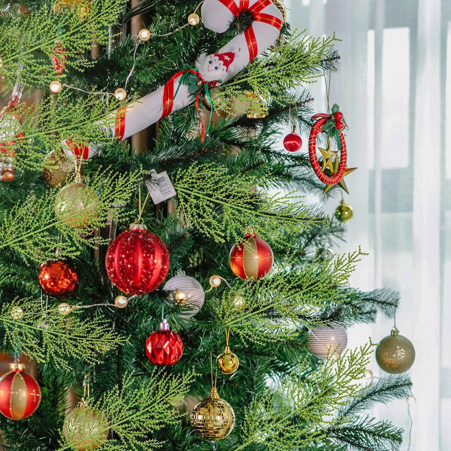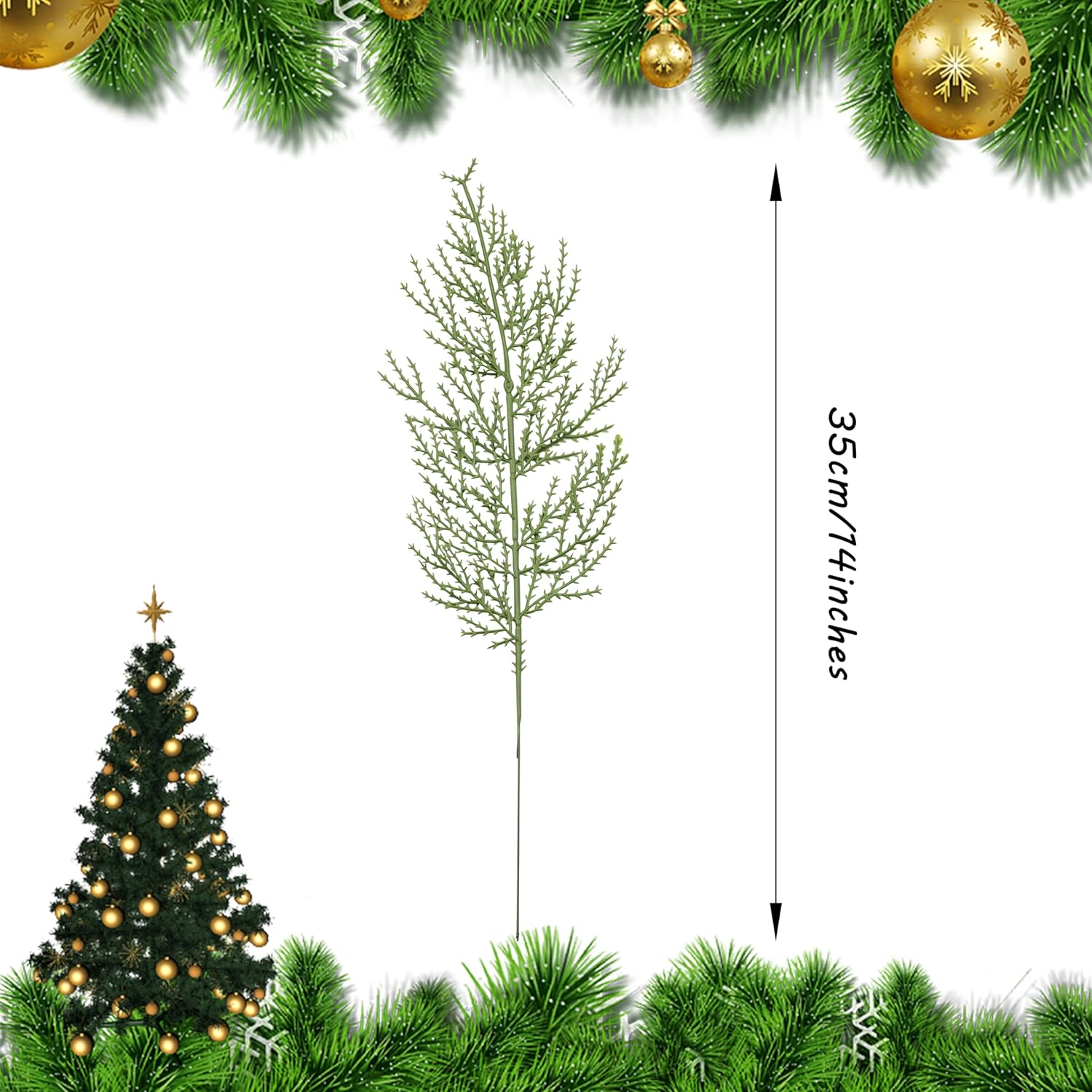 SITUMEIZI 50 Pcs Artificial Pine Branches,14 Inches Christmas Greenery Stems Cedar Faux Pine Picks Plastic Christmas Decor for DIY Craft Wreath Christmas Tree Home Kitchen Holiday Decoration(50,Green)