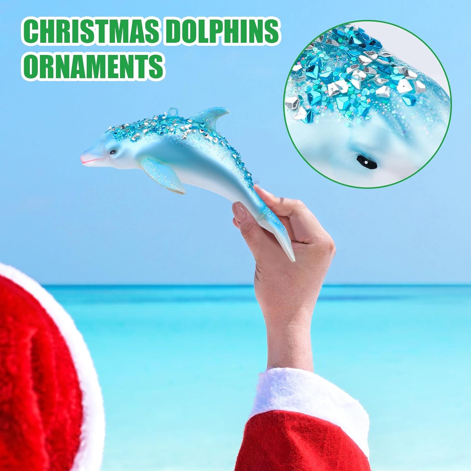 Christmas Tree Decorations: our dolphin Christmas ornament will brighten your home for the season of joy as a coastal collection In addition, vibrant dolphin designs will bring your home a timeless holiday look while creating a warm atmosphereWhat You Can Get: what you will receive are 4 pieces of glass dolphin ornaments for Christmas tree, designed in blue, cute and sufficient to use Besides, they will add a touch of holiday cheer to your living room, or wherever you decide to place them