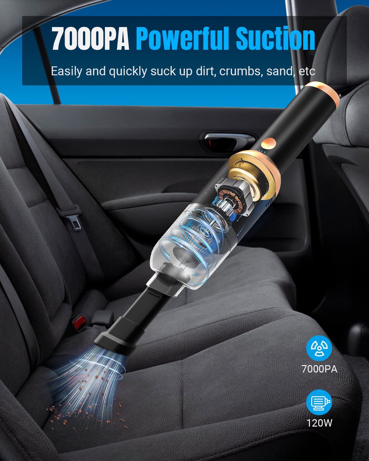 Small Car Vacuum Cordless Rechargeable, 7000Pa120W Mini Car Vacuum Cleaner, Detachable Handheld Vacuum Cordless With Led Flashlightpowerbank, Portable Vacuum Cleaner For Carhomeoutdoor
