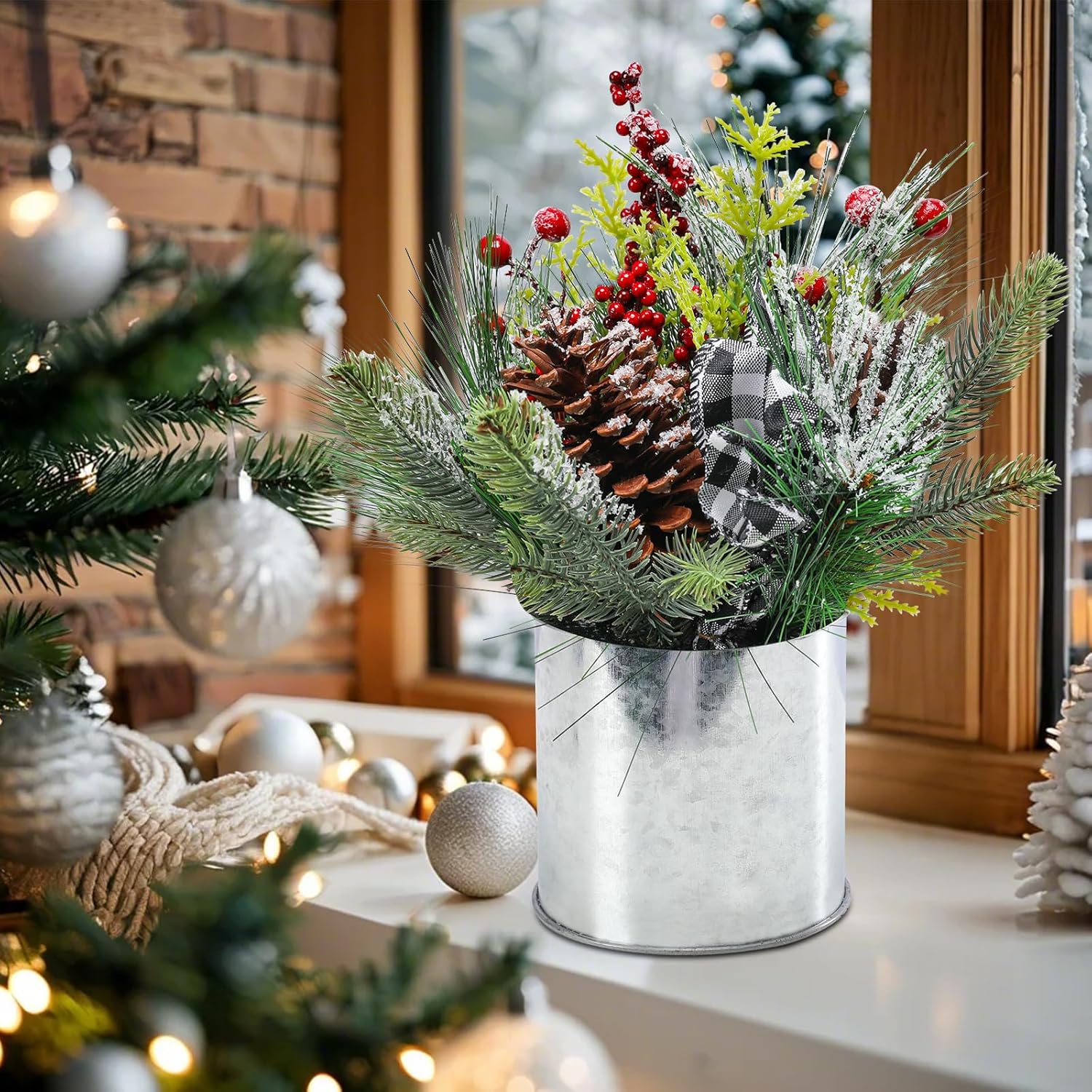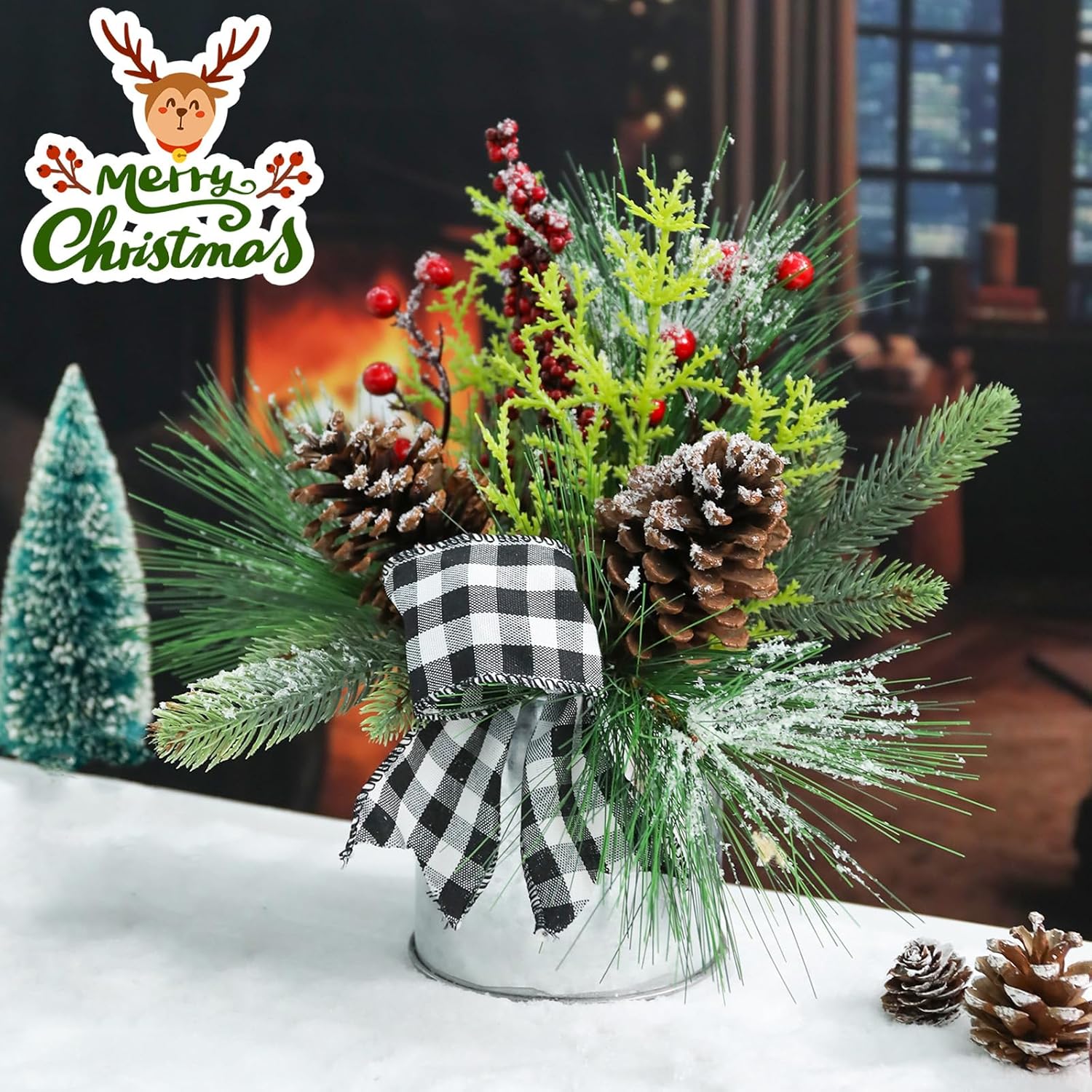 Small Christmas Tree Artificial Potted with Pinecones Berries Christmas Centerpiece Table Decorations, Christmas Flower Arrangements for Indoor Home Fireplace Mantel Xmas Decor