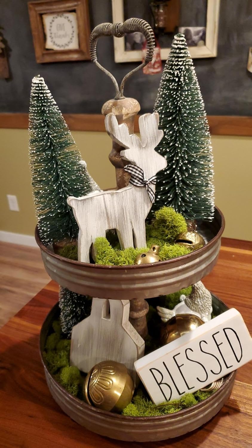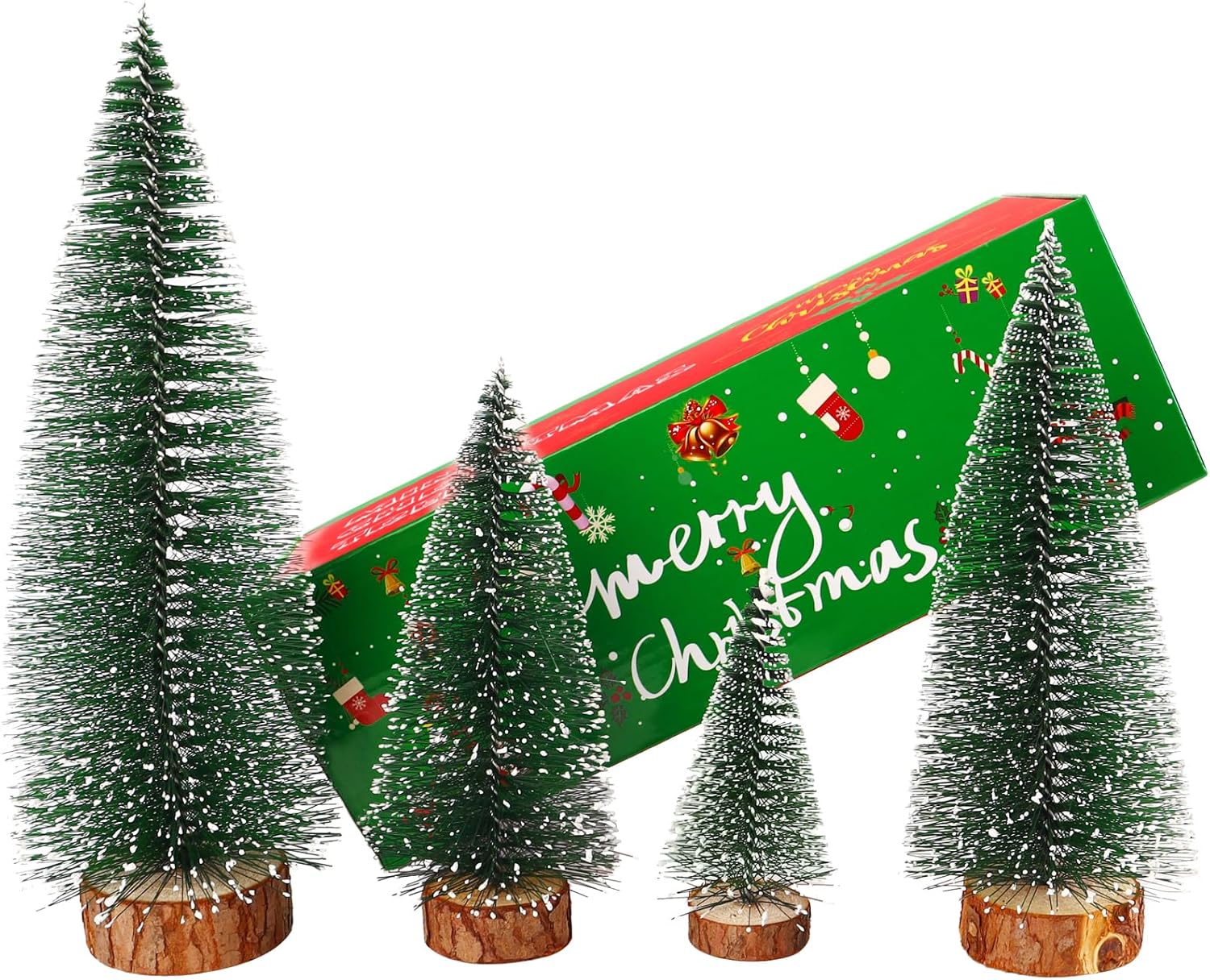 Small Christmas Tree - Christmas Table Decorations, Fake Flocked Xmas Tree Decor Mini Tinsel Christmas Tree for Kitchen Mantel Office Bedroom Window Table Top