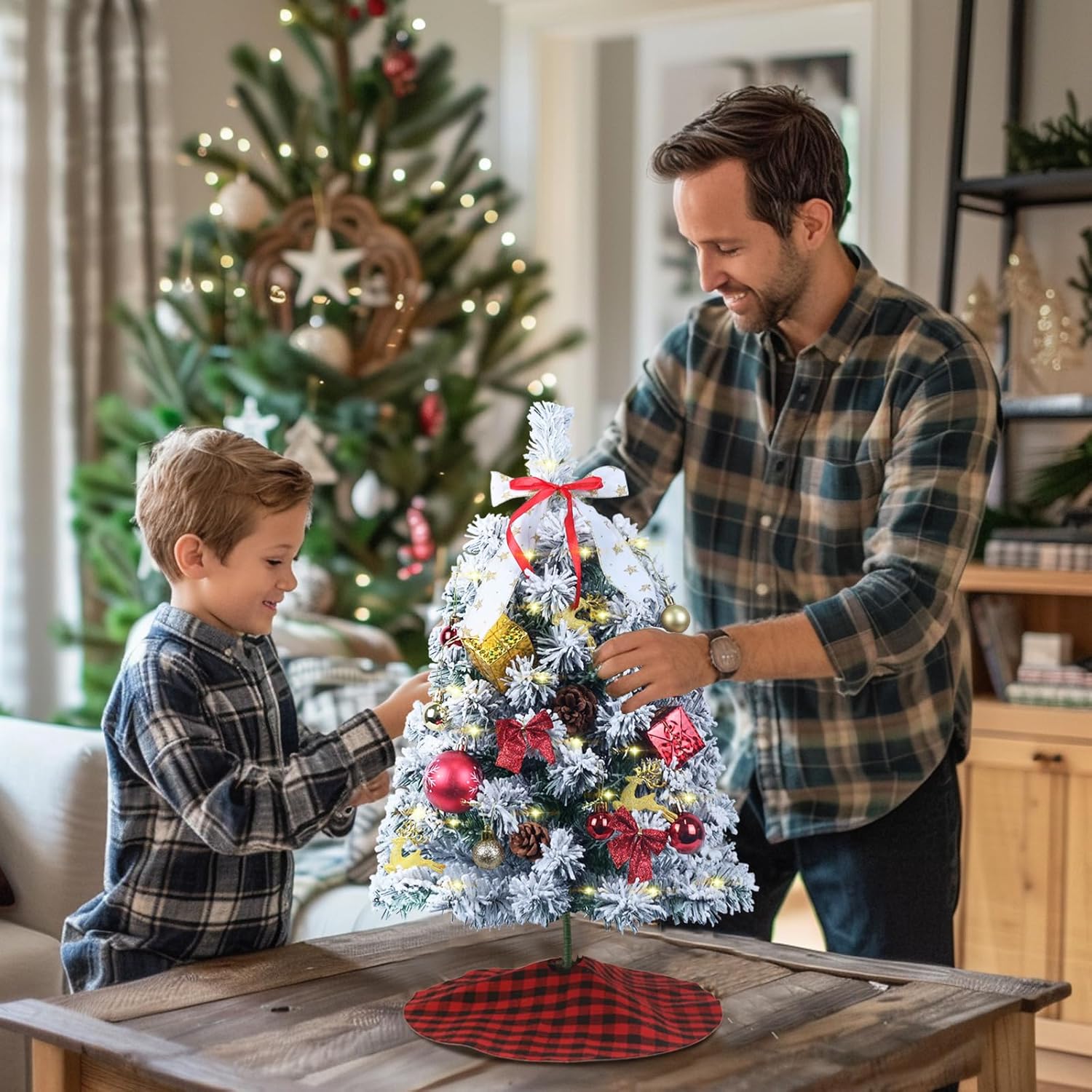 Small Christmas Tree - Mini Christmas Tree, Flocked Christmas Tree Small, Christmas Tree with Decorations, 2 Ft Christmas Tree, 24" Tabletop Christmas Tree