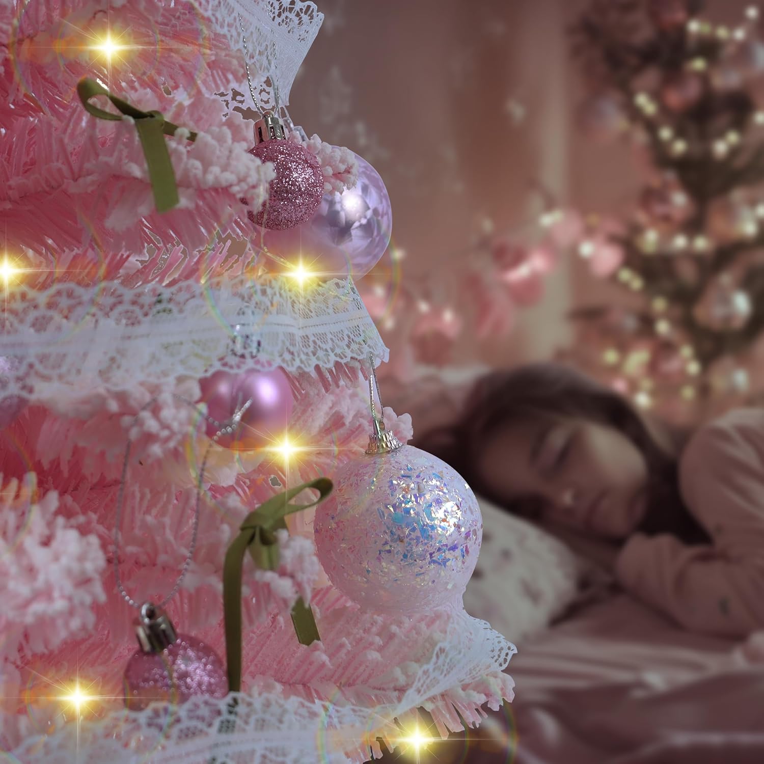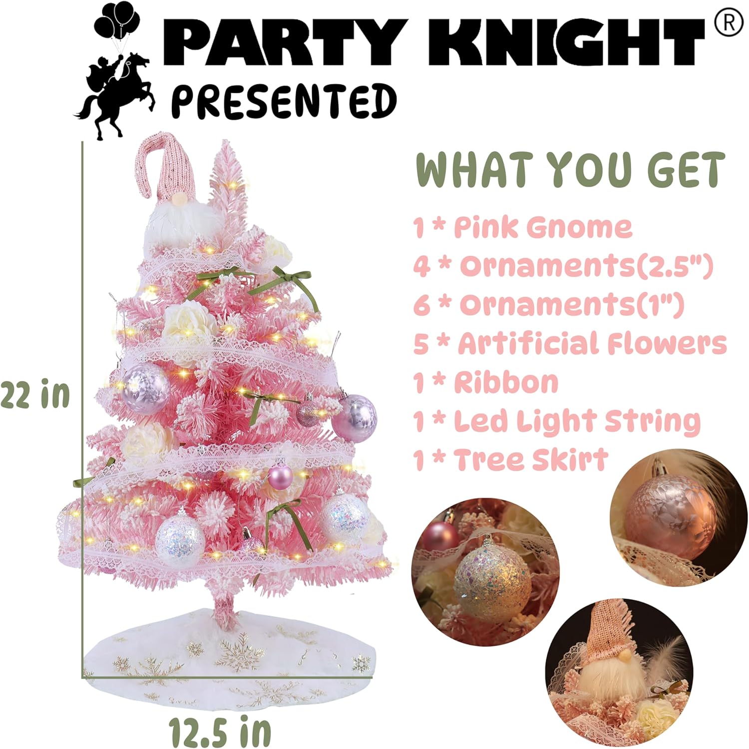 Small Christmas Tree - Mini Christmas Tree Flocked Comes with Decorations, Small Pink Christmas Tree 24 in, Decorated Christmas Tree, Tabletop Christmas Tree Pink Flocked
