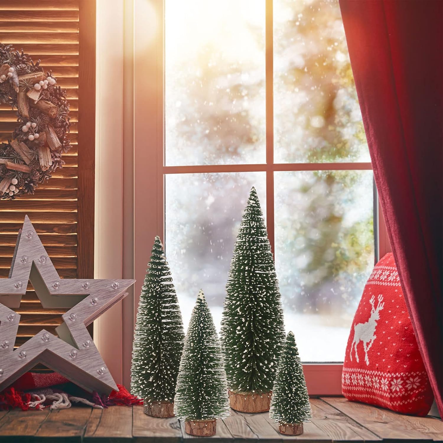 Small Christmas Tree,Mini Christmas Tree, Mini Pine Tree, Bottle Brush Fake Trees with Wooden Base for Tabletop Decorative (Plant Green)