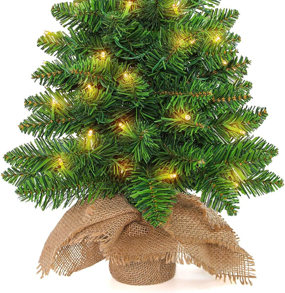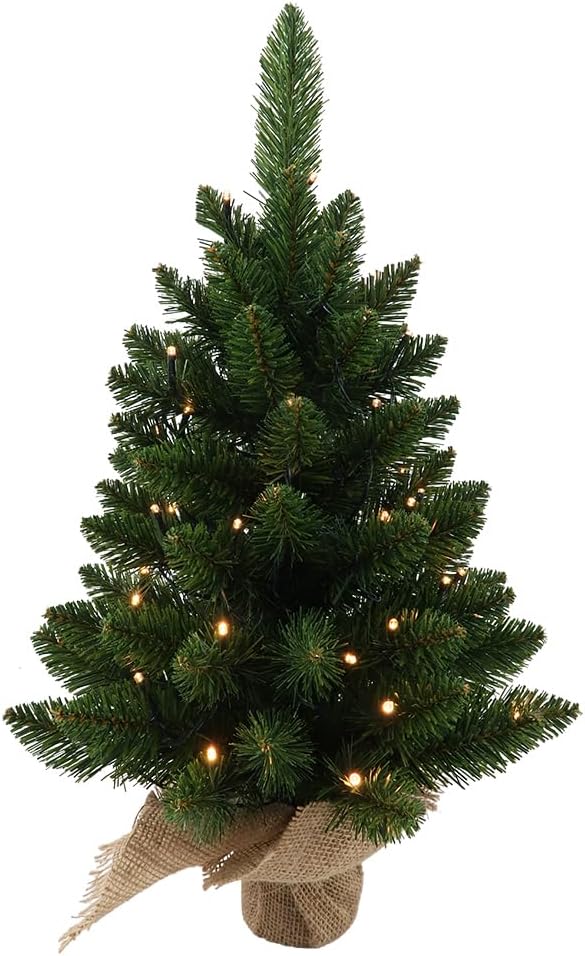 Small Christmas Tree with Lights - 2FT Pre Lit Artificial Mini Christmas Tree, Includes 50 Led Warm Lights, 73 PVC Branch Tips Thick and Full, Seasonal Indoor Home Tabletop Decor