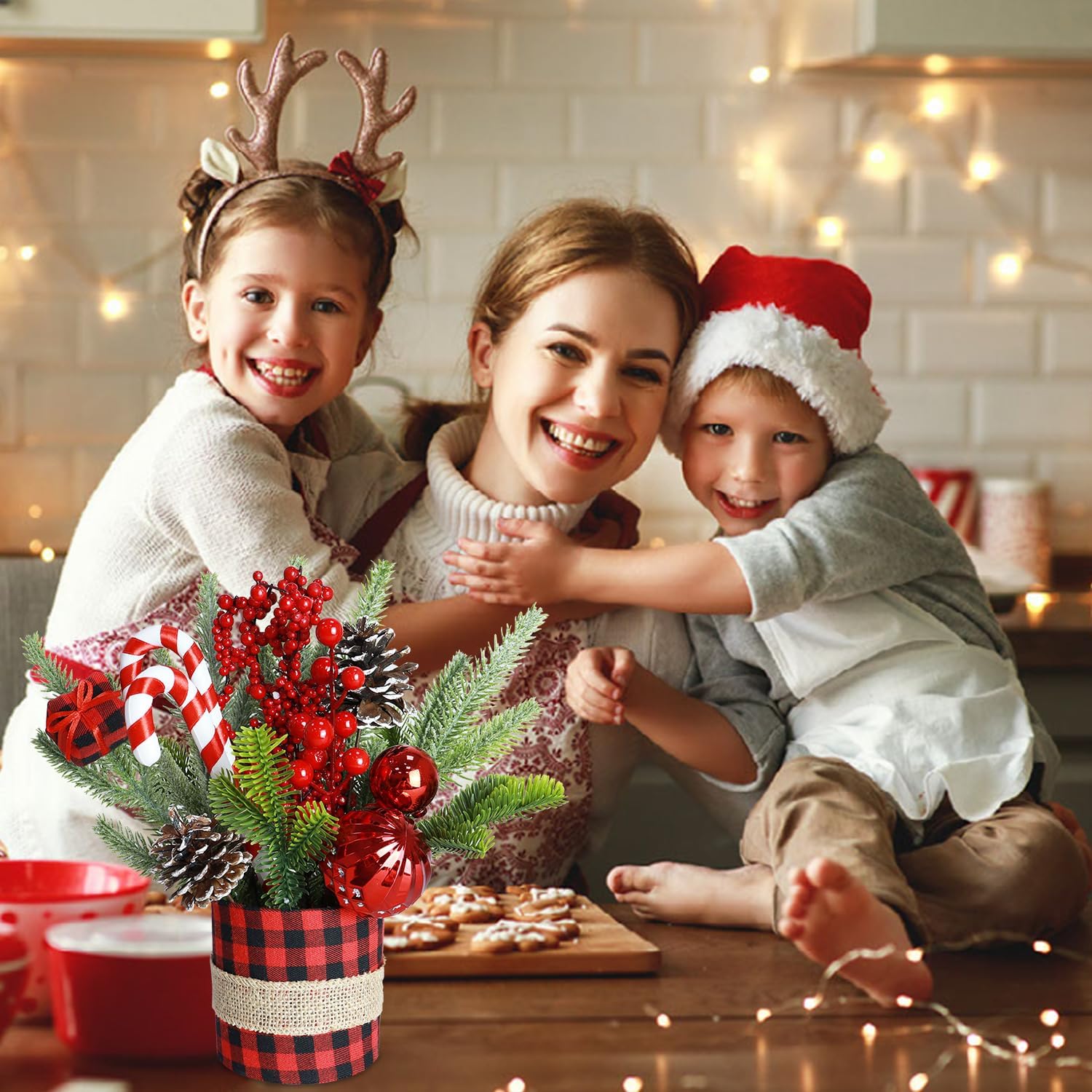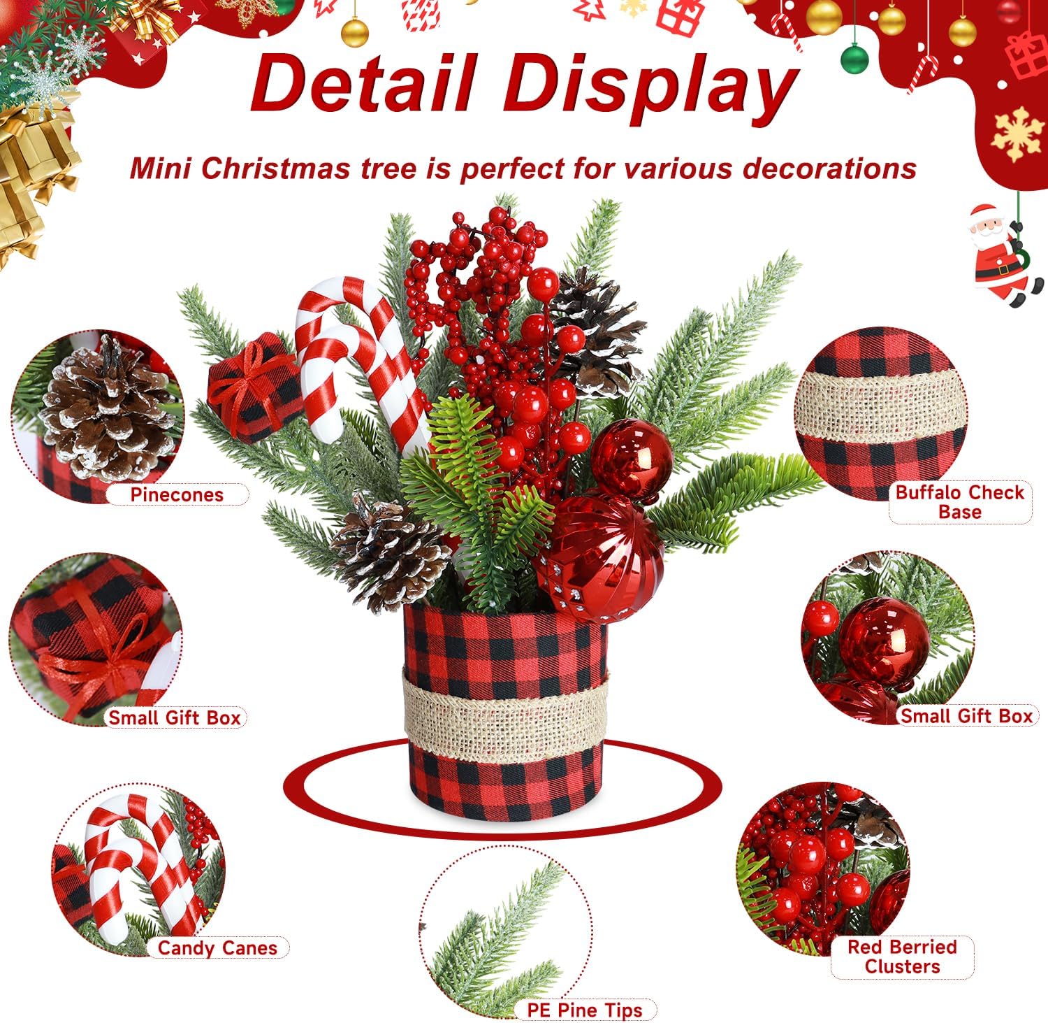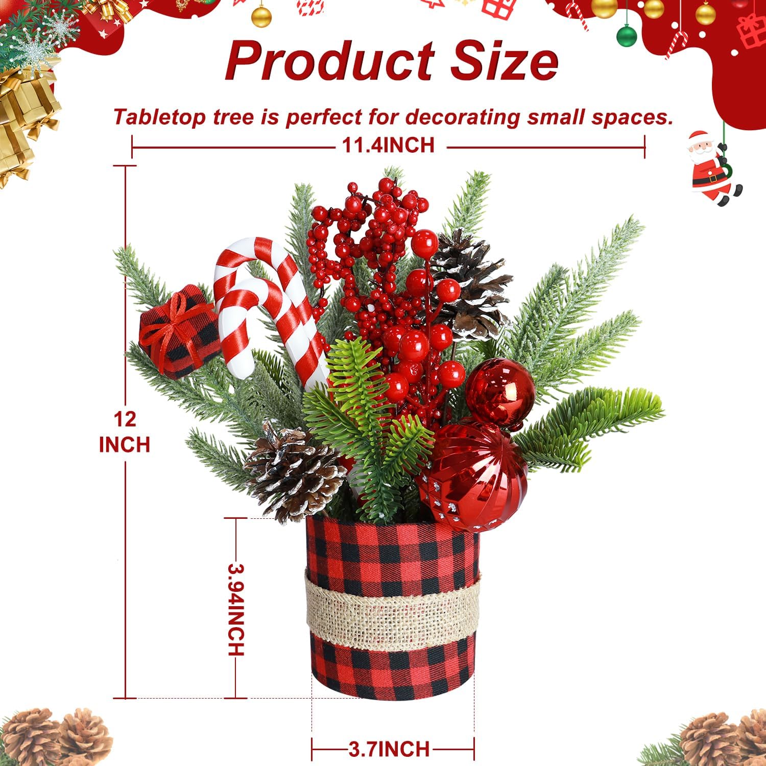 Small Tabletop Christmas Tree Artificial Mini Christmas Trees Small Red Buffalo Plaid Christmas Tree with Ornaments Desktop Xmas Tree Christmas Table Centerpieces for Xmas Holiday Decorations