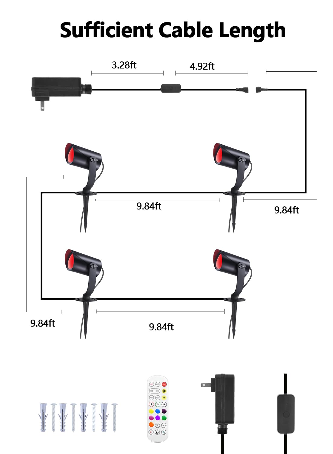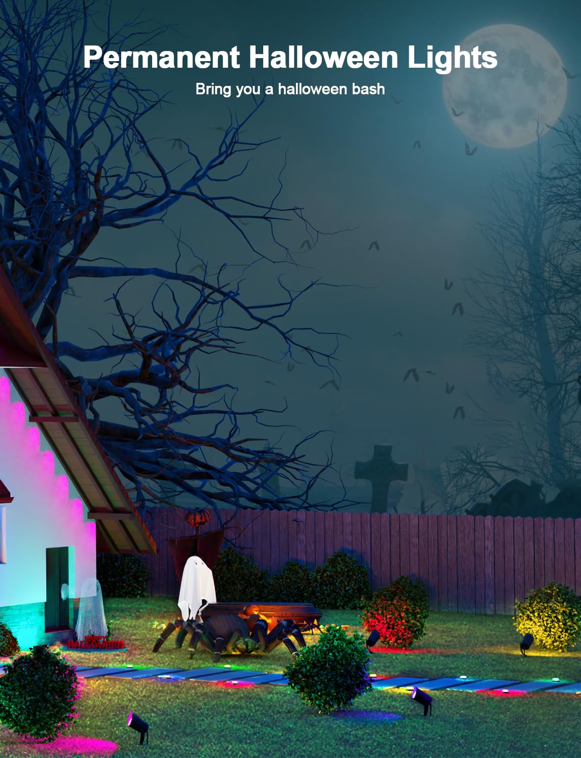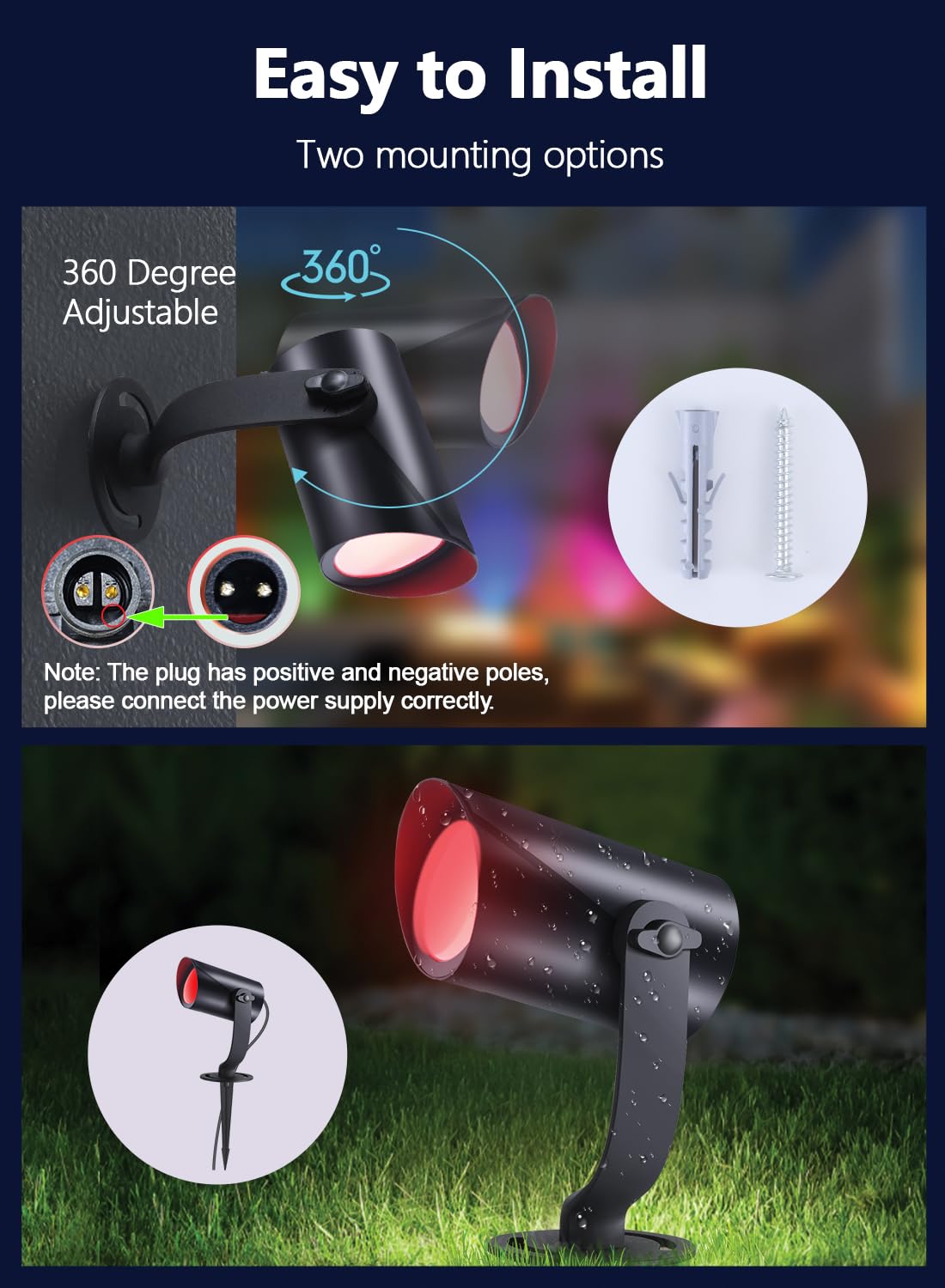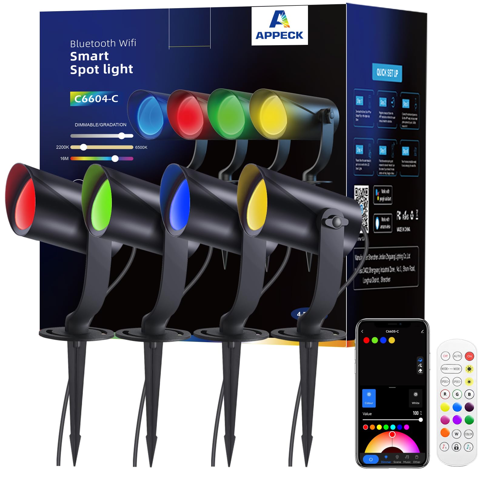 Smart Landscape Lighting, IP67 Waterproof Landscape Spotlights, 3000LM Dimmable RGBICW Pathway Lights Work with Alexa, Spot Lights for Christmas Outdoor Decoration, 4 Pack