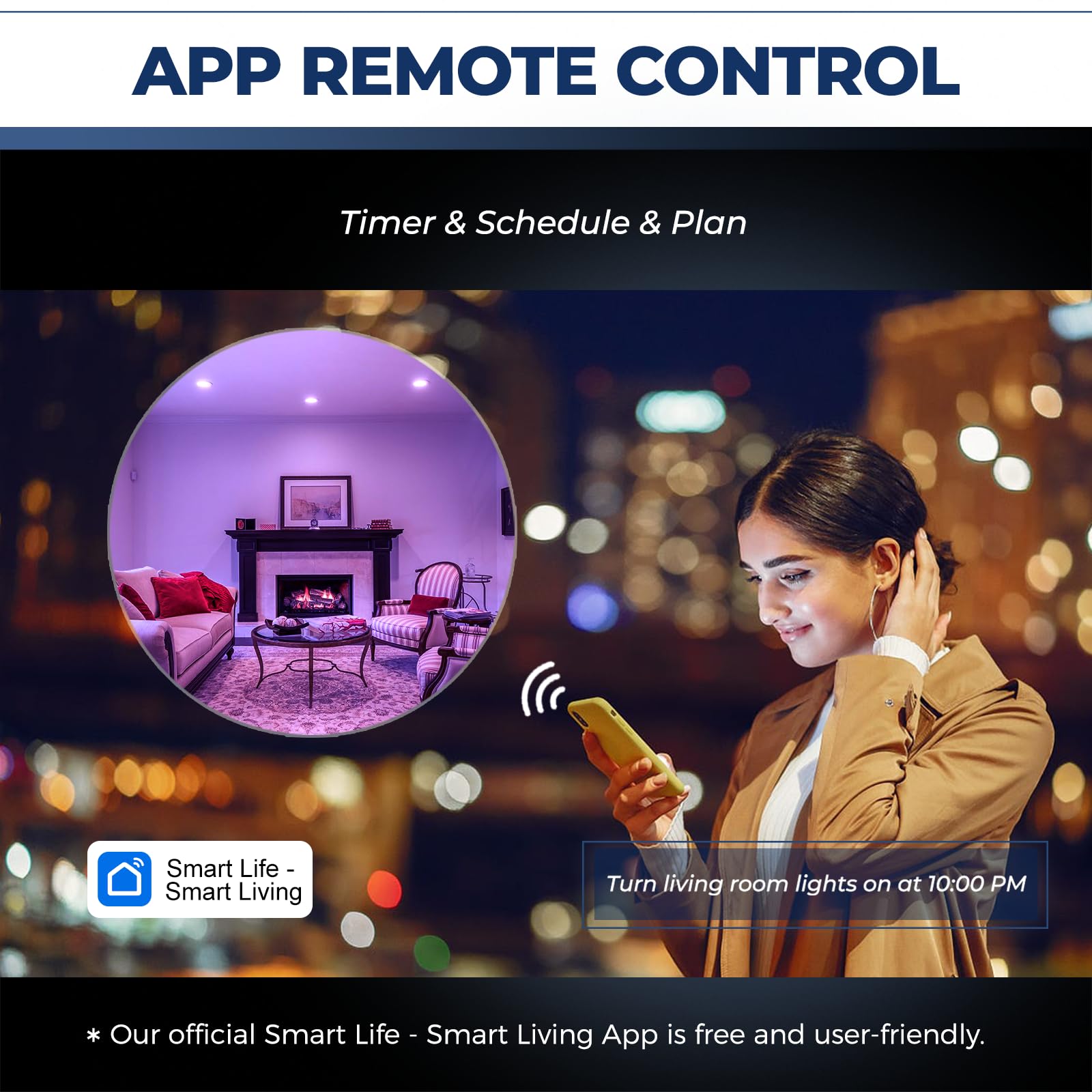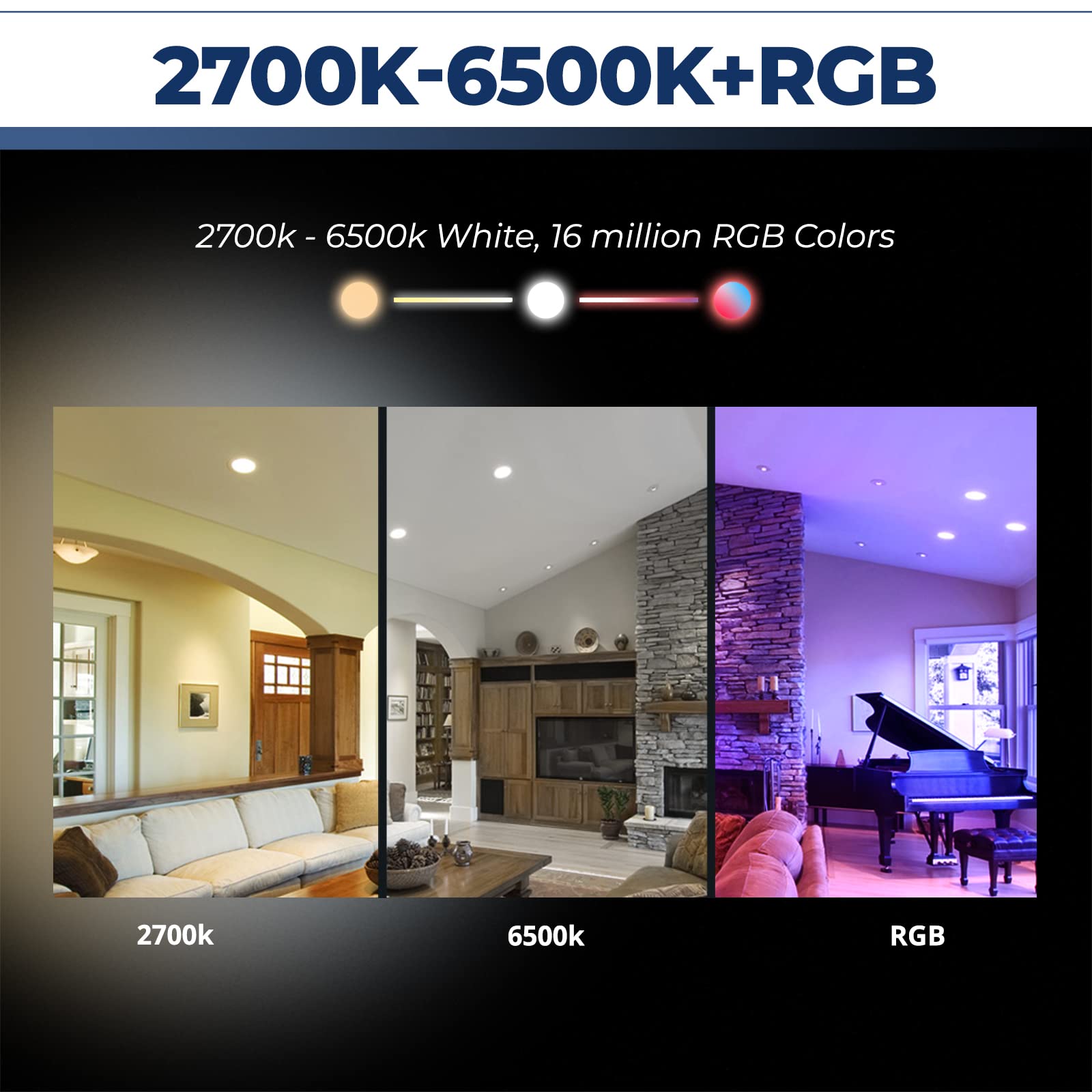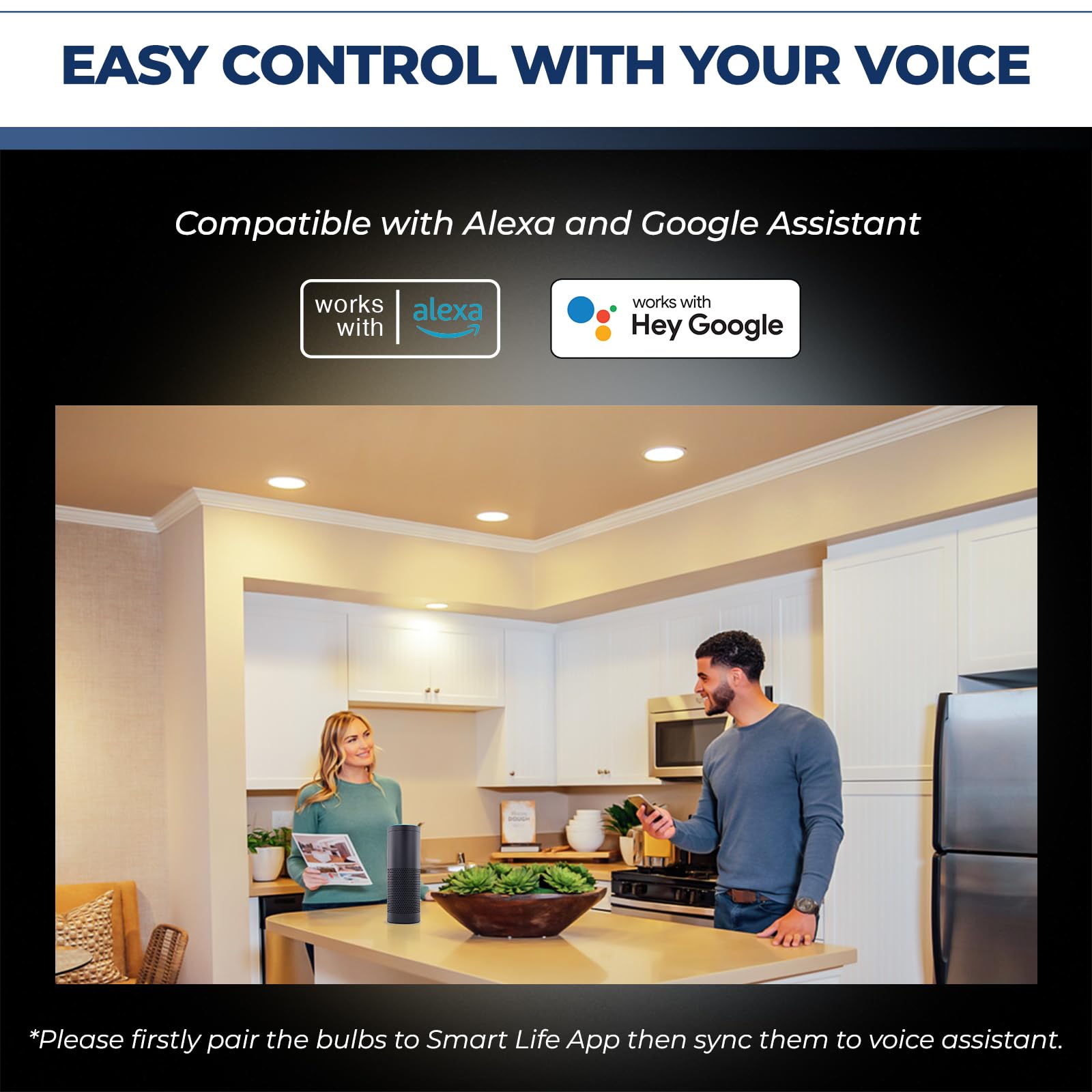 Smart Light Bulbs 75W Equivalent, 1100LM 12W RGBCW BR30 E26 Recessed Flood Light Bulb Compatible with Alexa/Google Assistant/Smart Life, No Hub Required, 2.4G WiFi, ETL Listed, 4PCS