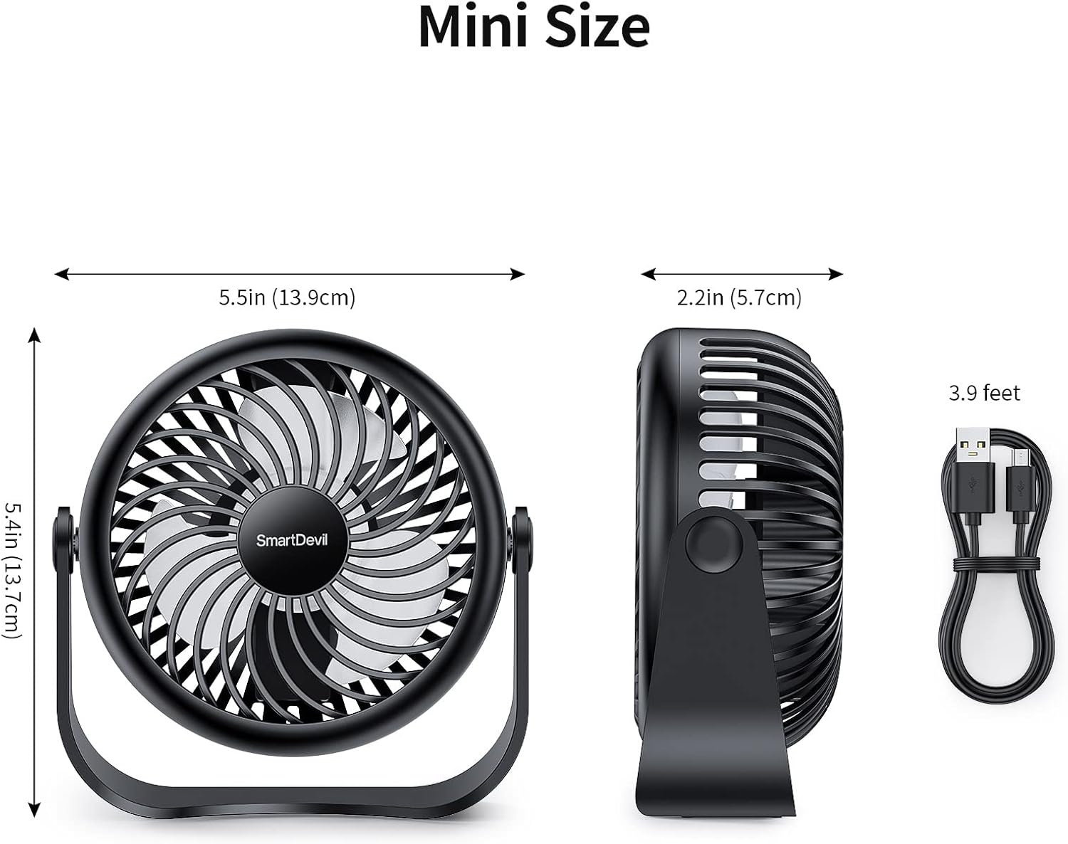 Smartdevil Usb Desk Fan, 3 Speeds Portable Mini Desktop Fan, 360° Adjustment Small Personal Table Fan For Home Office Car Outdoor