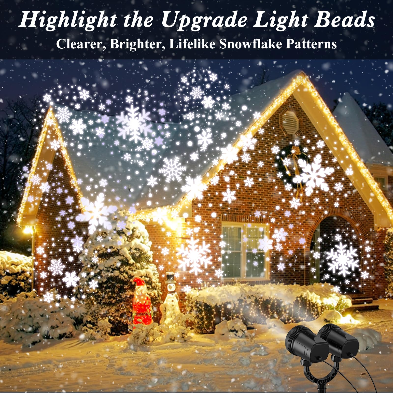 Snowflake Christmas Projector Light Outdoor - d Double Head Projection Design, IP65 Waterproof LED Christmas Light Projector for Xmas Holiday Party Patio Garden Yard Decoration