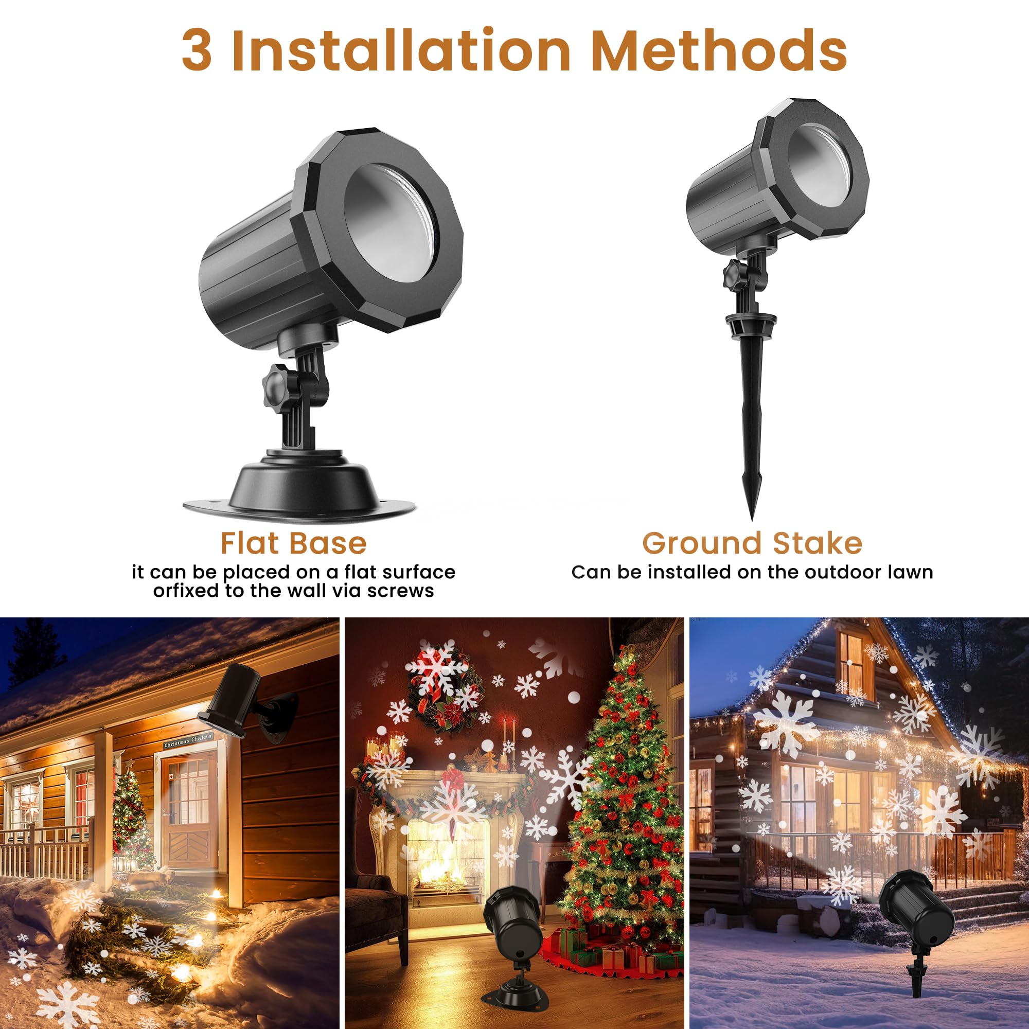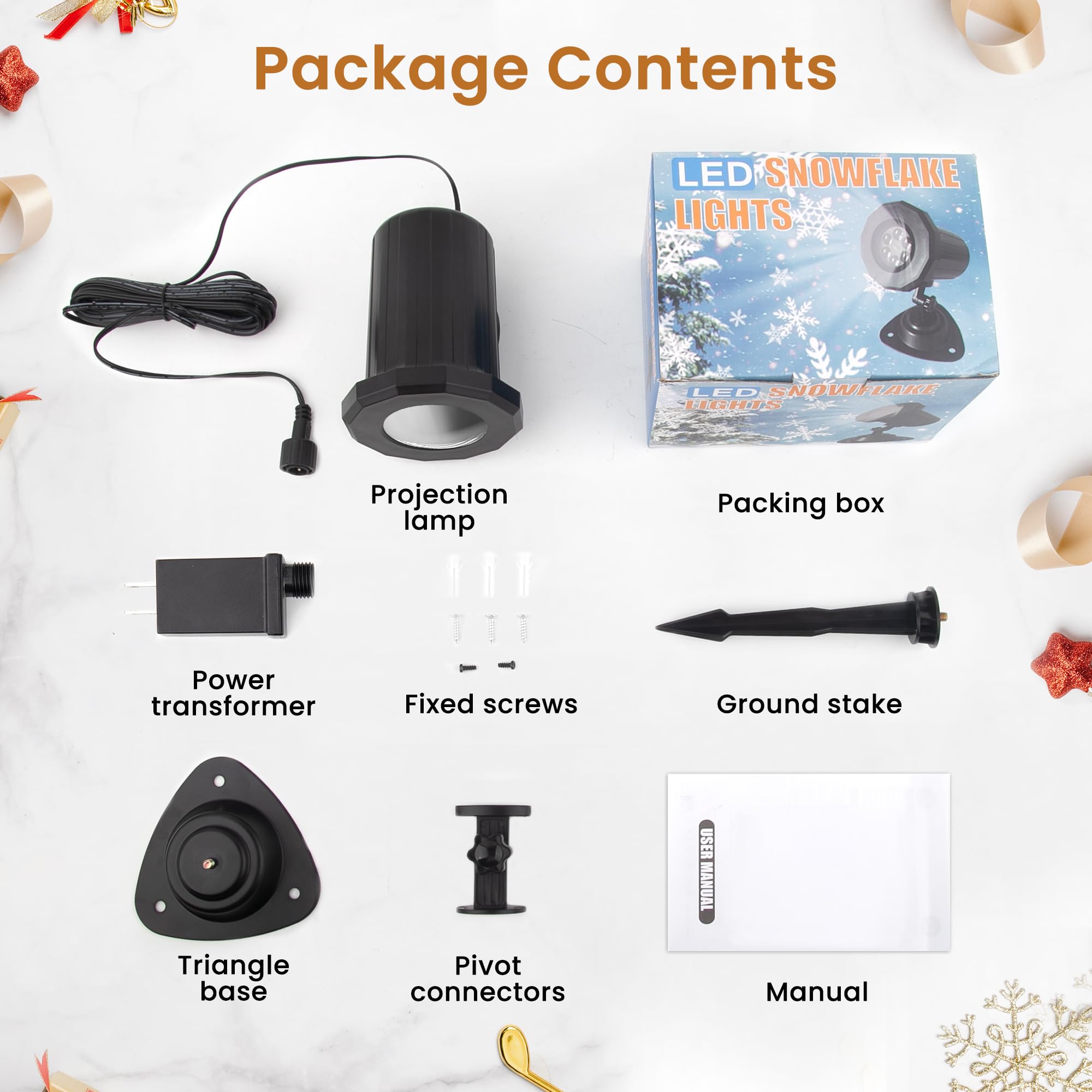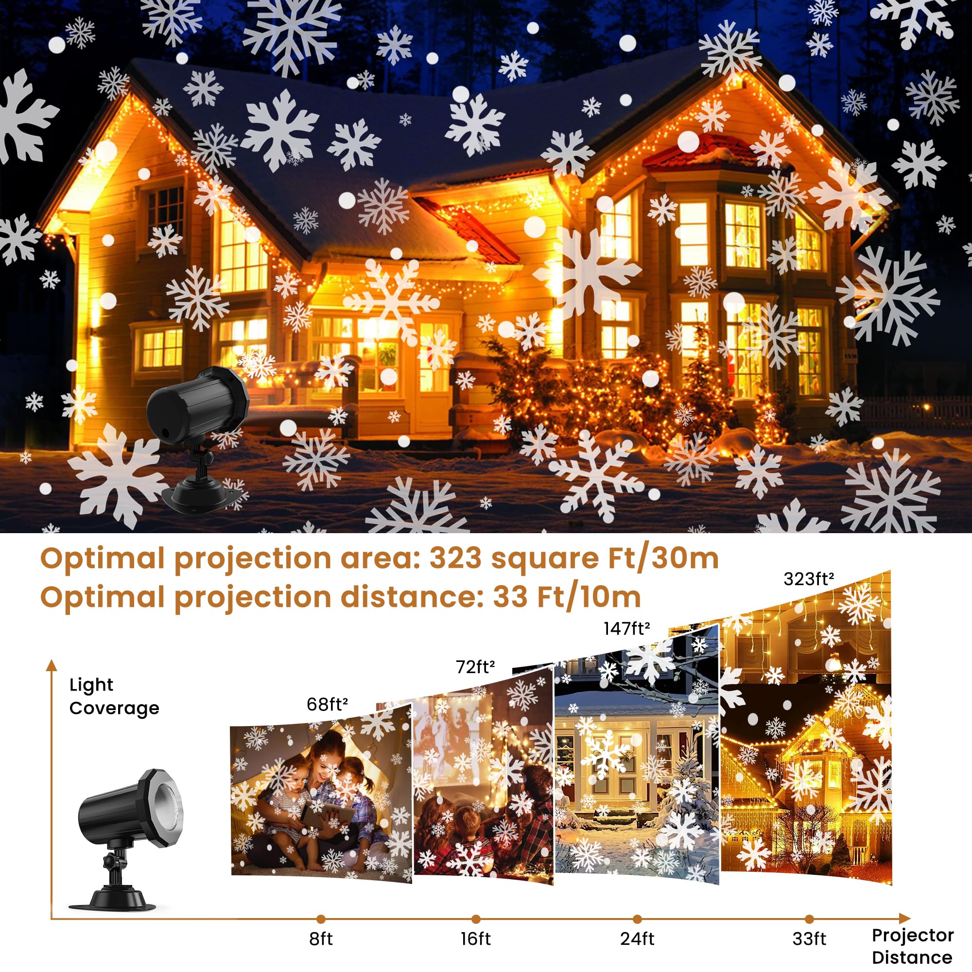 Snowflake Christmas Projector Lights Outdoor, Single-Head Dynamic Snowfall Projection Light, Waterproof Xmas Decoration Lighting for Wall Patio Yard Indoor Wall