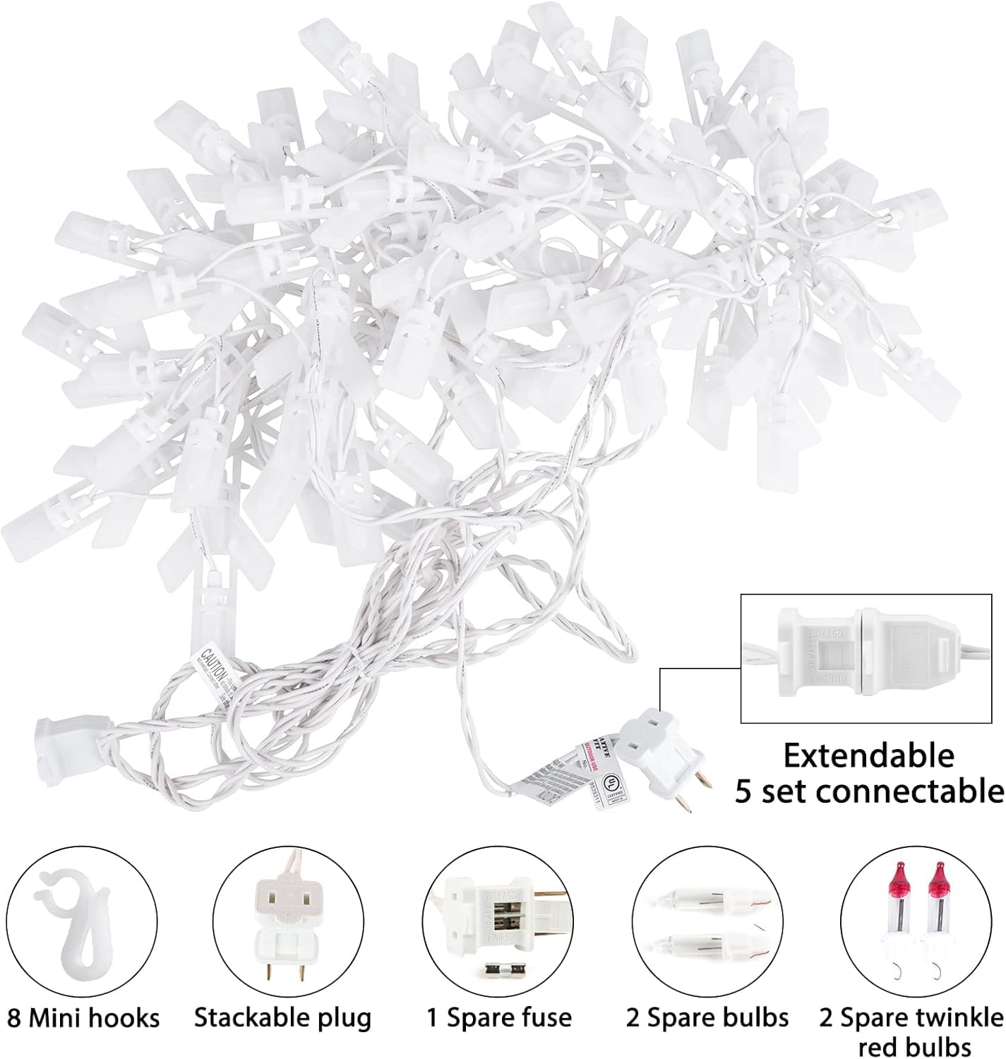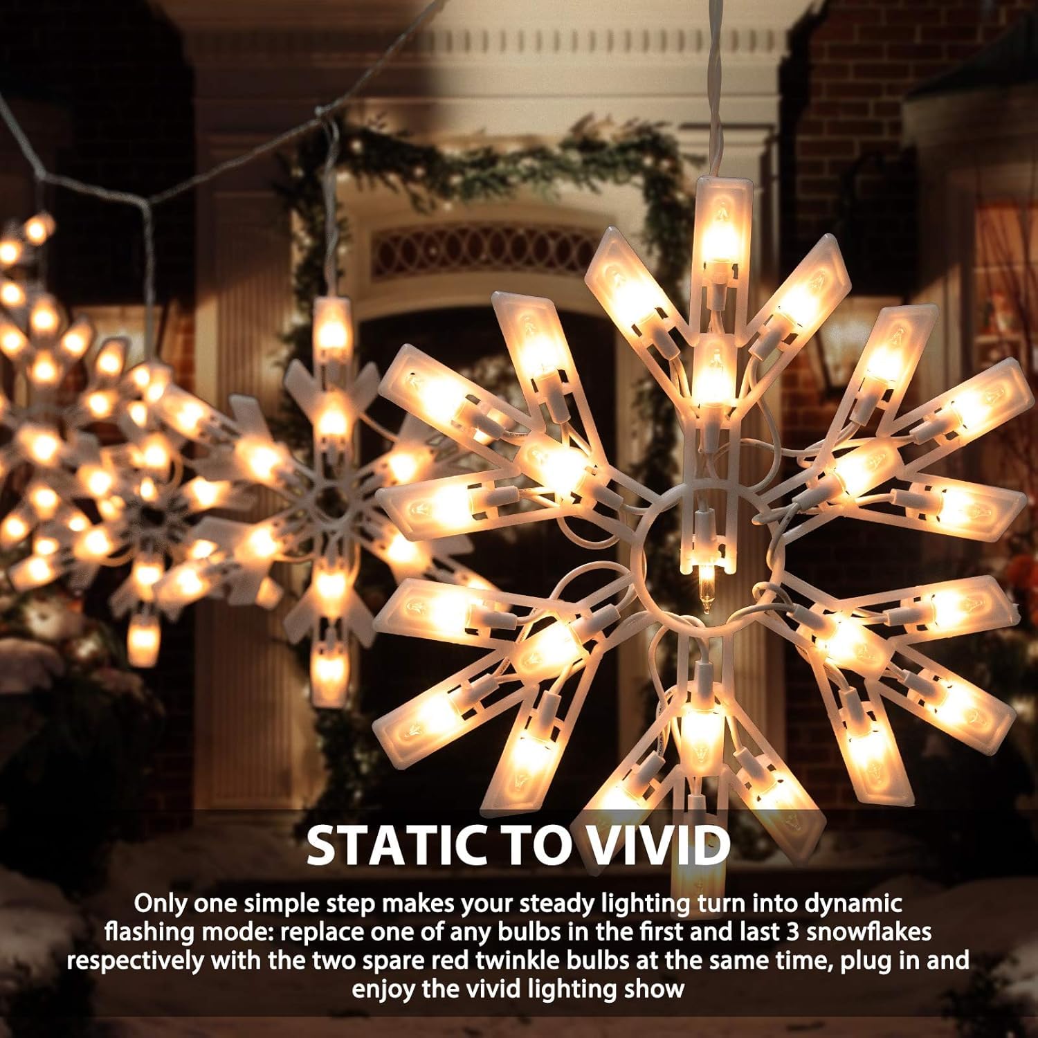 Snowflake Christmas String Lights with 9 Drops - 13ft 150 Mini Bulb Icicle Lights with Clips, Plug-in Connectable Hanging Lights for Front Porch House Tree Pation Decor Holiday Décor