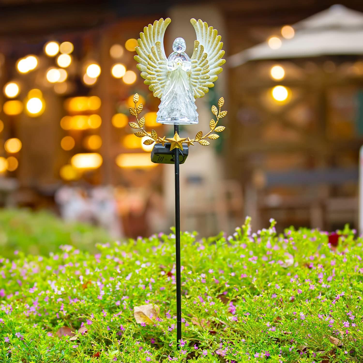 Solar Angel Garden Stake Lights Solar Metal Angel Outdoor Lights Cemetery Grave Garden Remembrance s Waterproof Garden Patio Yard Lawn Decoration