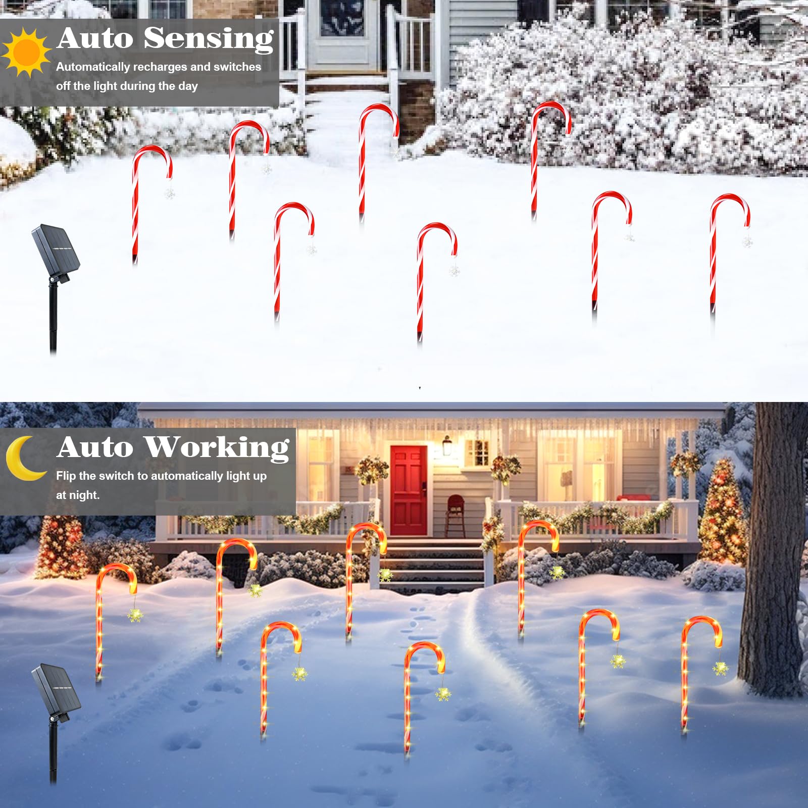Solar Candy Cane Lights Christmas, 12pcs Christmas Candy Cane Outdoor Pathway Lights, 20" Candy Canes Outdoor Decorations with Hanging Star,Candy Cane Lights for Garden/Lawn/Tree/Pathway/Patio