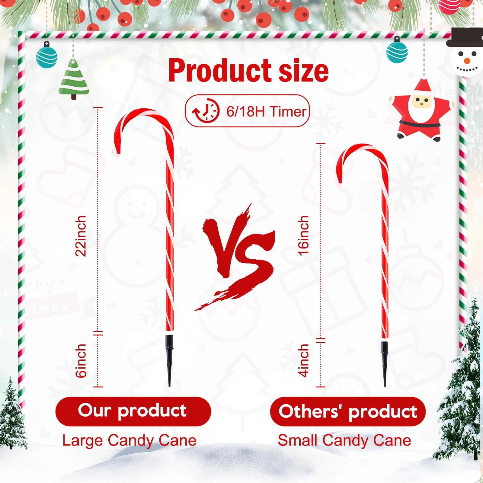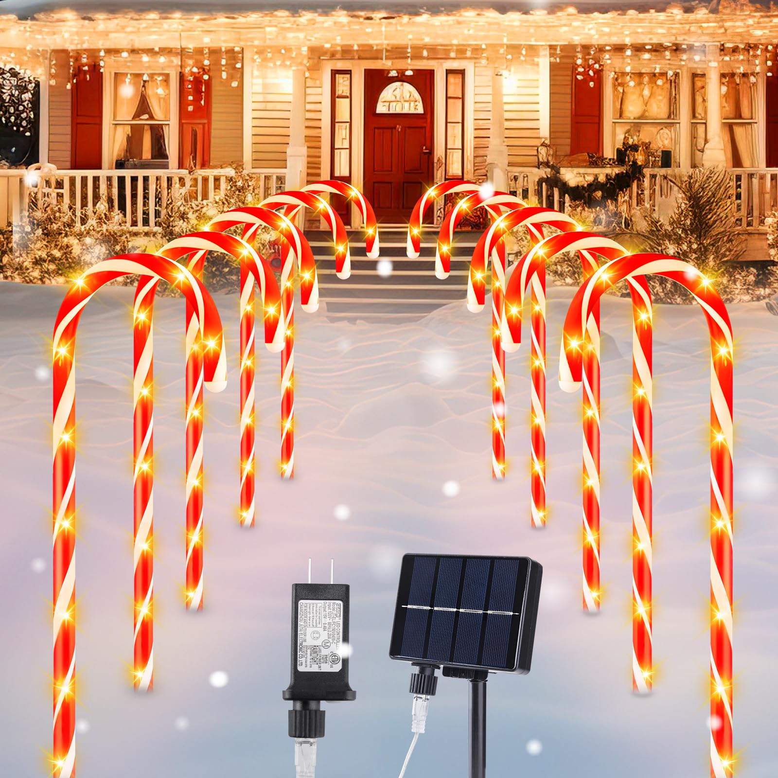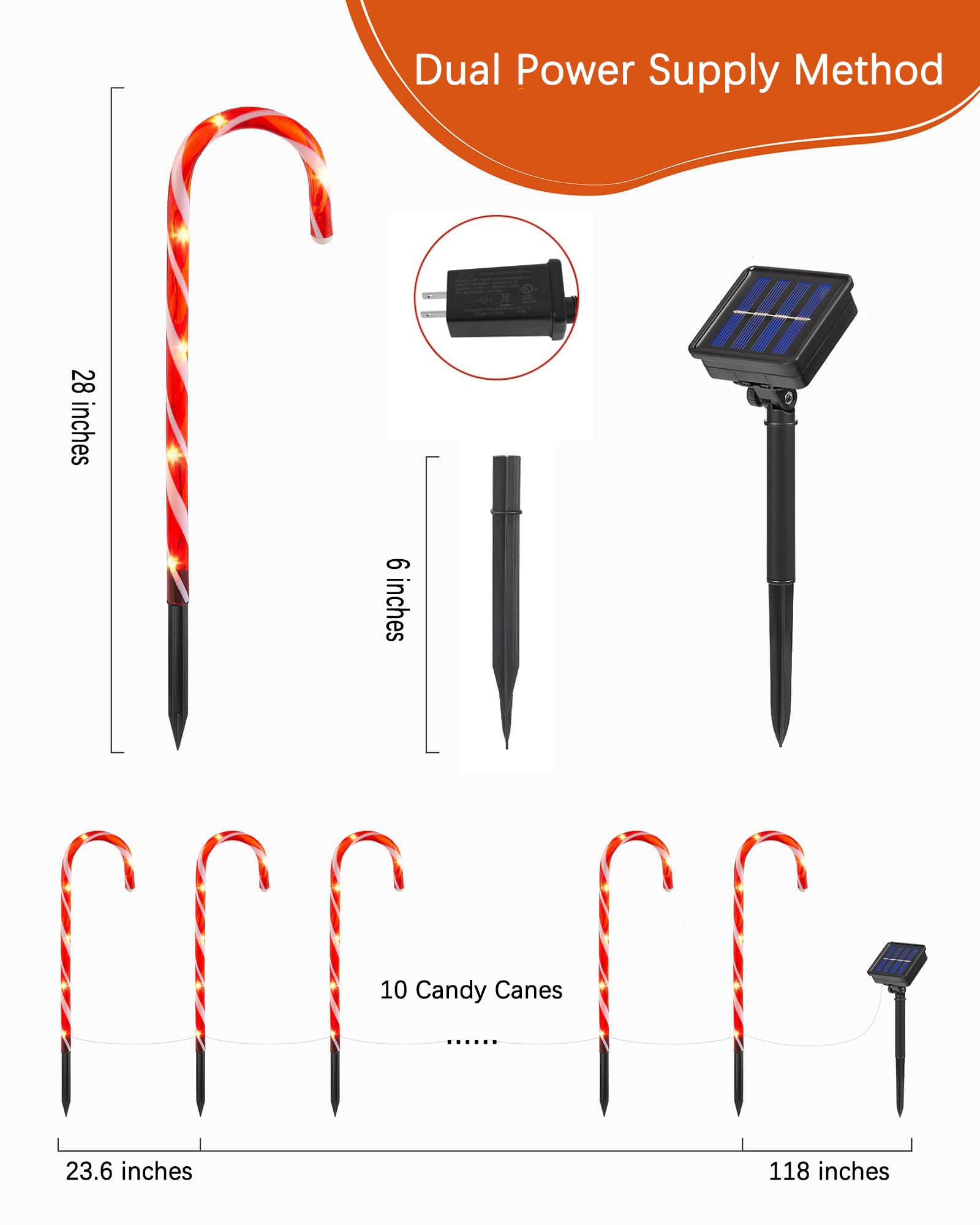 Solar Candy Cane Lights Outdoor Pathway, 28" Large Candy Cane Christmas Pathway Lights Outdoor with Solar Panel and Power Plug, Outdoor Christmas Decorations Yard, 10 Packs