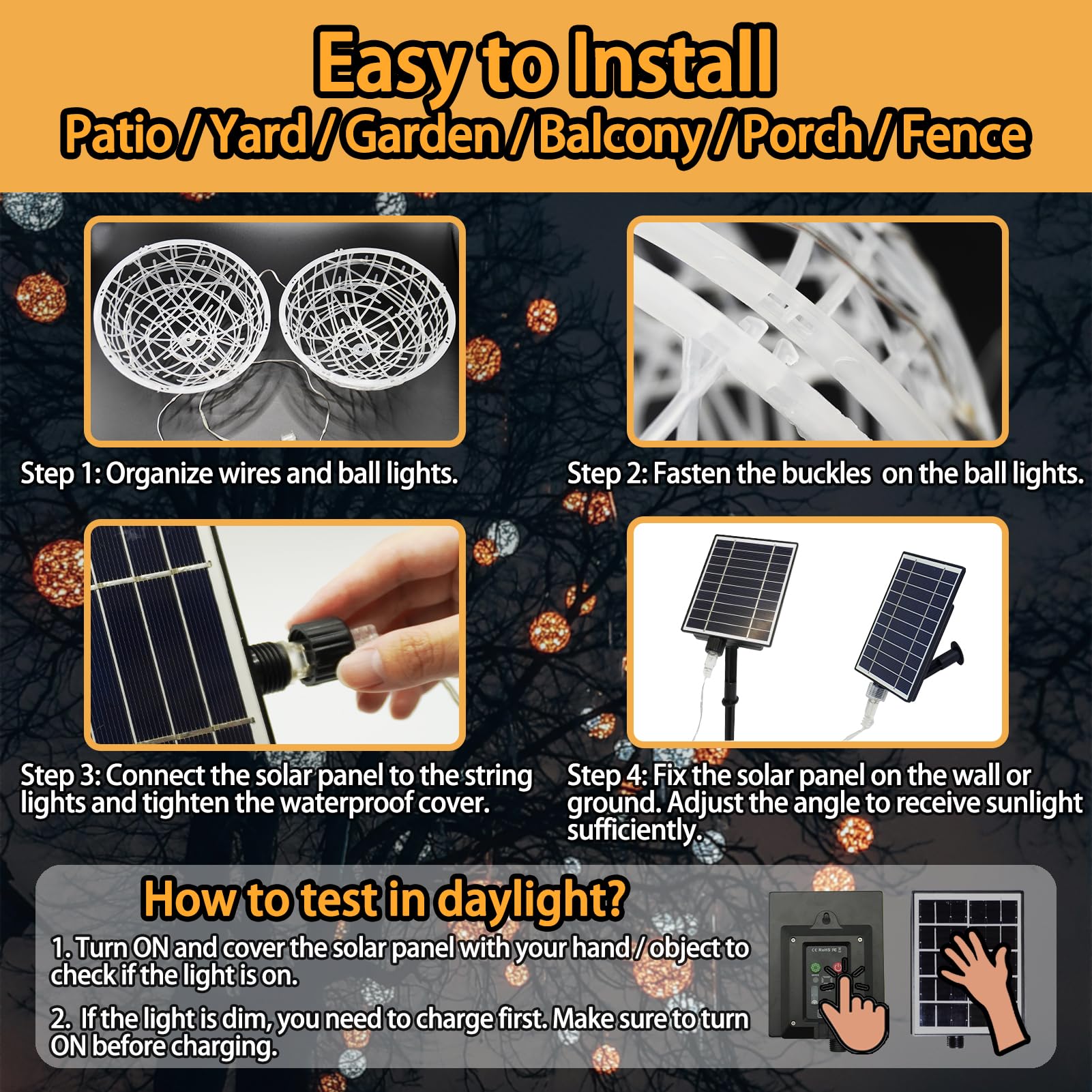 Solar Christmas Ball Lights for Tree Outdoor, 4 Pack 160 LED Globe Lights Waterproof, 8 Modes Solar Sphere String Lights Outside for Window Garden Yard Porch Wedding Party Decorations, Warm White