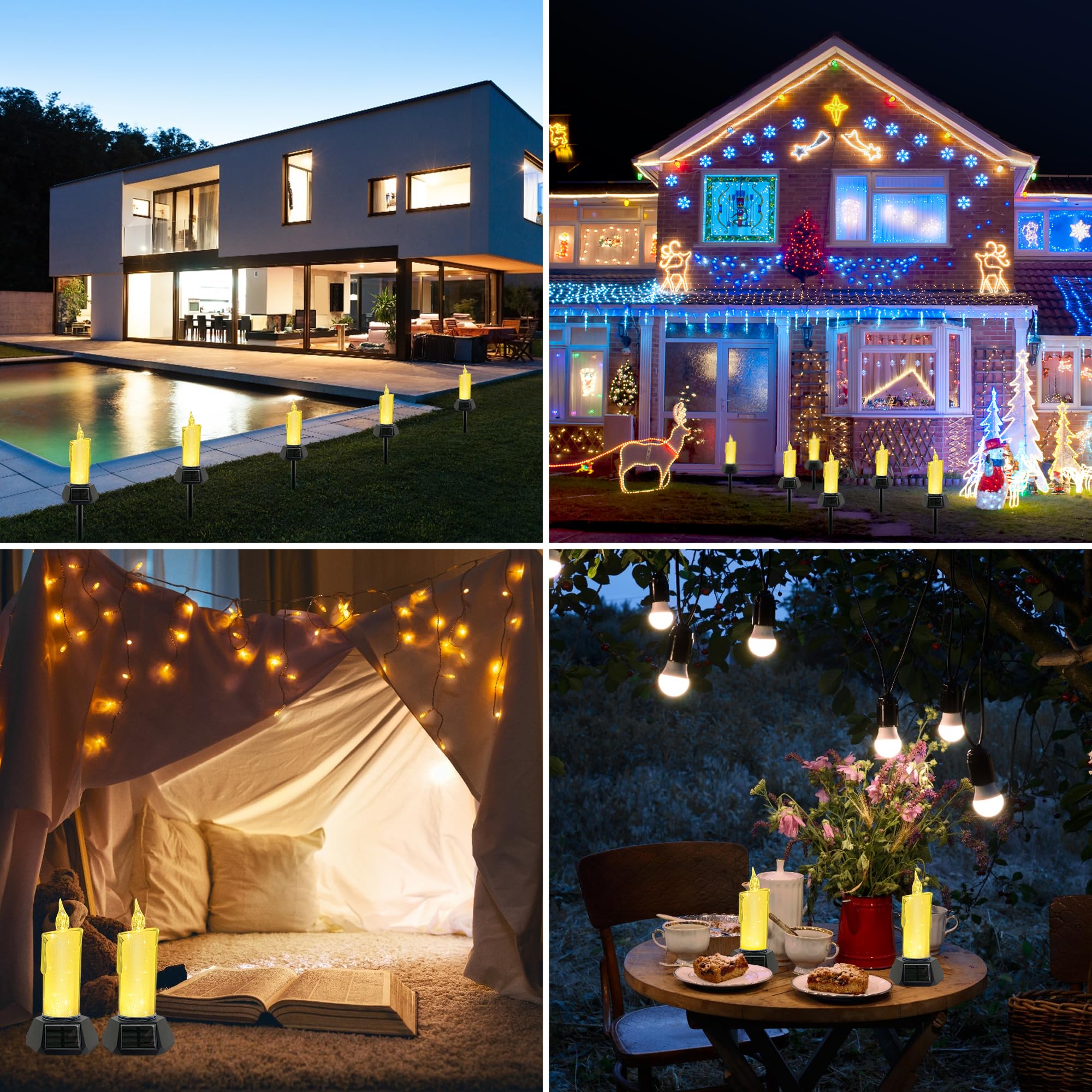Solar Christmas Candles Lights Outdoor, 4 Pack LED Flameless Candles with Flickering lighting, Waterproof Solar Outdoor Lights for Camping Garden Landscape Yard Thanksgiving Holiday Decorations