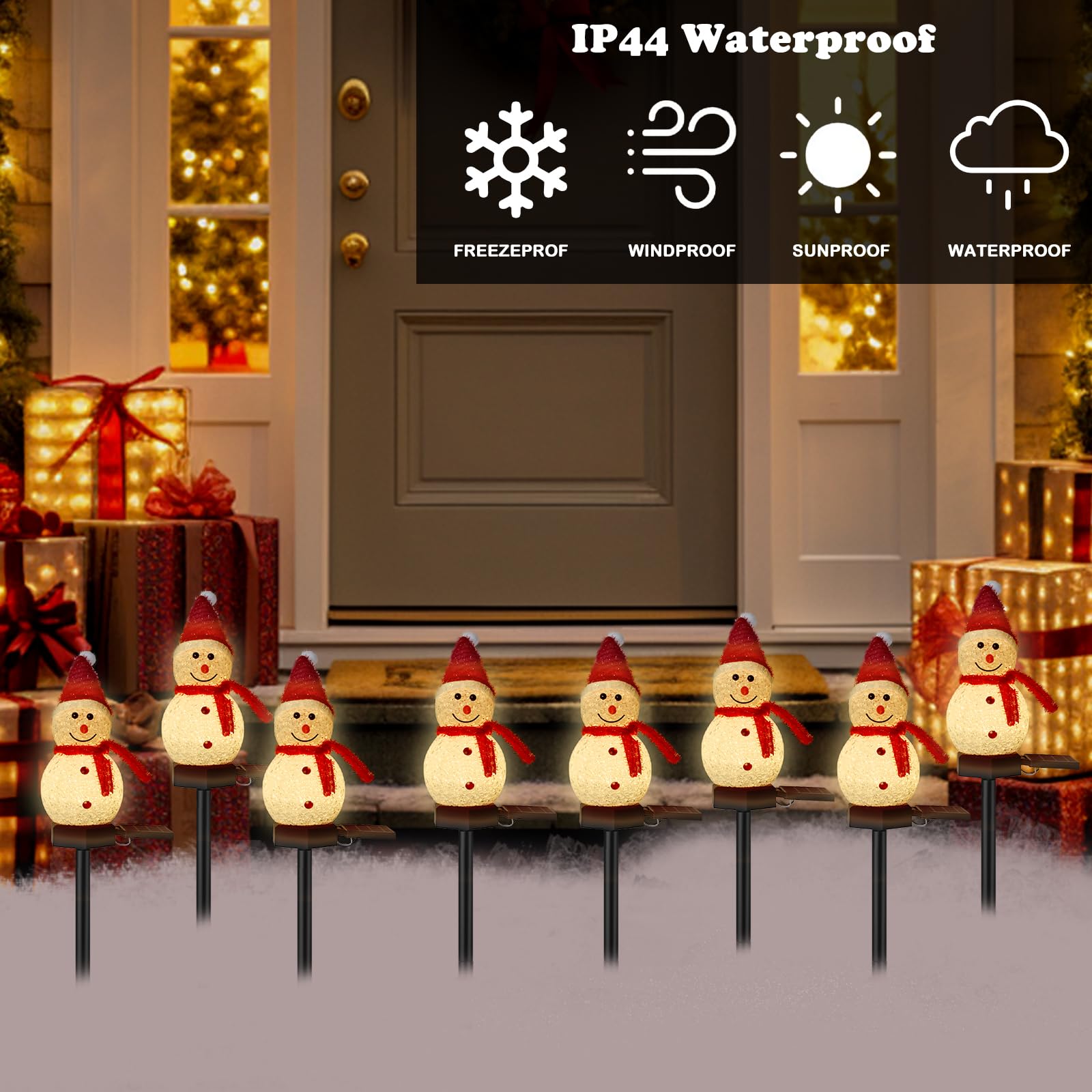 Solar Christmas Decorations Outdoor, 8PCS Snowman Shape Solar Christmas Stakes Lights, Christmas Pathway Lights for Christmas Yard, Garden, Patio Decor