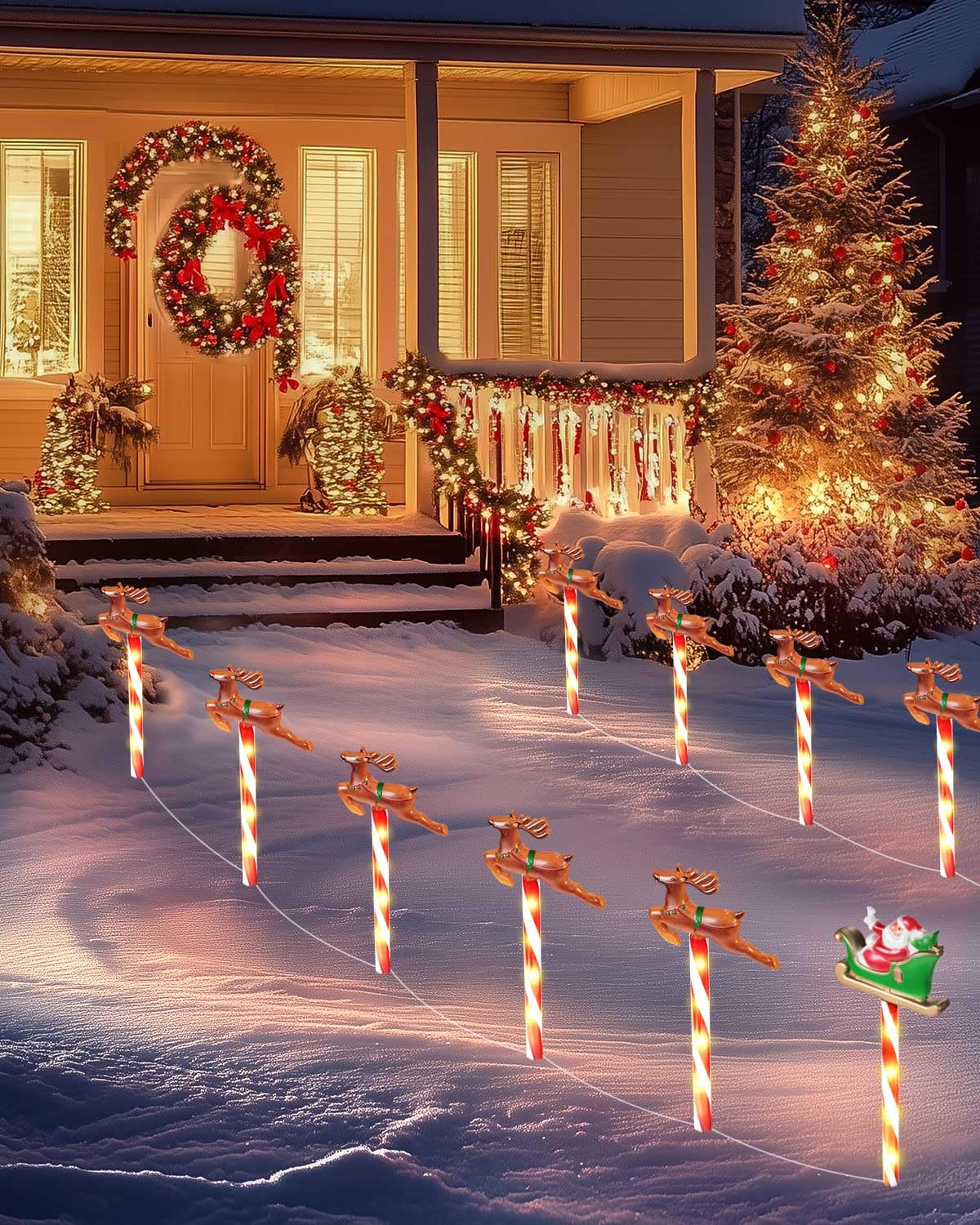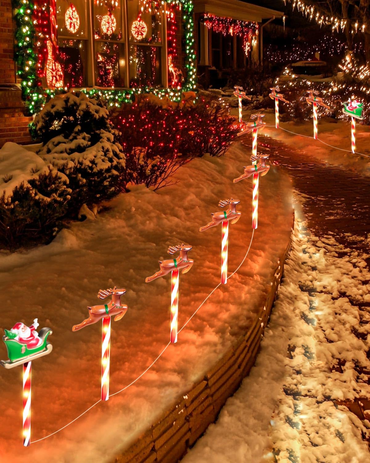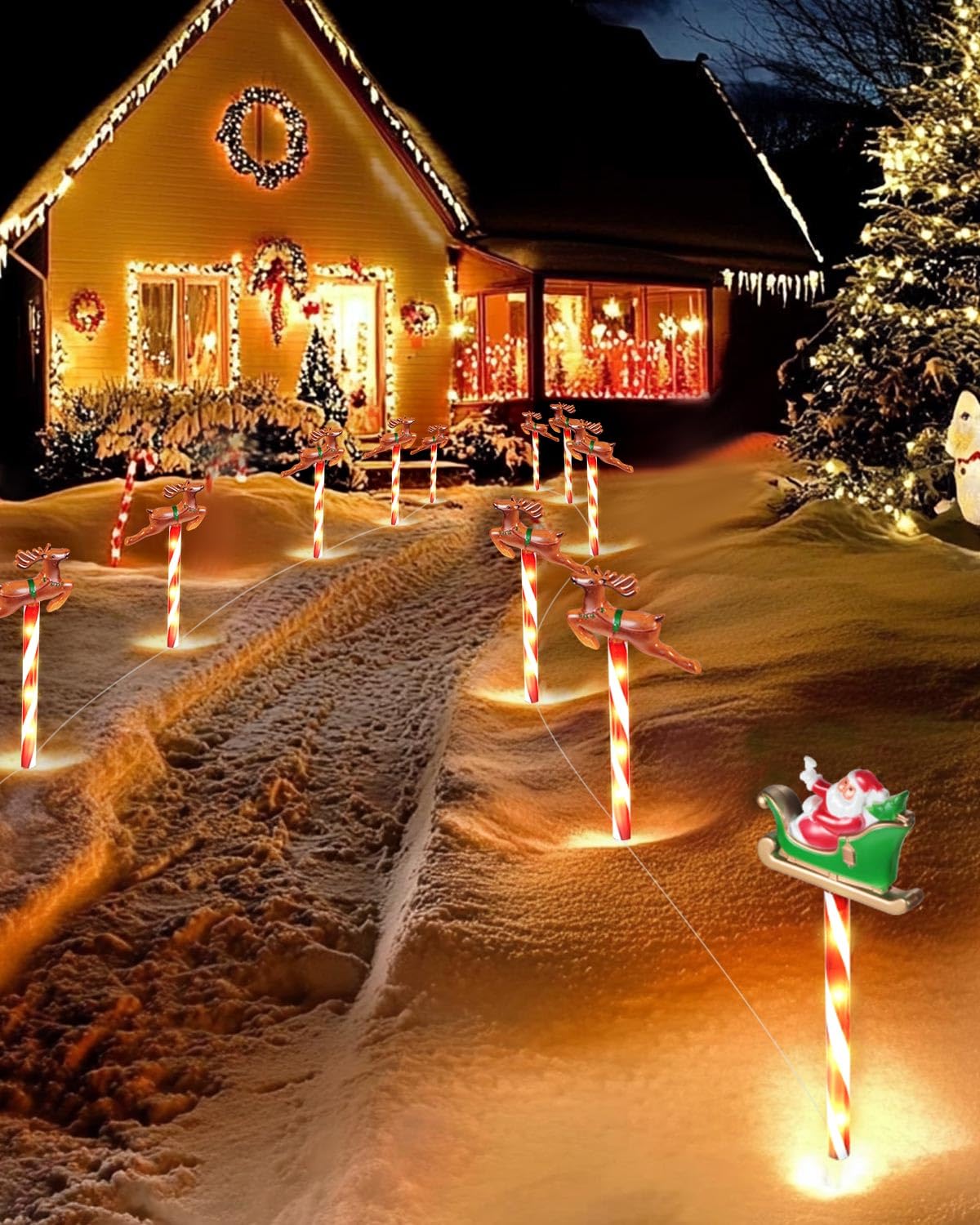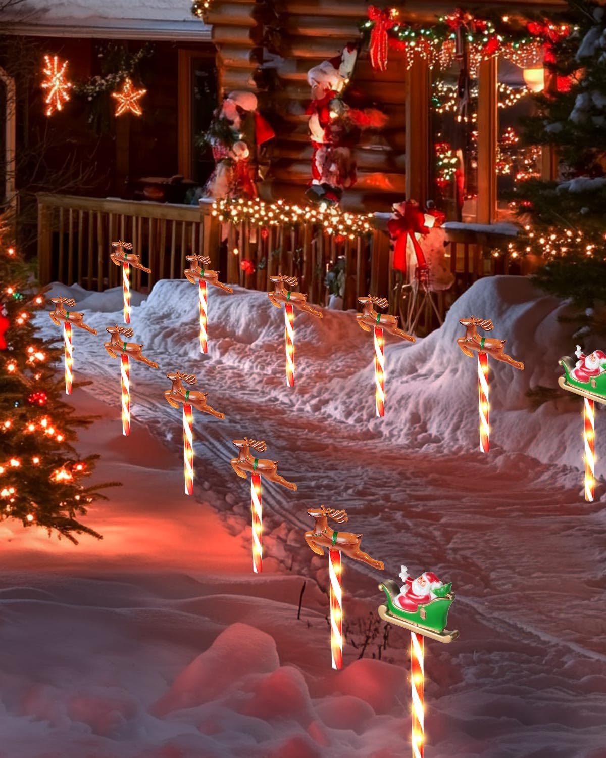 Solar Christmas Pathway Lights, 12Pack, 72LED, 8 Light Modes, Water-Resistant, Santa Sleigh and Reindeer Outdoor Decoration, Christmas Yard Lights, Christmas Lawn Decorations for Outdoors