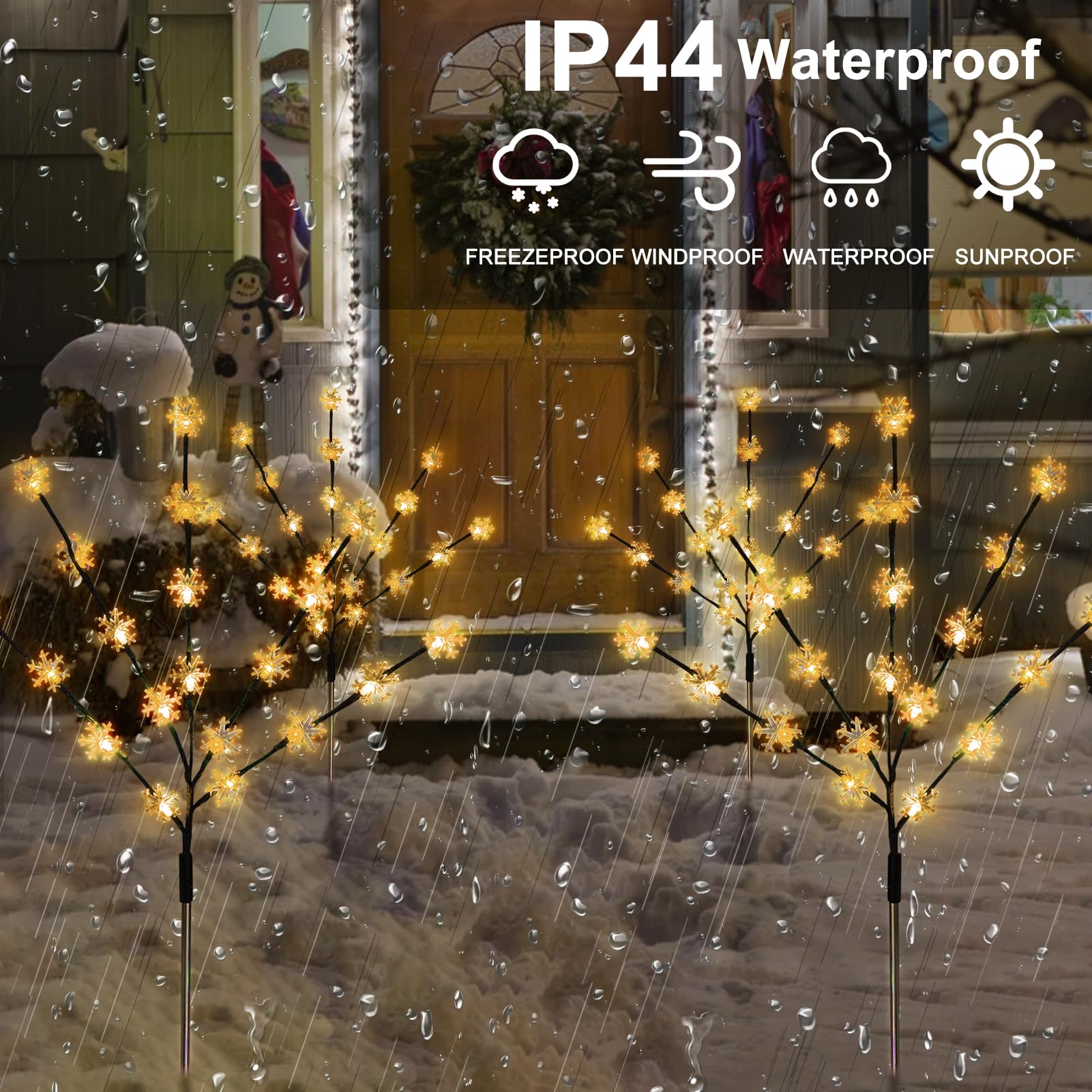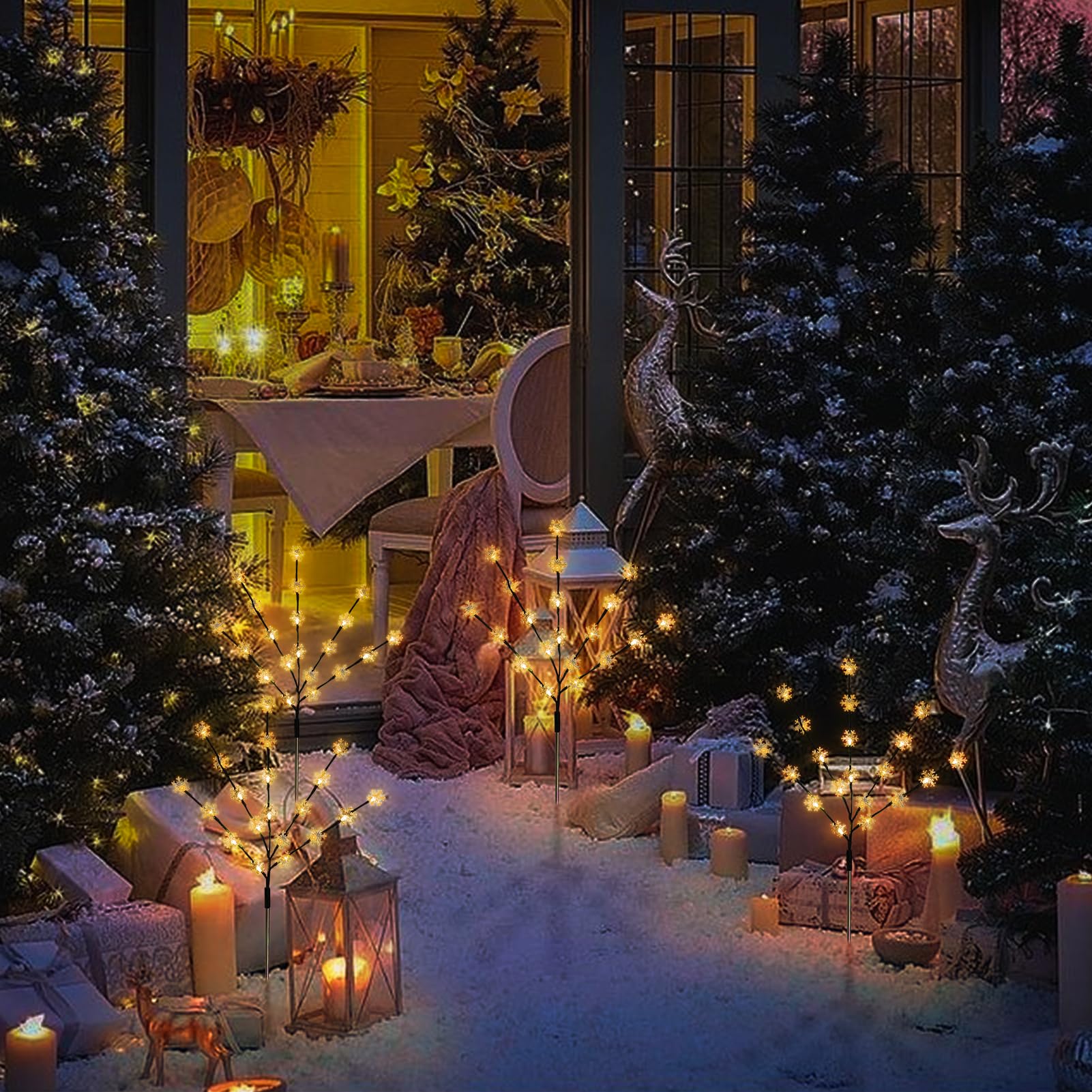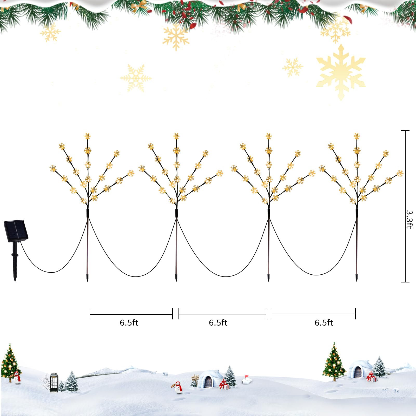 Solar Christmas Pathway Lights, 4 Pack Artificial Tree Snowflake Stake Lights, Waterproof Christmas Decorations for Yard Garden Patio Party Winter Decor (Warm White)