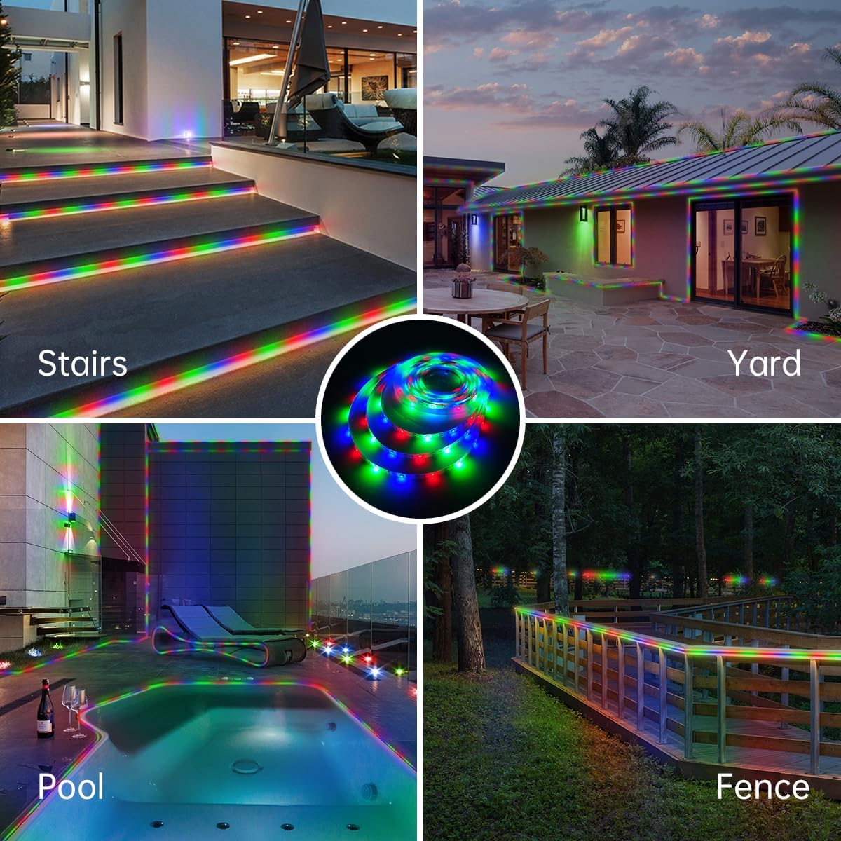 Solar LED Strip Lights, 20FT Waterproof RGB Color 180 LEDs Cuttable with 8 Modes Solar Powered LED Fairy Lights for Christmas Outside, Garden, Patio, Yard, Party