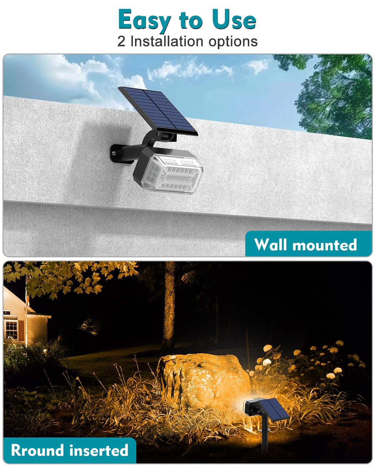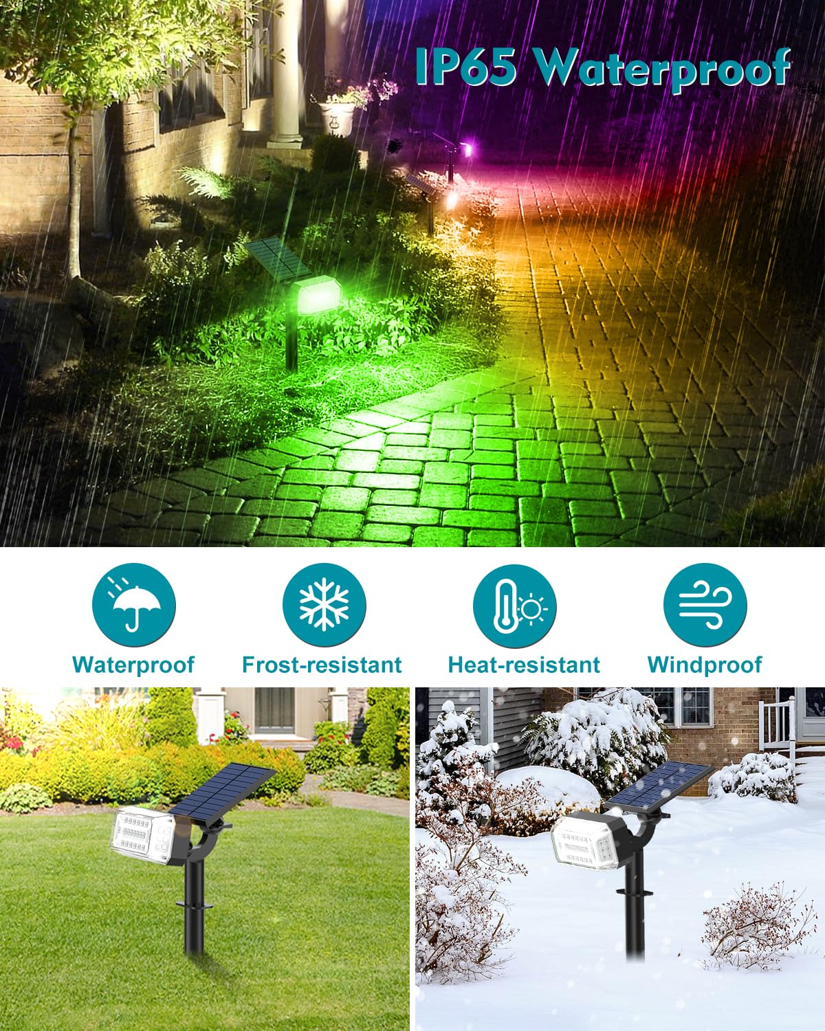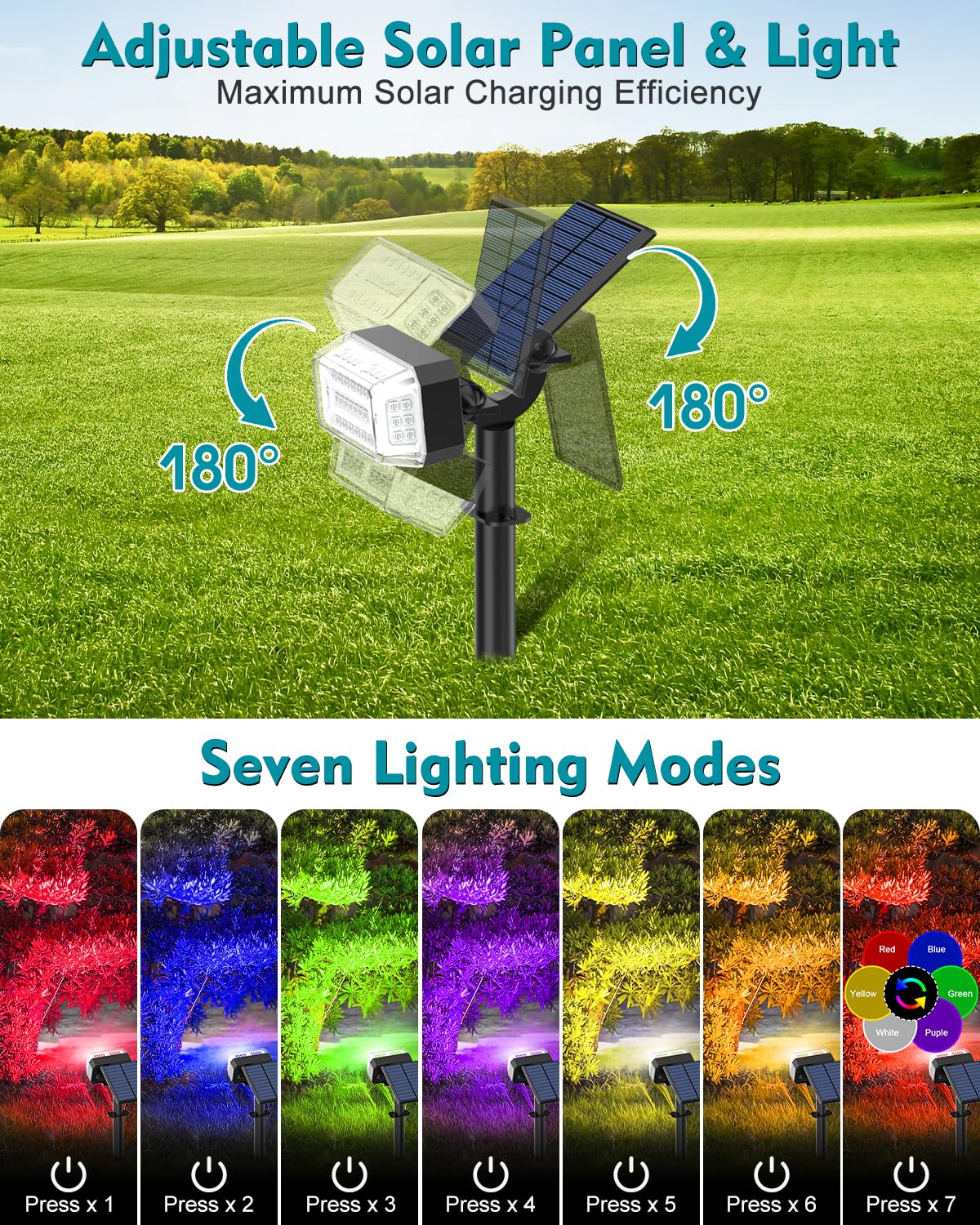 Solar Spot Lights Outdoor Waterproof IP65,[49 LEDs/8 Pack] RGB Christmas 7 Modes Color Changing Solar Spotlights, Adjustable Landscape Flood Powered Lights for Yard Garden Pathway(Multicolor)