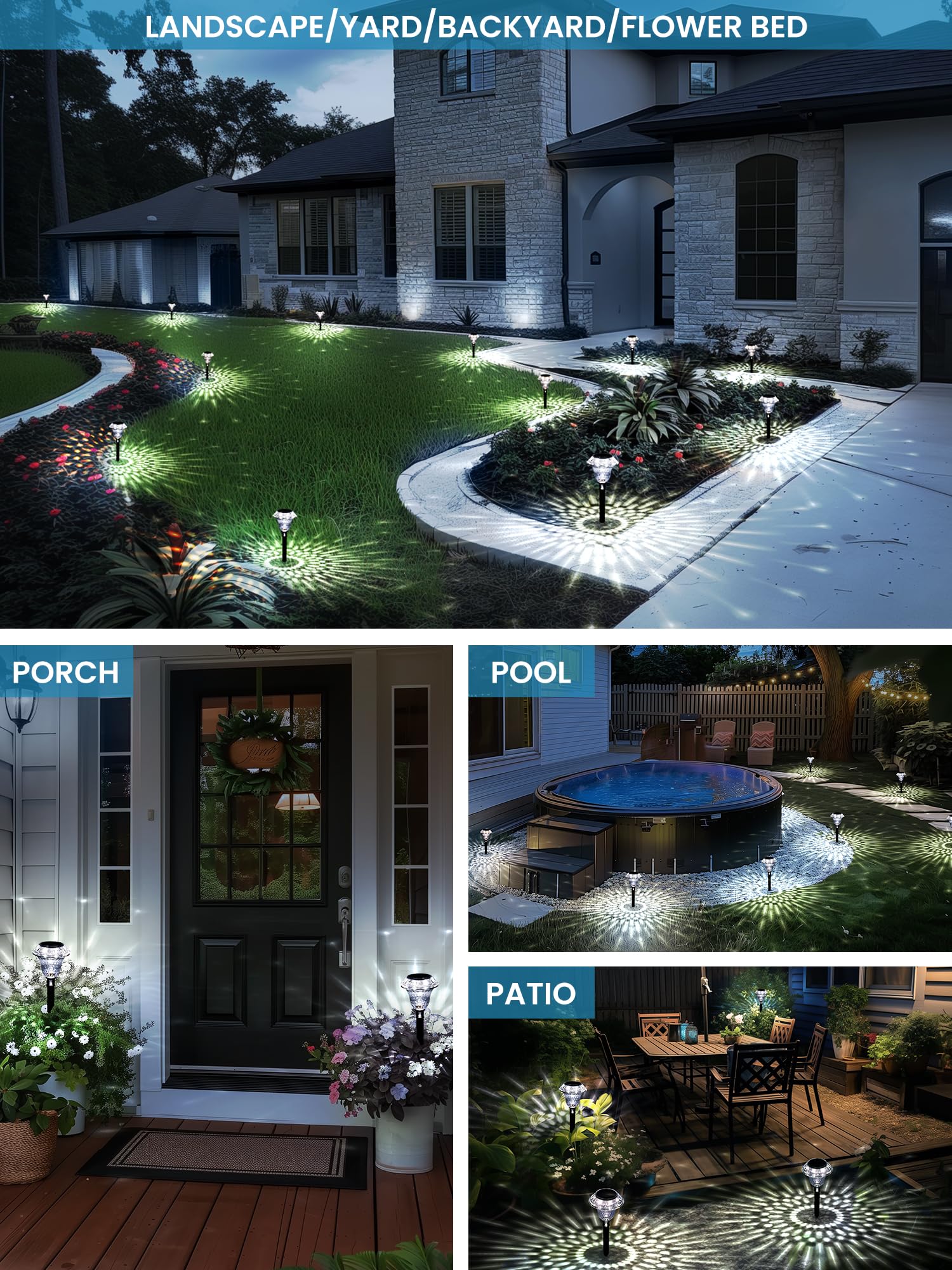 SOLPEX Solar Lights Outdoor, Pathway Garden Decor Lights, Solar Powered Waterproof Decoration for Patio Front Porch Yard Outside Landscape Lighting(8 Pack Cold White)