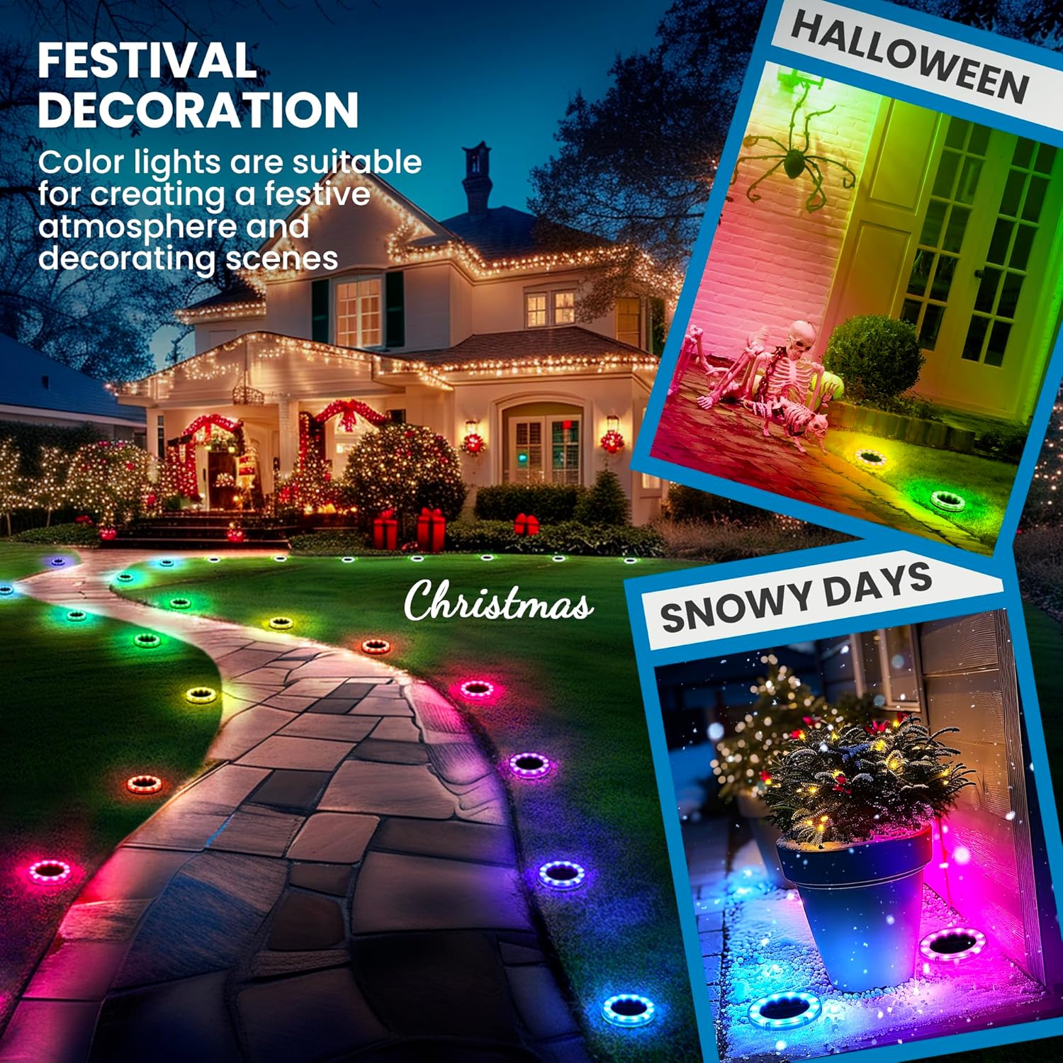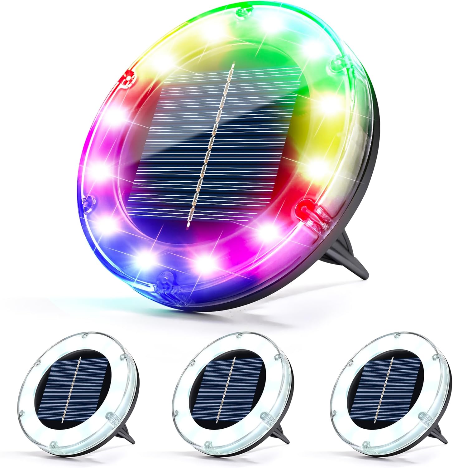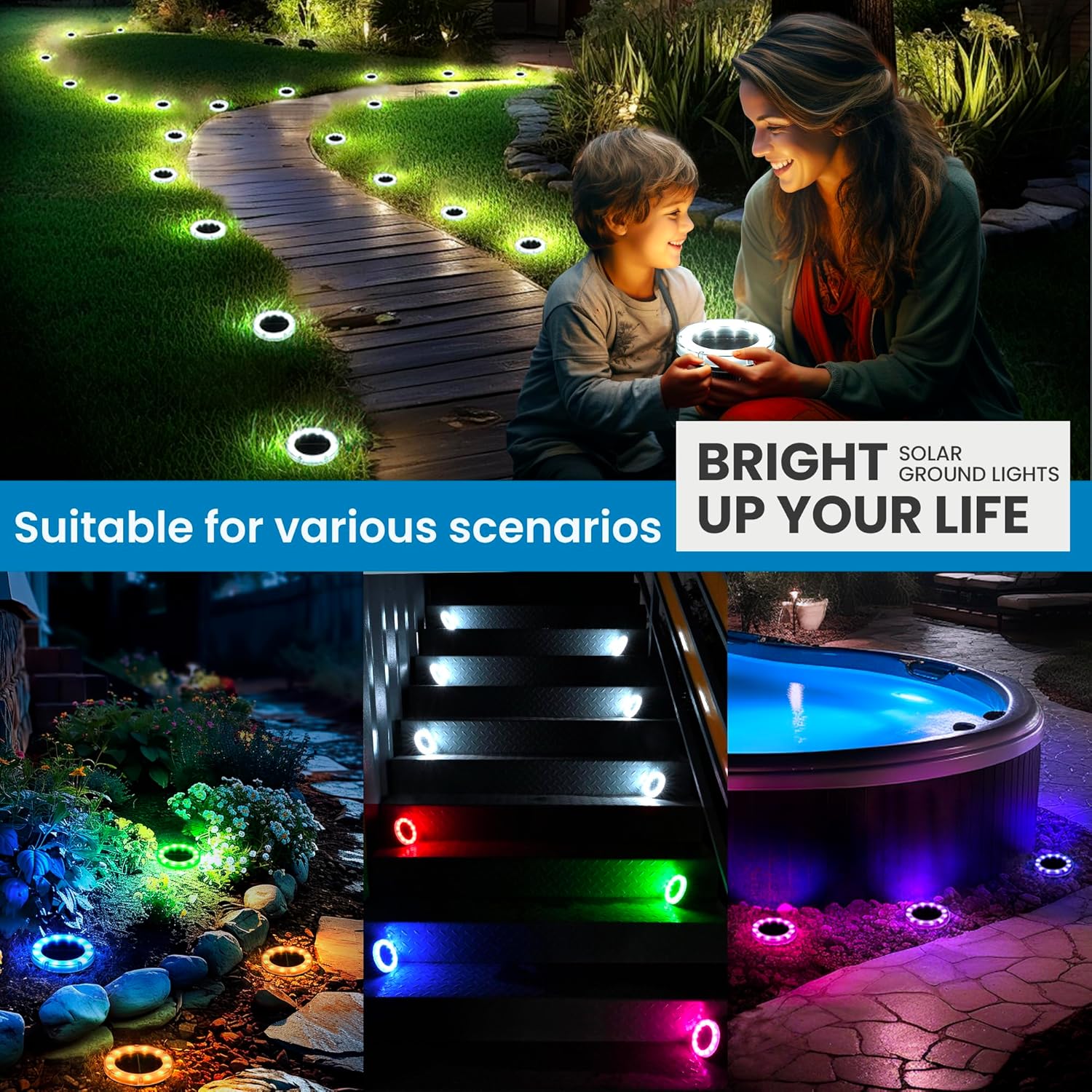 Solpex Solar Lights Outdoor Waterproof, Multicolor Solar Ground Lights, 12 Led 2 Lighting Modes, Solar Powered Landscape Lighting