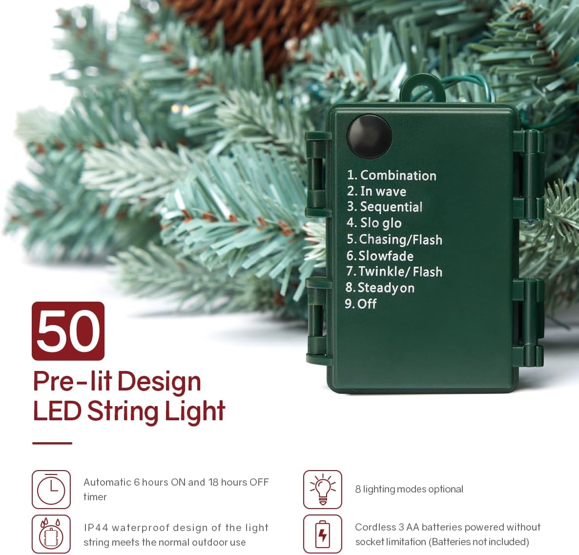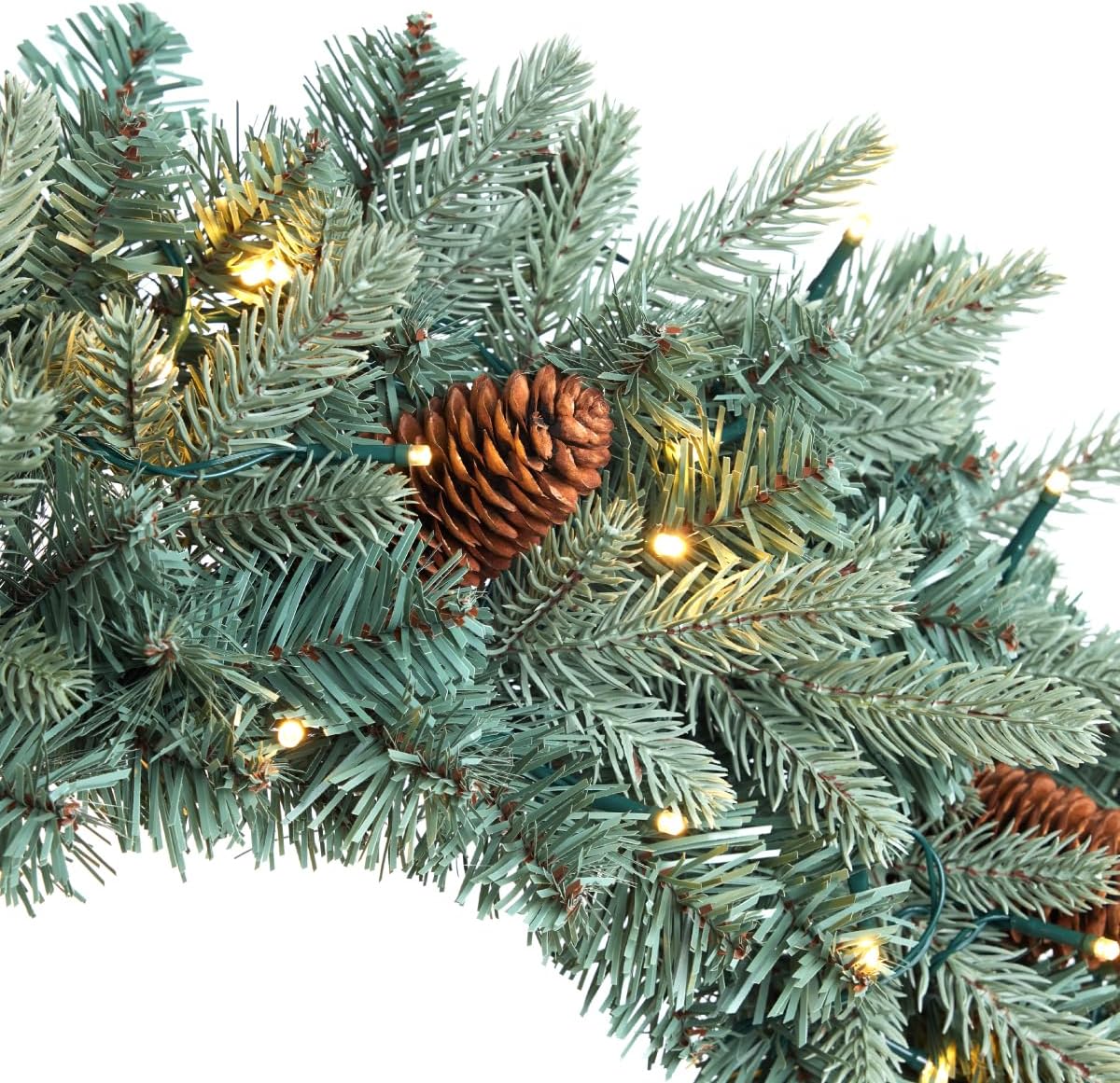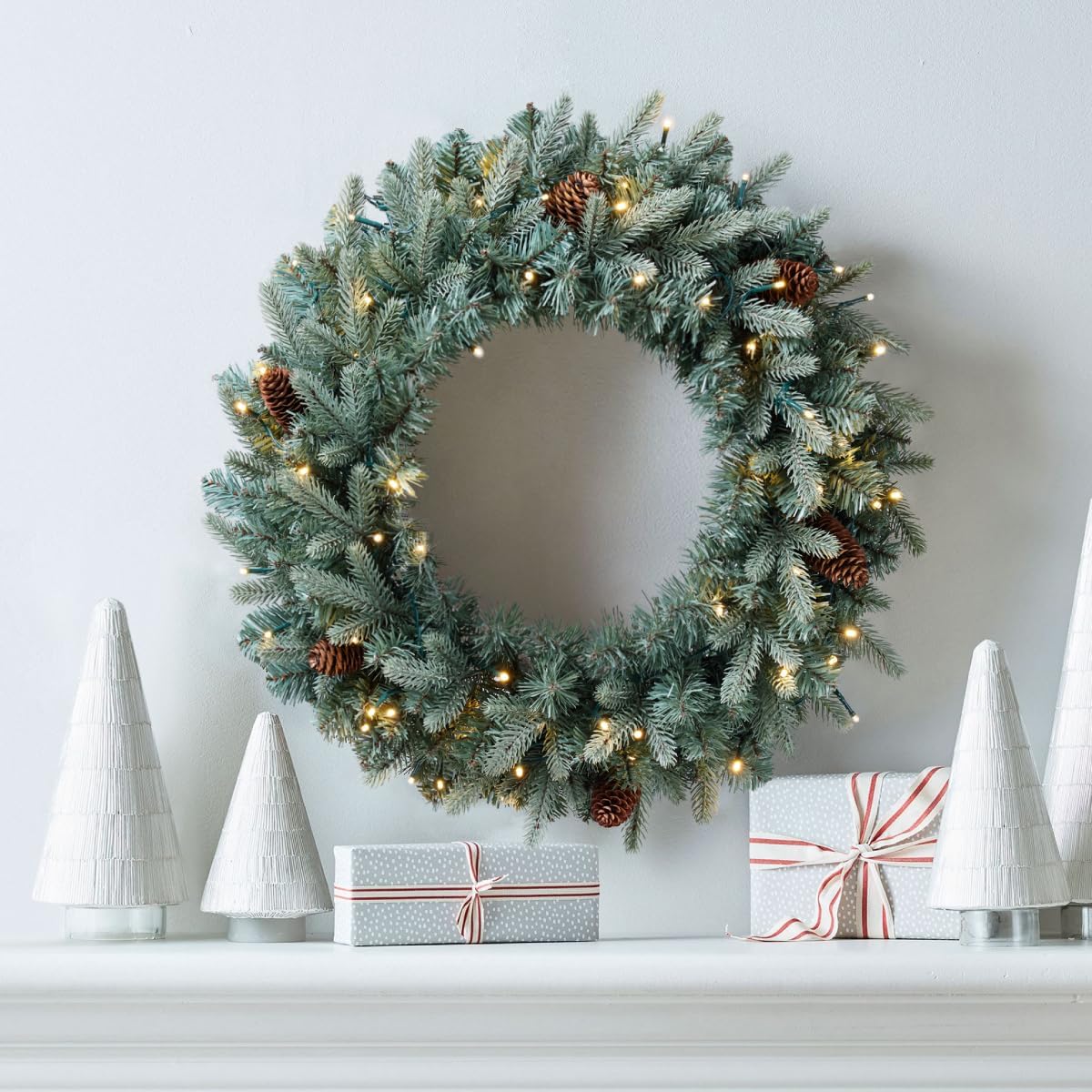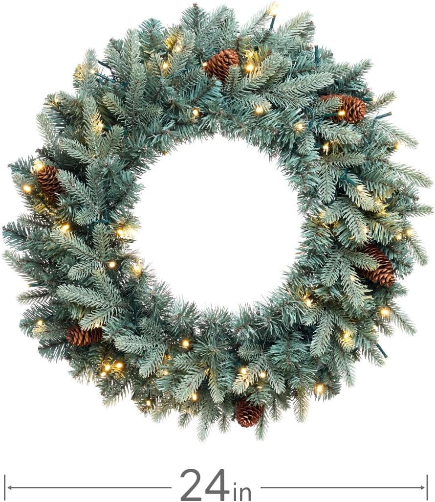 Somikis 24 Inch Christmas Wreaths for Front Door, Pre-Lit Realistic Blue Arctic Spruce Xmas Wreath with LED Lights & Pinecones, for Indoor&Outdoor Porch Windows Wall