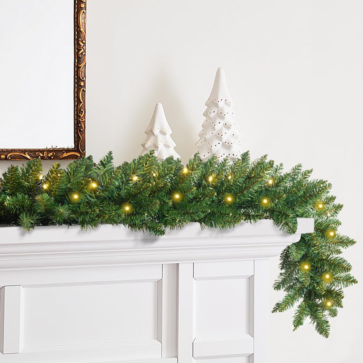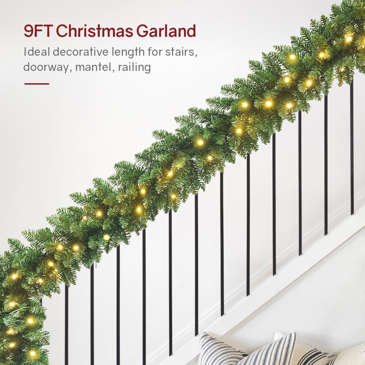Somikis 9FT Pre-Lit Artificial Christmas Garland with 50 LED Lights and Realistic Classic Evergreen Pine Spruce for Mantle Stair Railing Indoor Outdoor