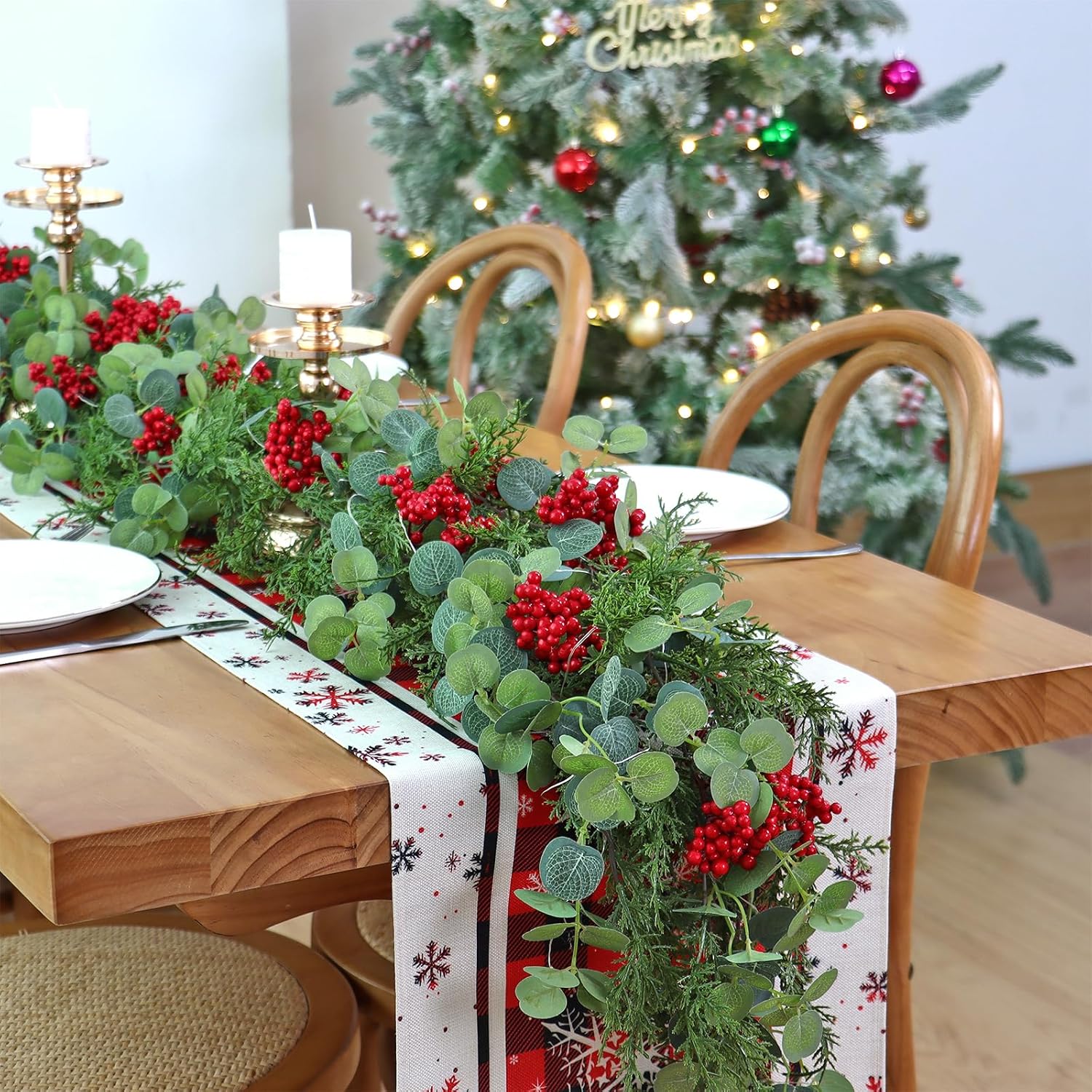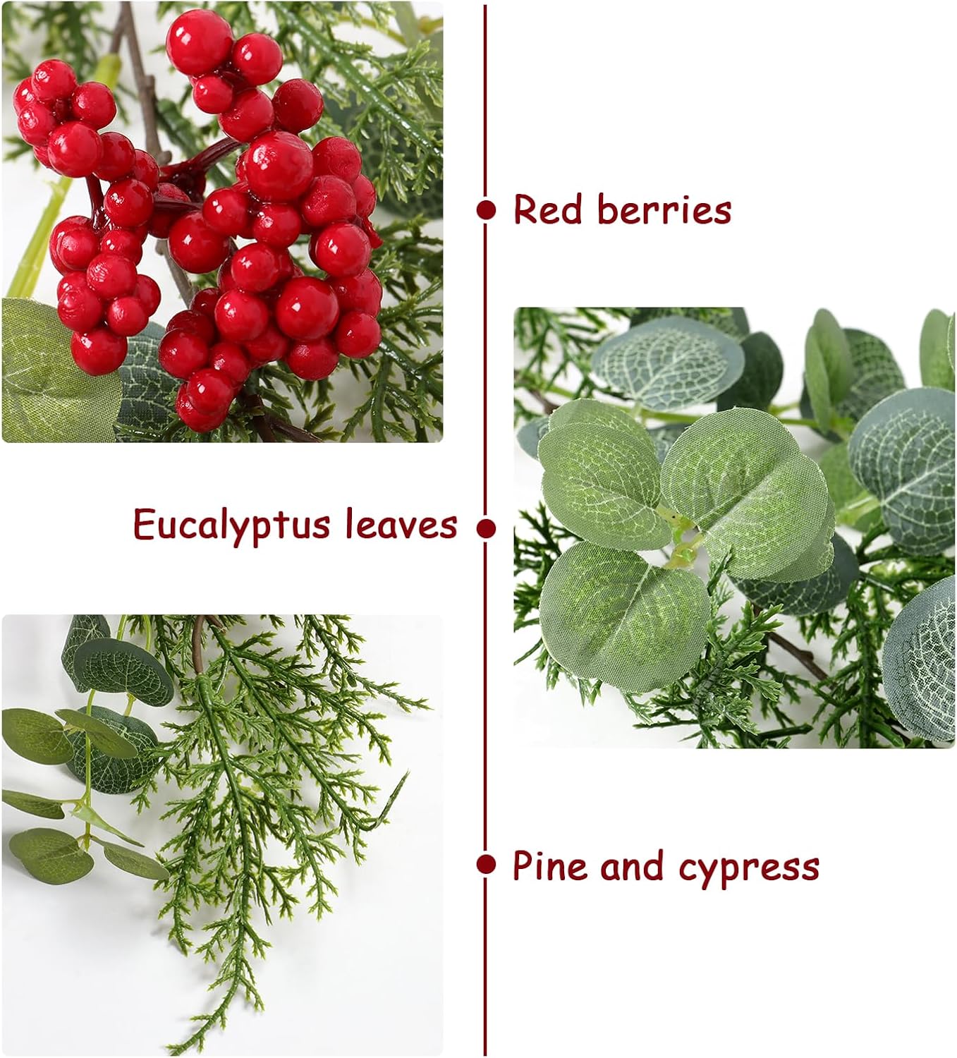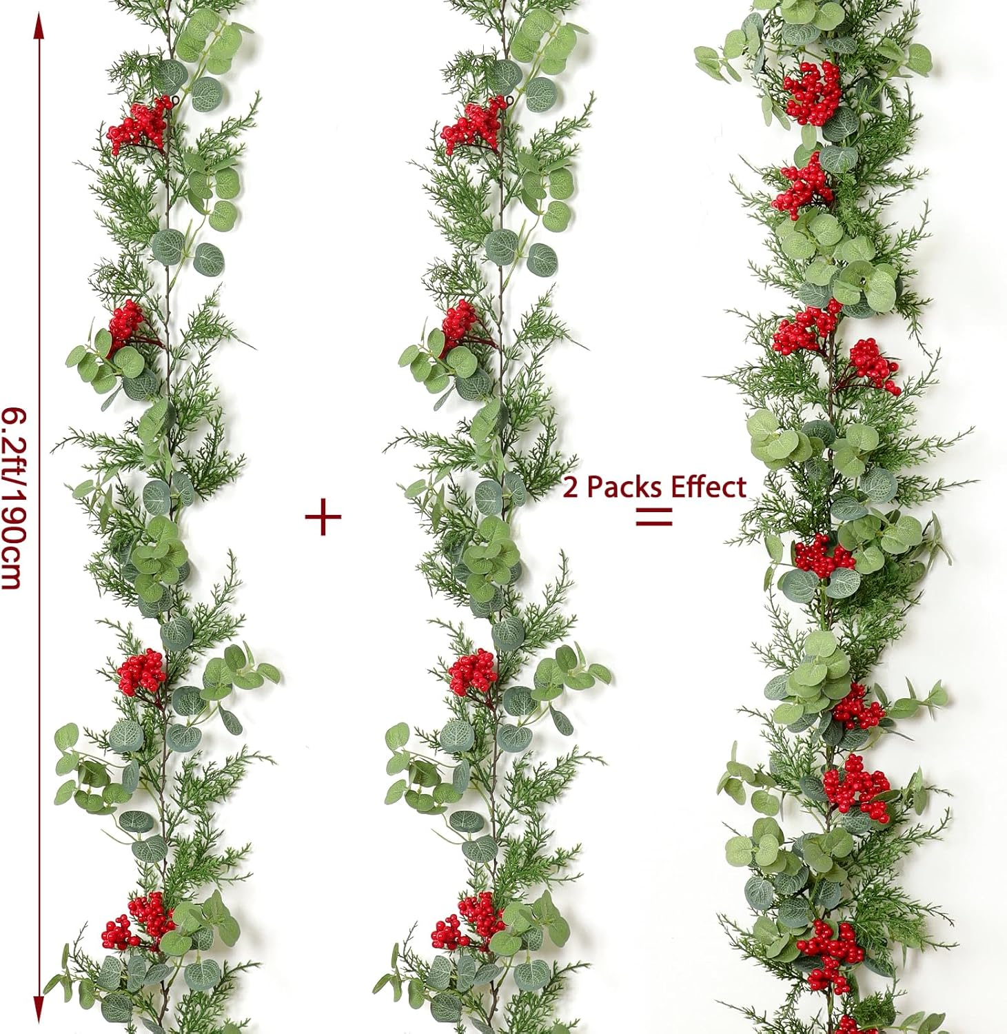 SOMYTING 6FT Christmas Garland, 2 Packs Artificial Eucalyptus Cedar Garland with Red Berry Artificial Red Berry Garland Faux Cypress Greenery Garland for Mantle Table Winter Christmas Holiday Decor