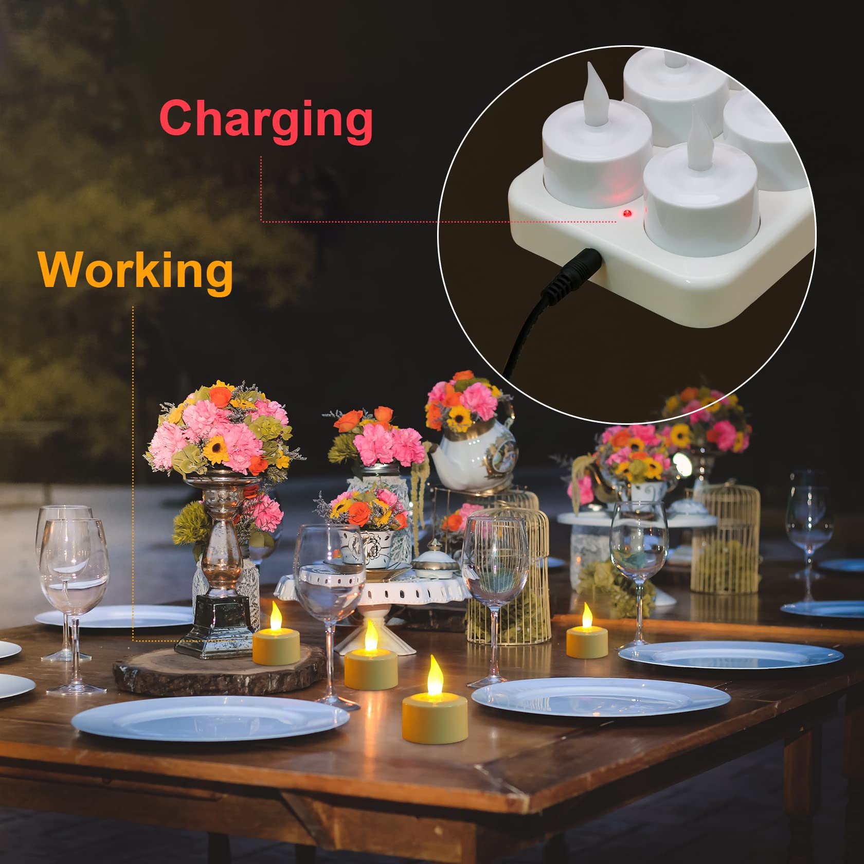 SoulBay 12pcs Rechargeable LED Tea Lights, Battery Operated Flameless Flickering Small Candles with Charging Base for Room Restaurant Lantern Wedding Christmas Decorations (Remote NOT Included)