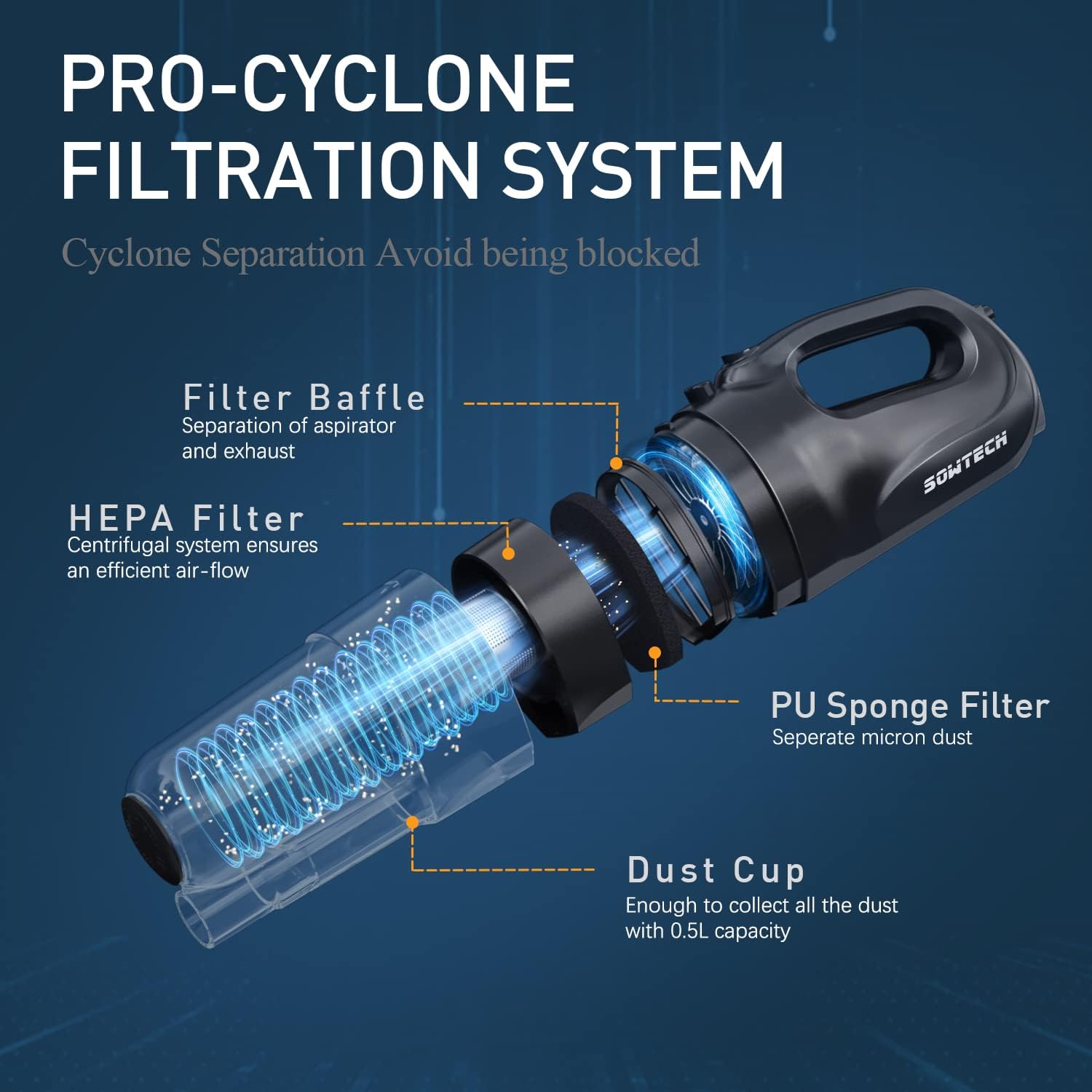 Sowtech Corded Stick Vacuum Cleaner, 20Kpa Powerful Suction Stick Vacuum With 23Ft Cord, 6 In 1 Lightweight Vacuum Cleaner For Hard Floor Pet Hair, Black