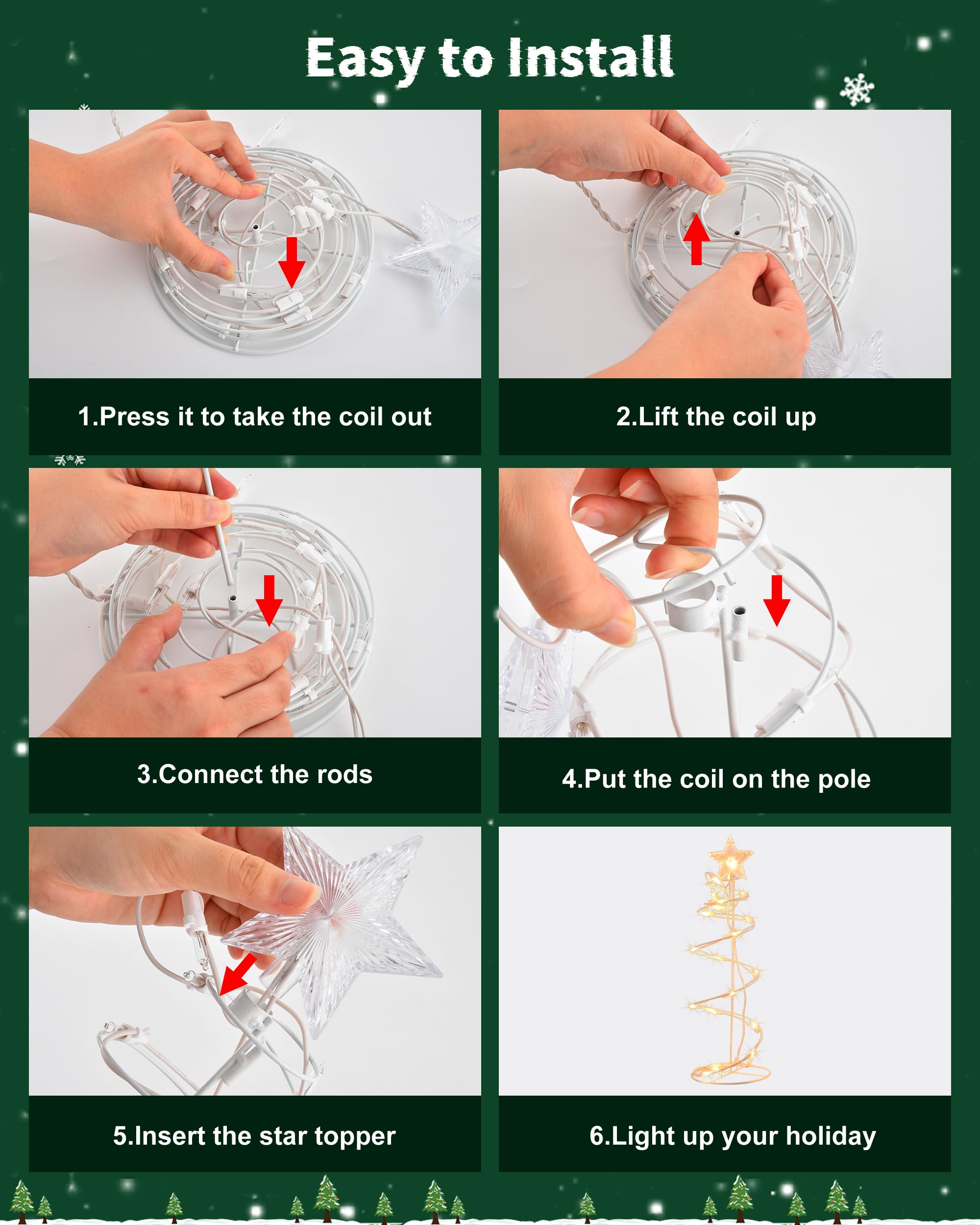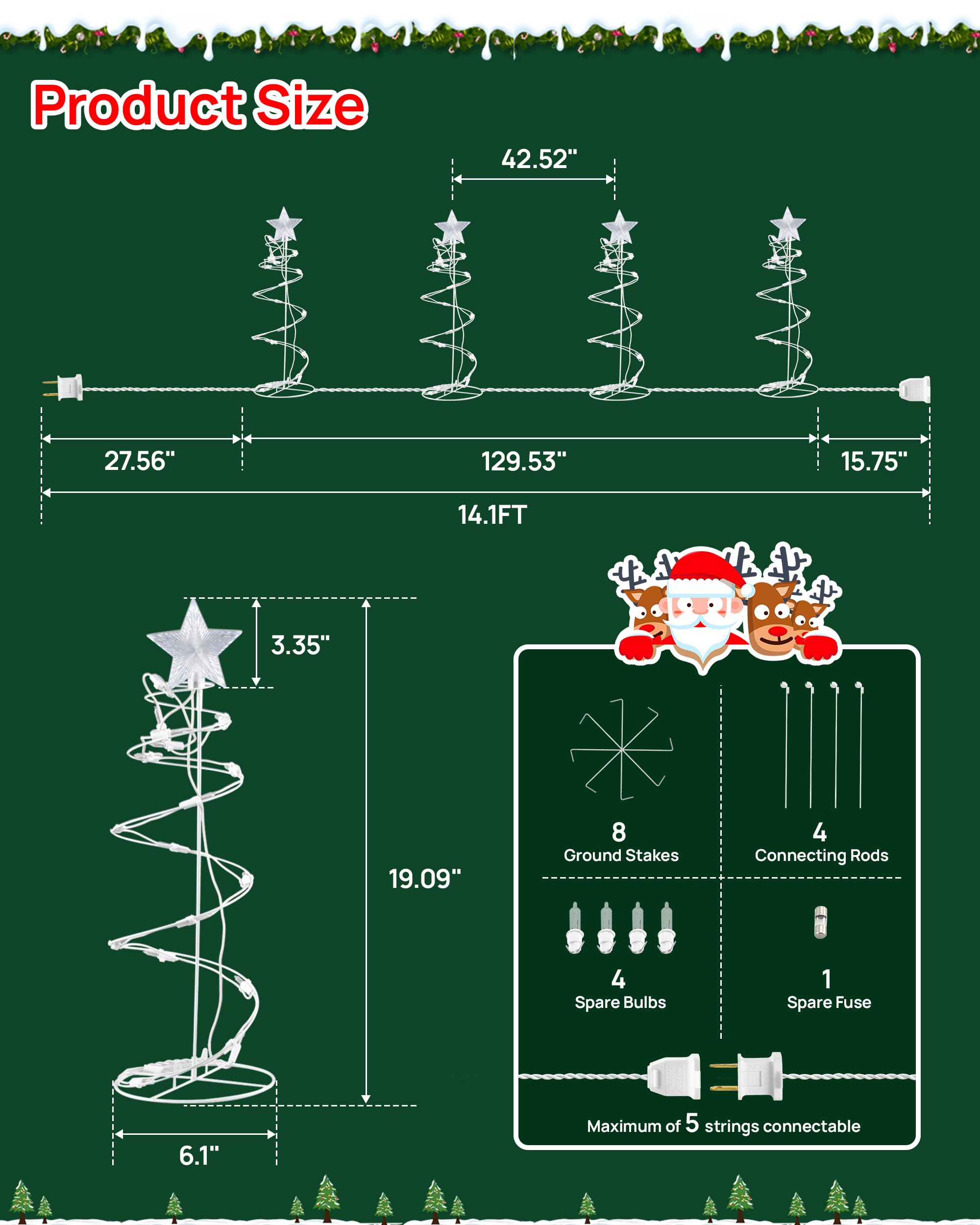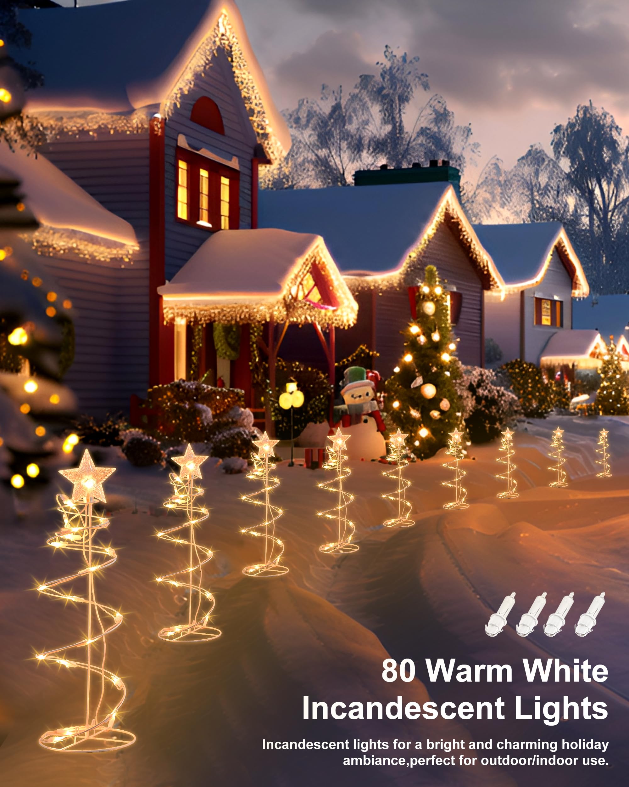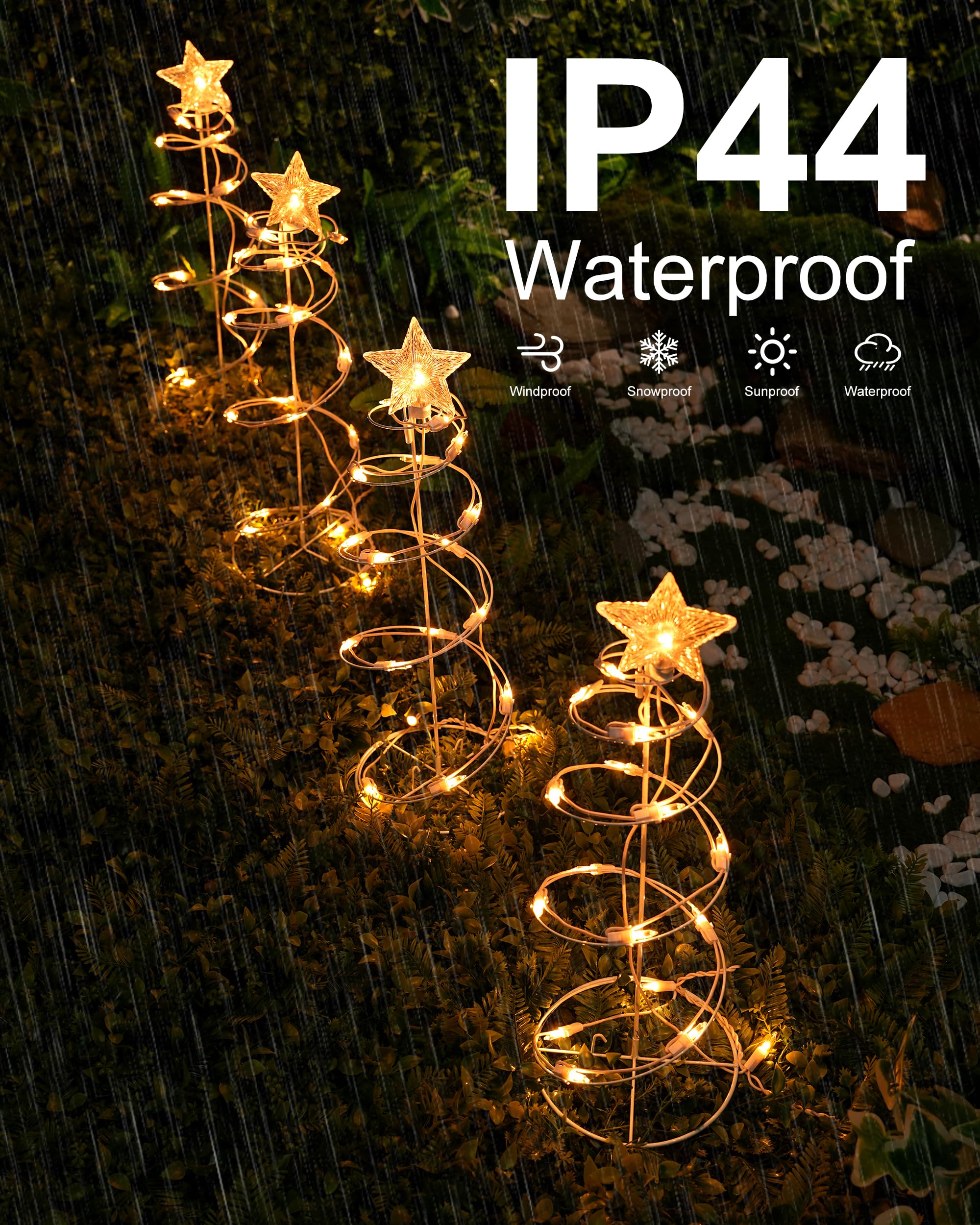 Spiral Christmas Tree Outdoor Decorations, 4 Pack Spiral Christmas Tree with Star Topper, Waterproof Lighted Spiraling Tree Pathway Lights for Indoor Outdoor Xmas Holiday Decor, Warm White