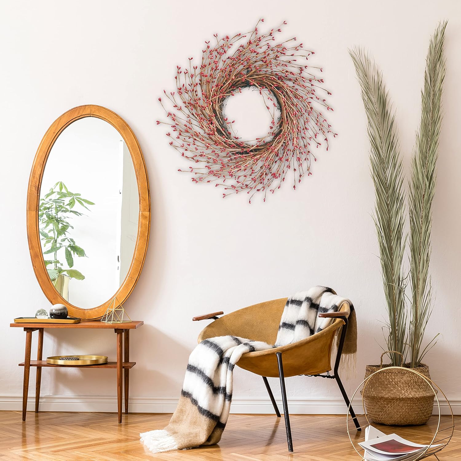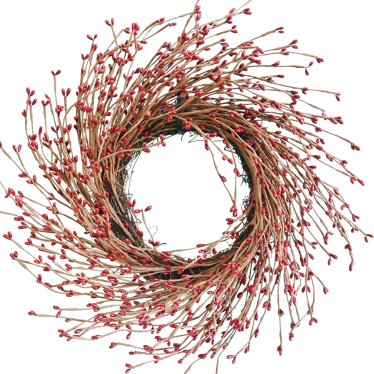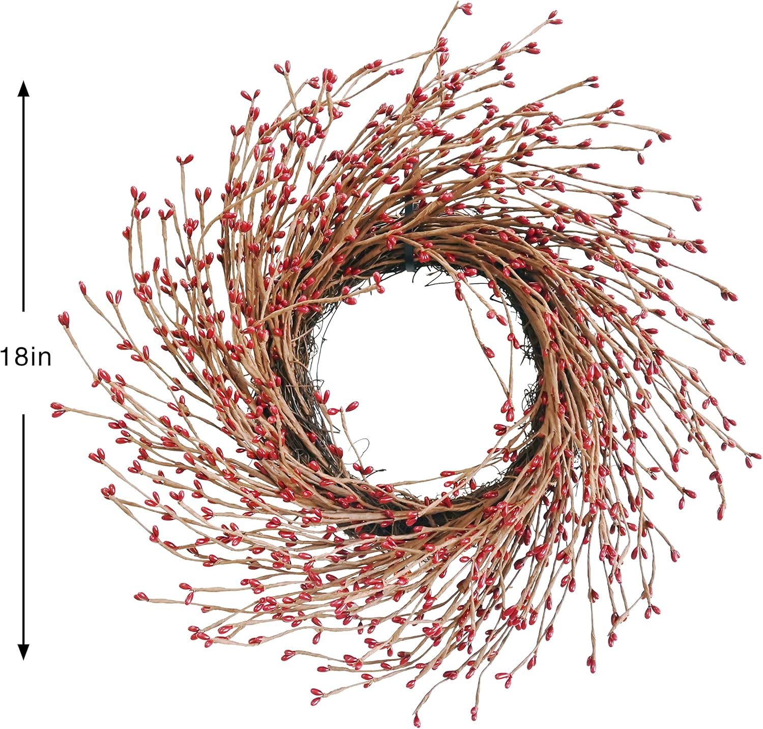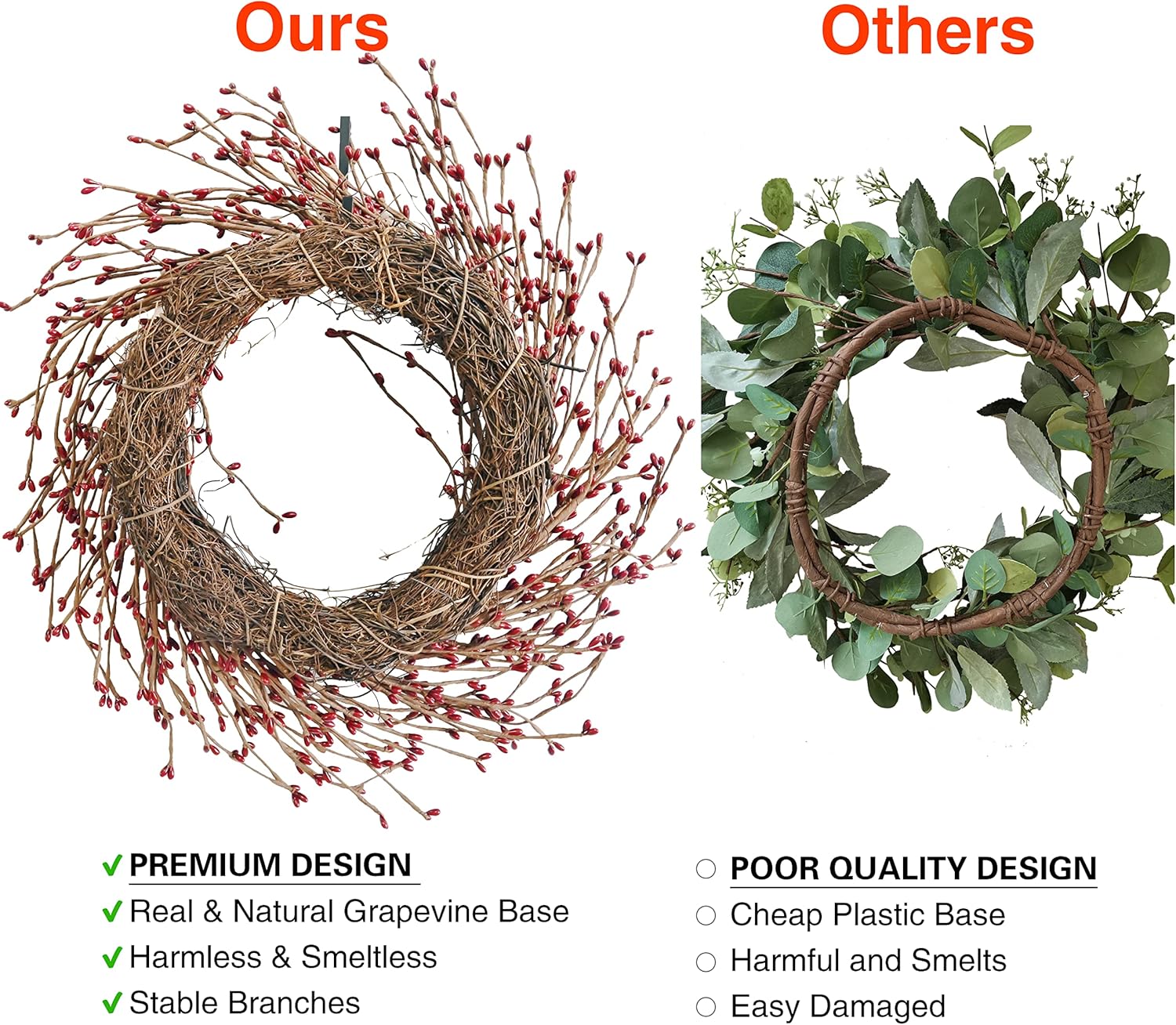 Spring Front Door Wreath 18 Inch Artificial Twig Wreath Winter Red&Burgundy Berry Wreath Artificial Eucalyptus Leaves Wreath with Large Grapevine Wreath for Farmhouse Window Hanging Christmas Decor