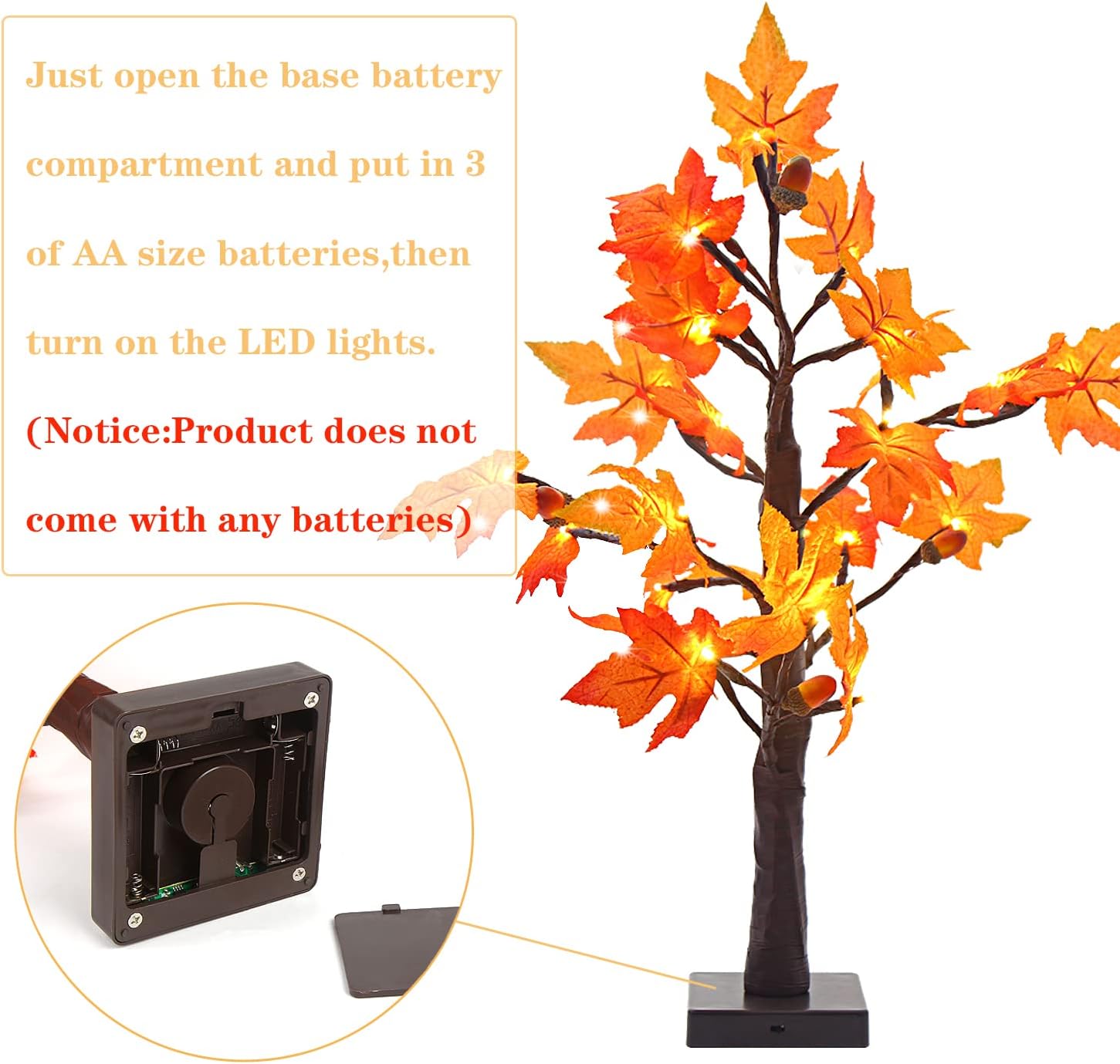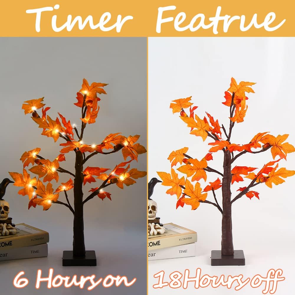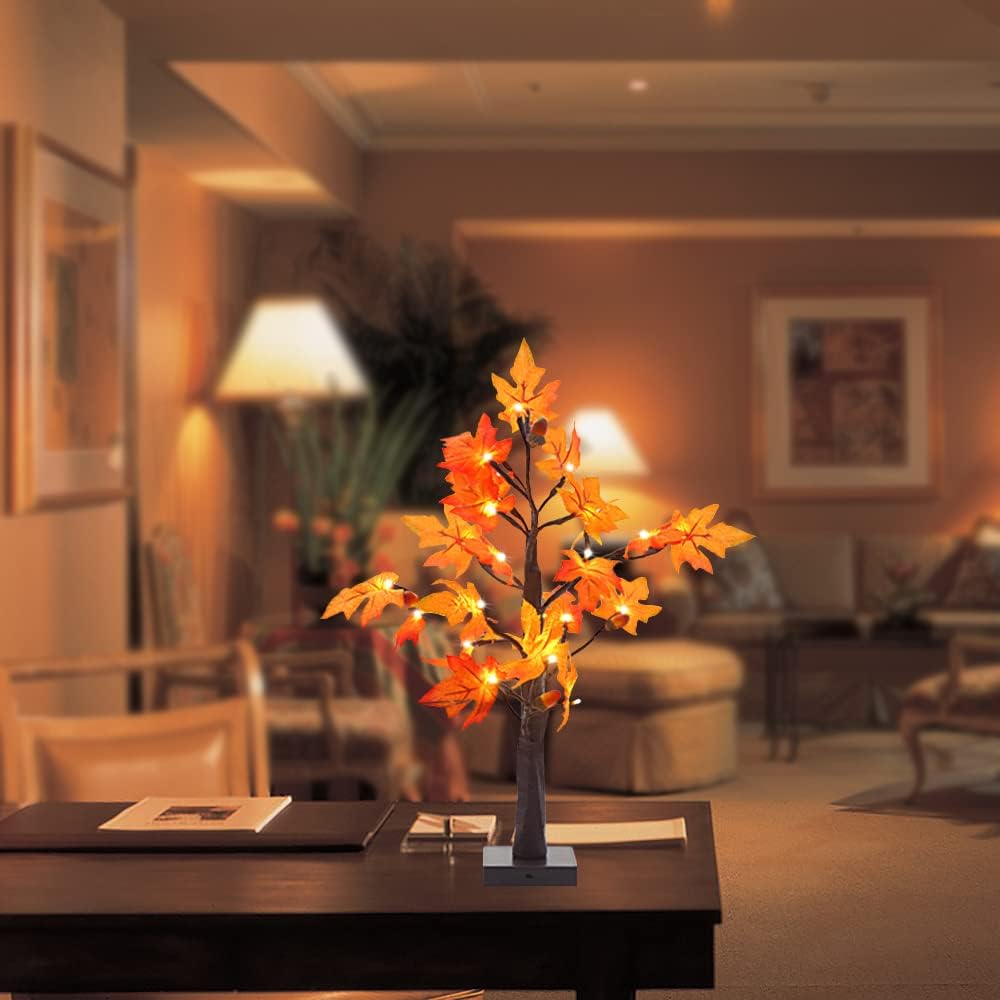 STEFORD 22 Inches Artificial Fall Lighted Maple Tree with 24 LED Lights Battery Operated Autumn Tabletop Light Up Maple Leaf Tree for Thanksgiving Autumn Harvest Indoor Home Decorations