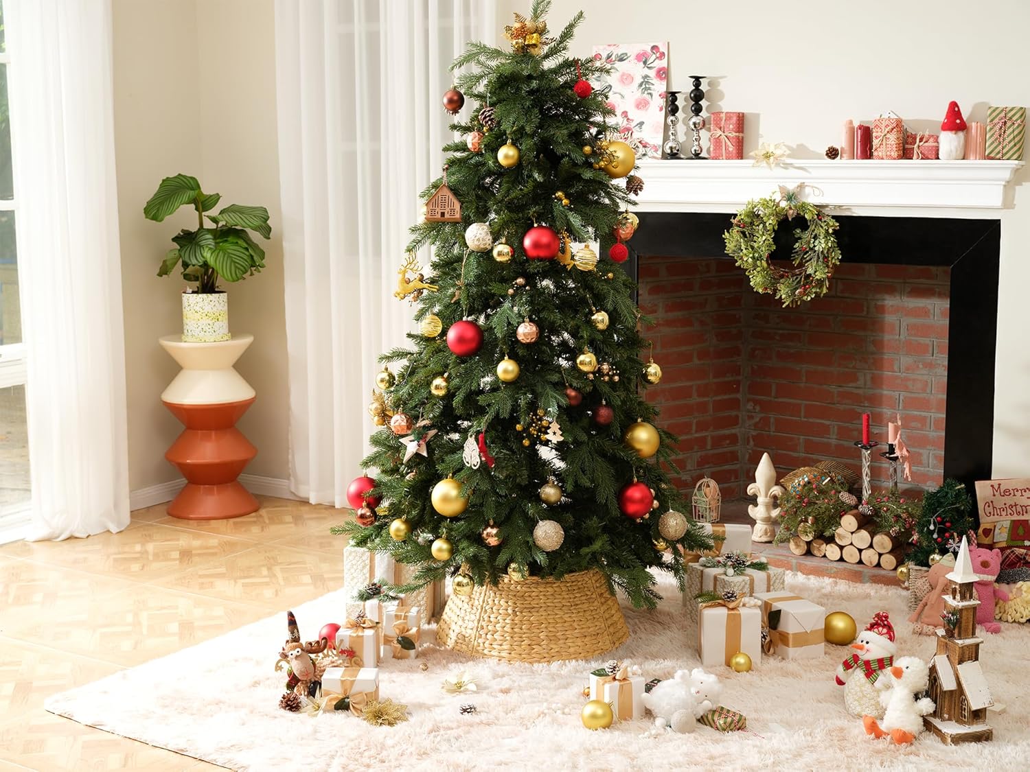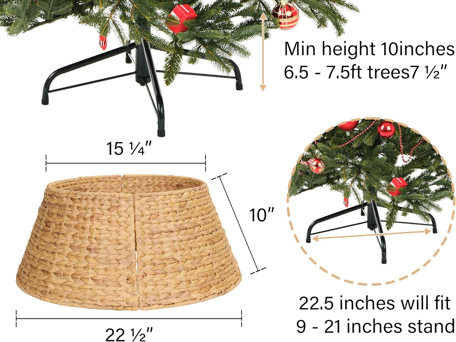 StorageWorks 22.5 Inch Christmas Tree Collar, 4-Piece Durable Christmas Tree Base Cover for Artificial Trees, Handcrafted Wicker Christmas Tree Skirt for Christmas Tree Decor, Medium