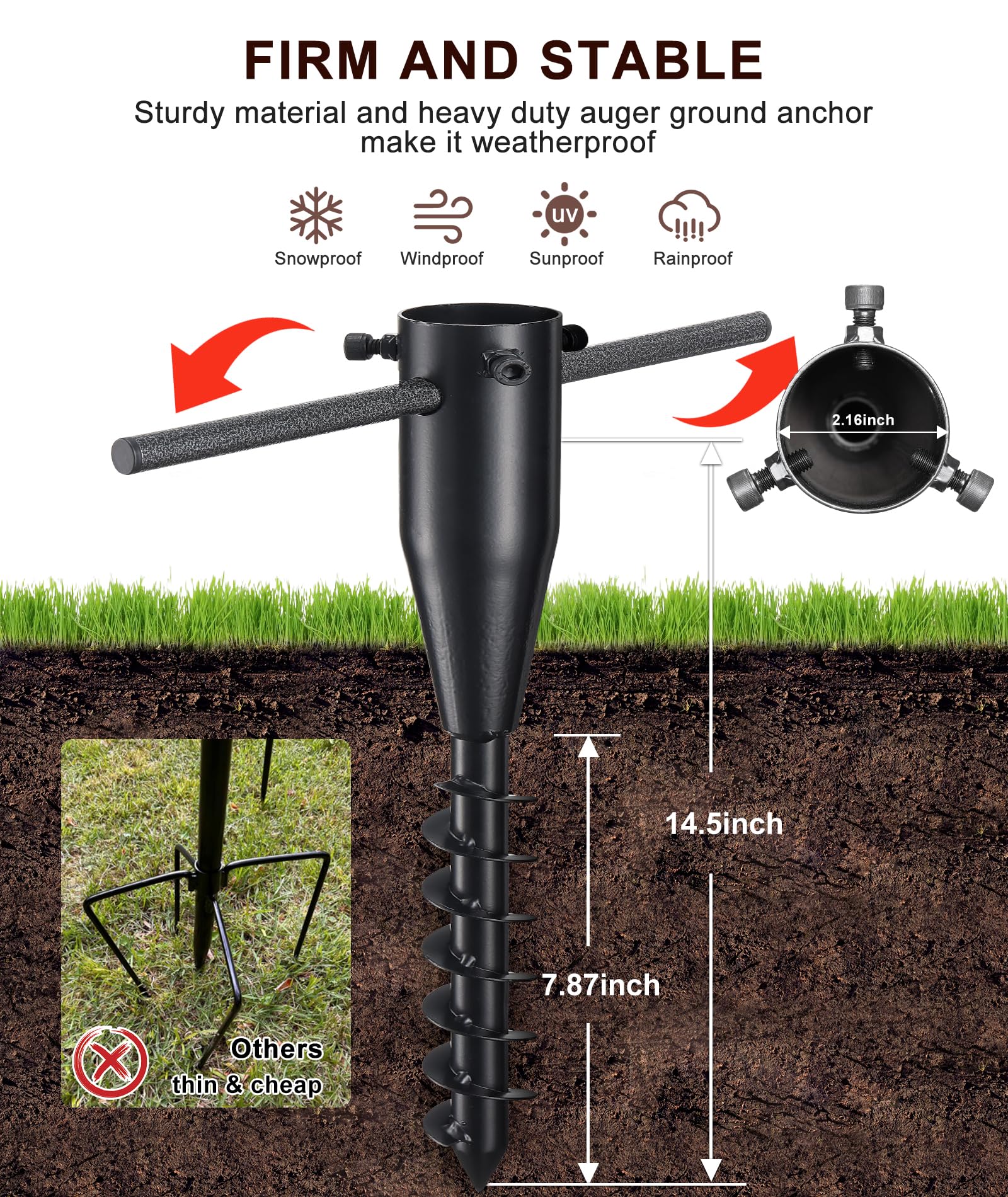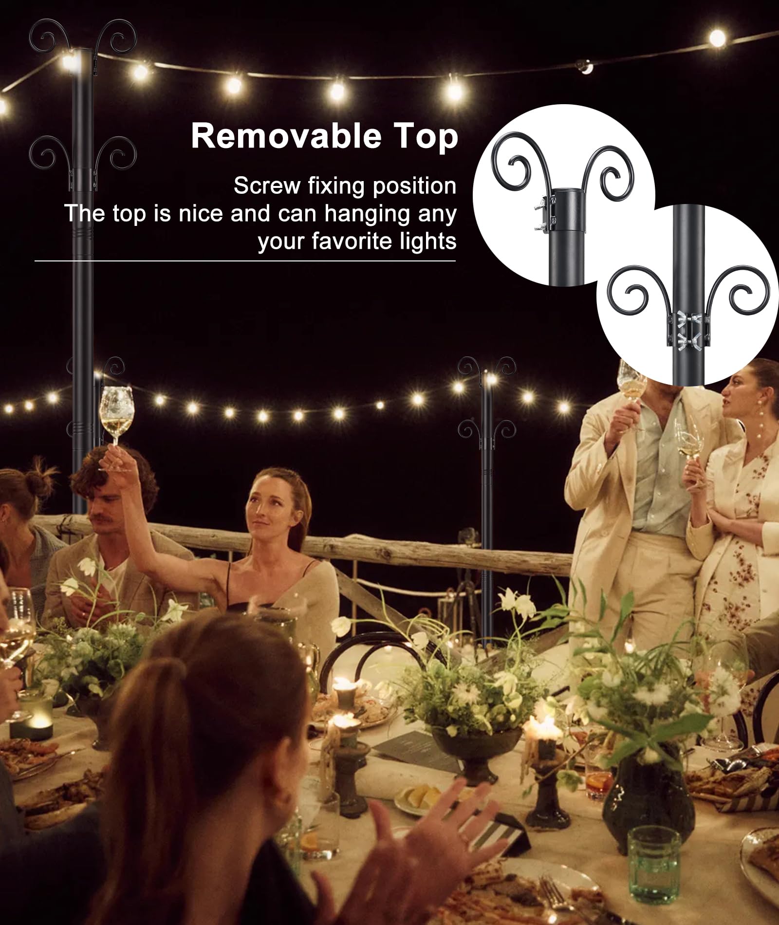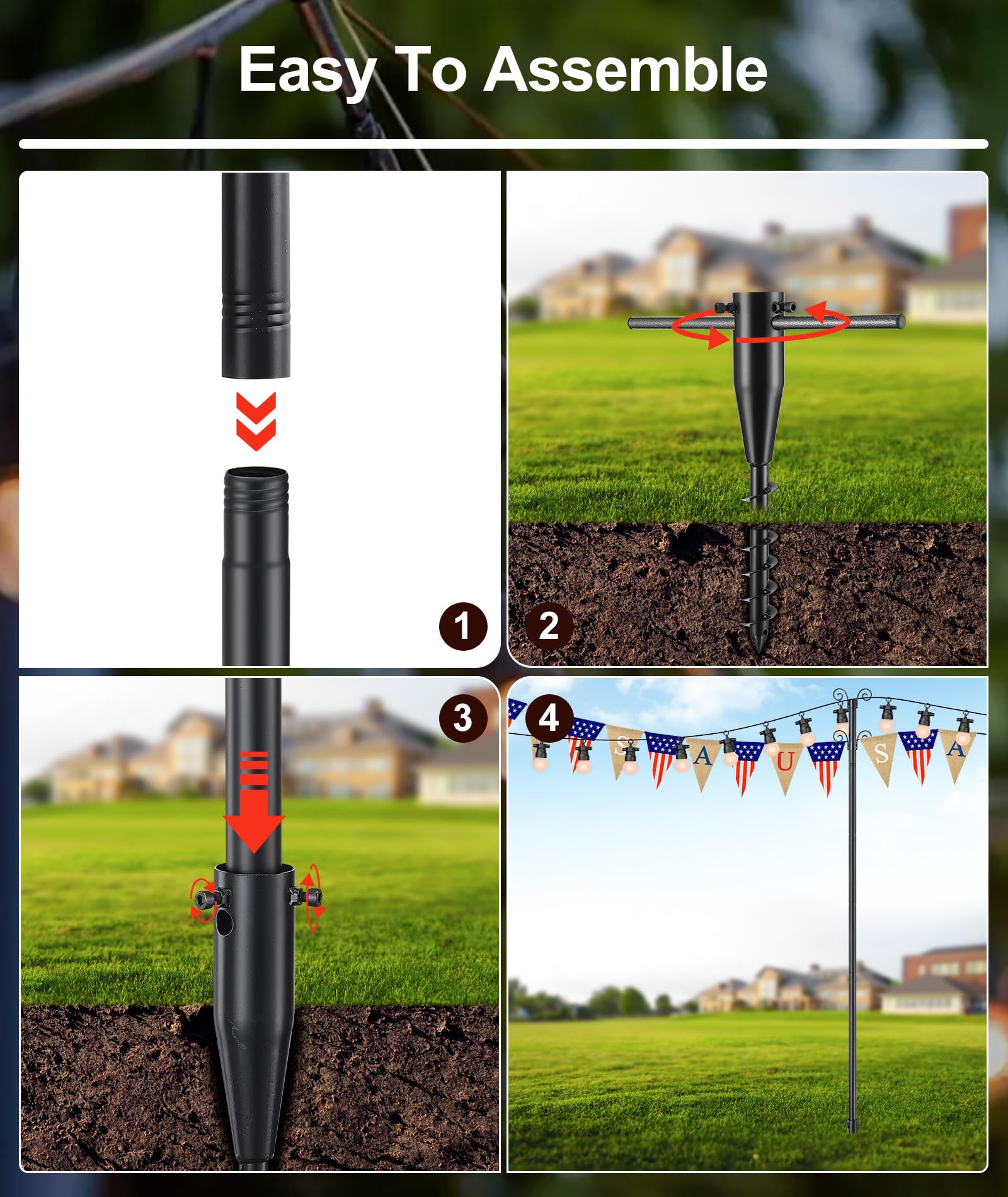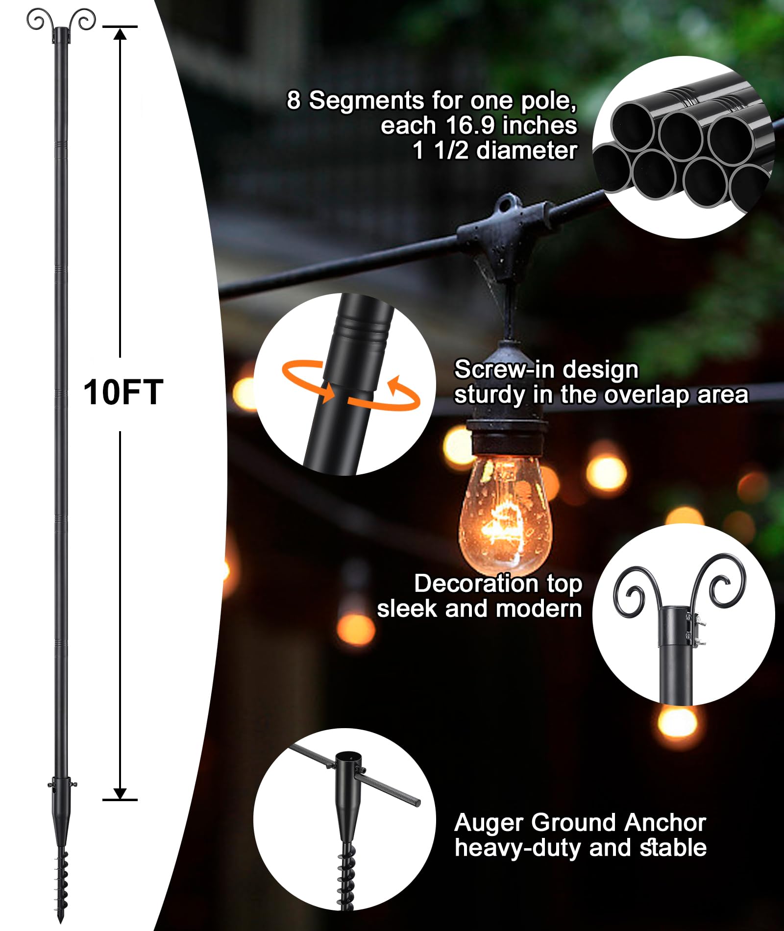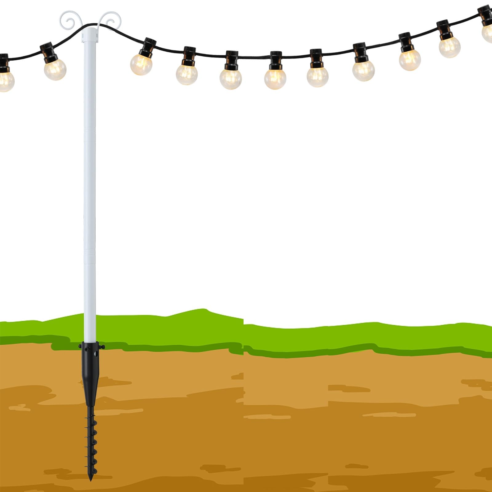 String Light Poles - White 10FT Outdoor Light Poles for String Lights Hanging, Waterproof Patio Light Poles for Outside with Heavy Duty Spiral Ground Anchor for Backyard, Yard, Garden, Deck