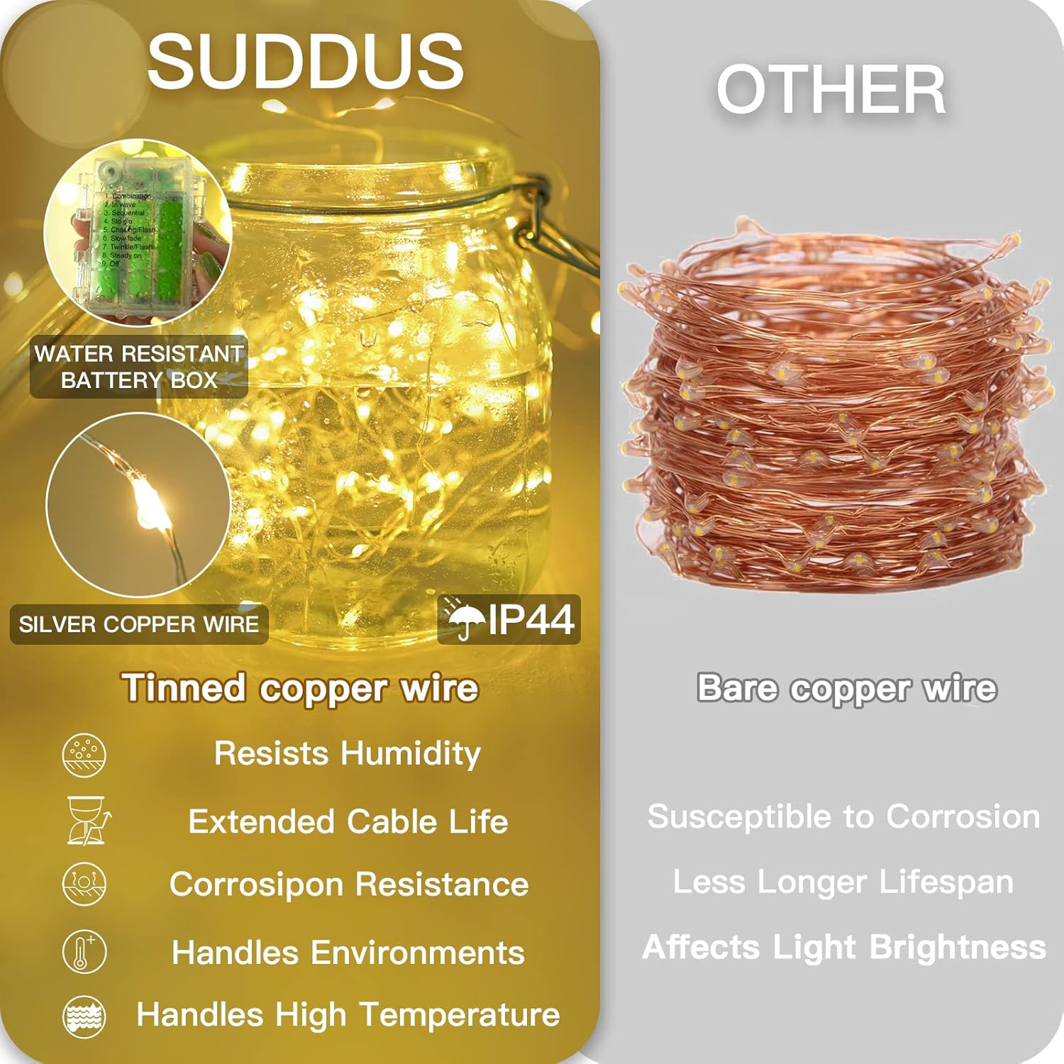 suddus 66ft 200 LED Outdoor String Lights, Warm White Fairy Lights Battery Operated with Remote, Led Twinkle Lights for Bedroom, Dorm, Patio, Tapestry, Backyard, Garden, Christmas, Party, Indoor