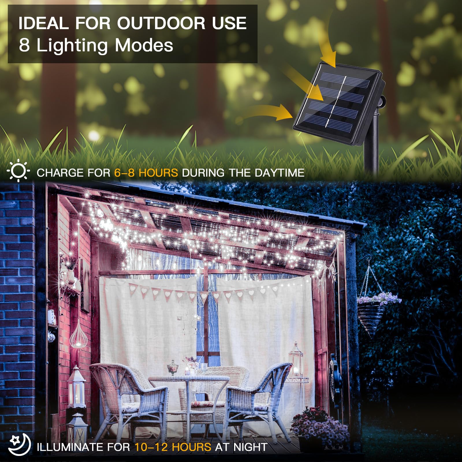suddus Solar Fairy Lights Outdoor Waterproof, 2 Pack 33ft 100 LED Solar Twinkle Lights, White Solar Christmas Lights for Backyard Trees Patio Deck Garden Birthday Party Wedding Decorations