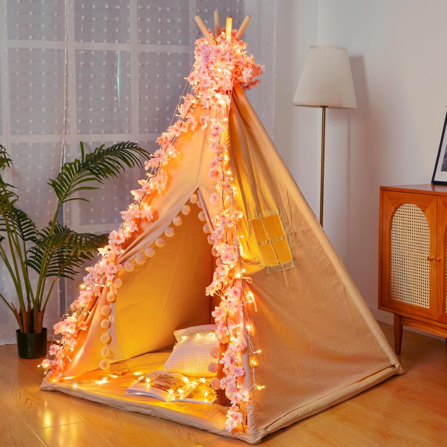 Sunm Boutique 12-Pack 70.8 Ft Artificial Cherry Blossom Garland Cherry Blossom Hanging Vine with 65.6 Ft Long 160 LED String Lights Silk Sakura Vines Garland for Wedding Party Home Decor, Pink