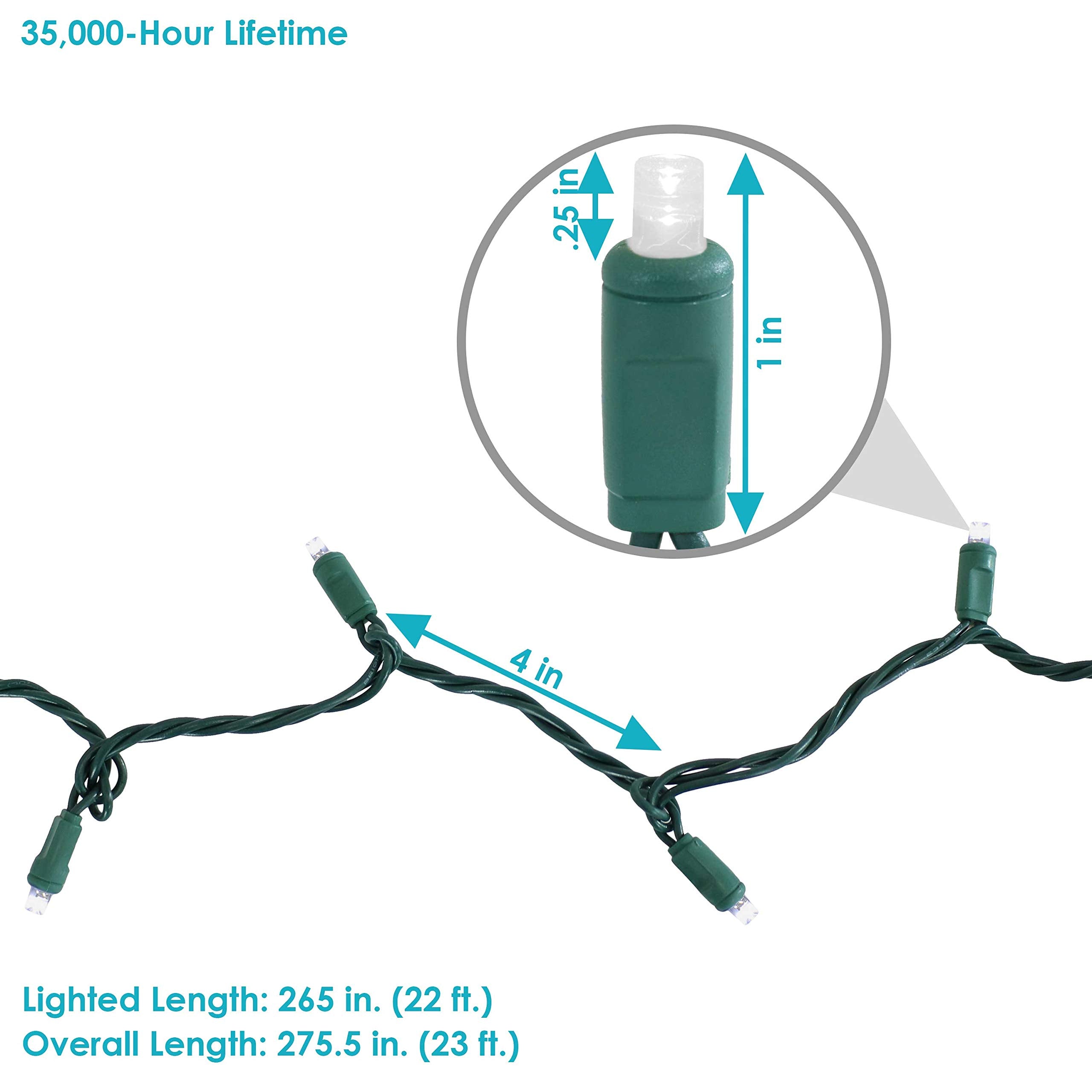 Sunnydaze 70-LED Christmas Outdoor String Lights - 5mm Wide Angle Style Bulbs - 22-Foot Lighted Length - White