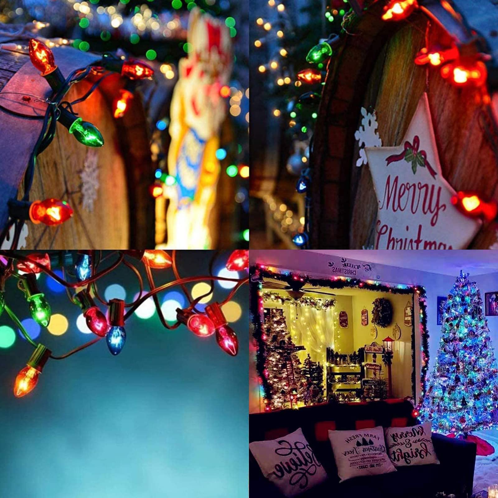 C7 Clear Multicolor Light Bulbs: 25 Count 120V 5W light bulbs with Clear Red5, Pink5, Yellow5, Blue5,Green5, each E12 Base Light Bulbs fits E12 candelabra base sockets.The C7 incandescent small light bulbs measures 1.0'' wide by 2.25'' tall (including the base) Colored Christmas Light Bulbs: C7 christmas colored light bulbs are made of unique glass material, C7 colorful candle night light bulbs are easier to clean and do not fade and it looks very elegant and generous.C7 replacement christmas light bulbs have a lifespan of 1,000 hours