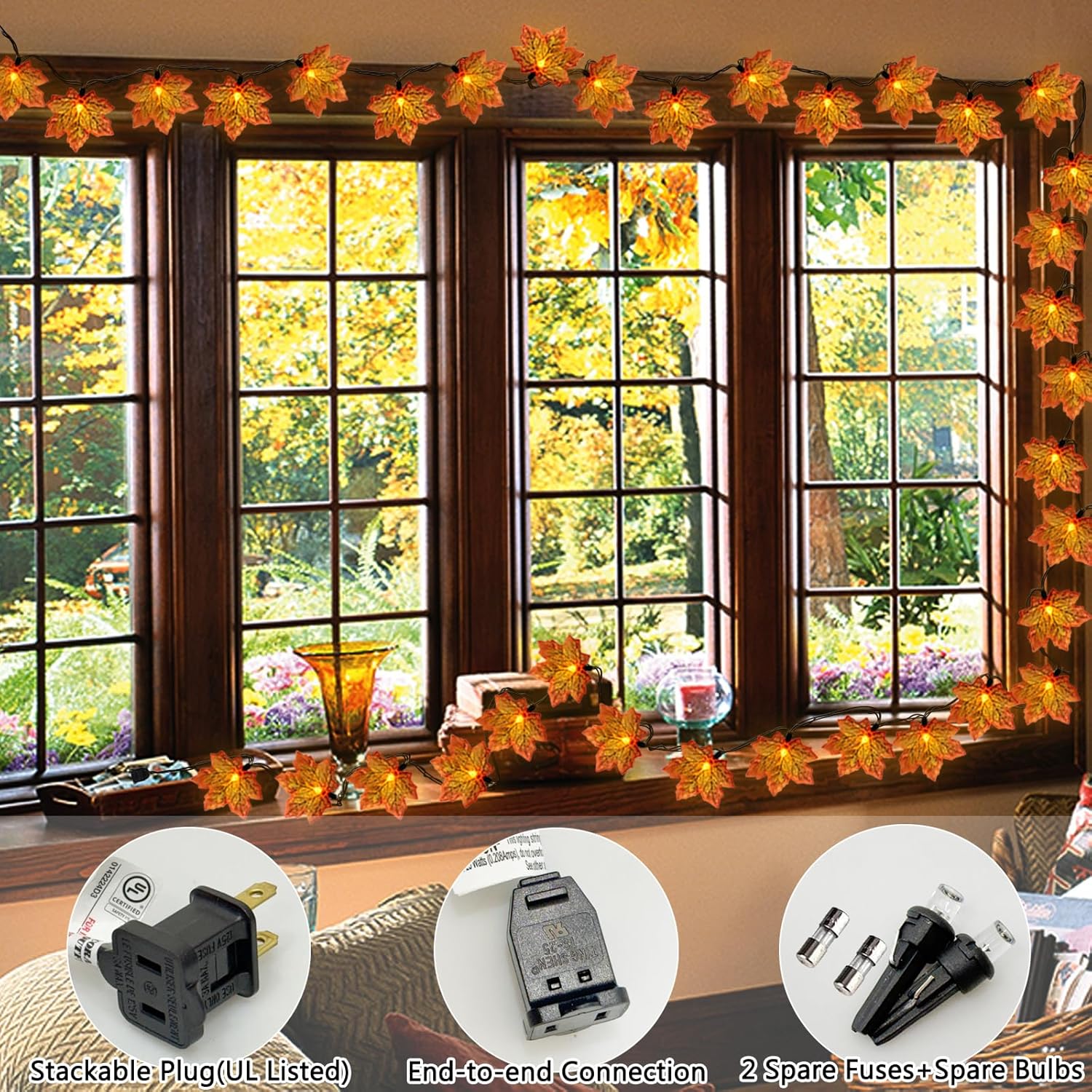 SUNSGNE Fall Lights Thanksgiving String Lights, 13.6FT 35LED Orange Leaf Lights Plug-in Fall String Lights for Thanksgiving Friendsgiving Harvest Autumn Fall Party Indoor Bedroom Home Decorations