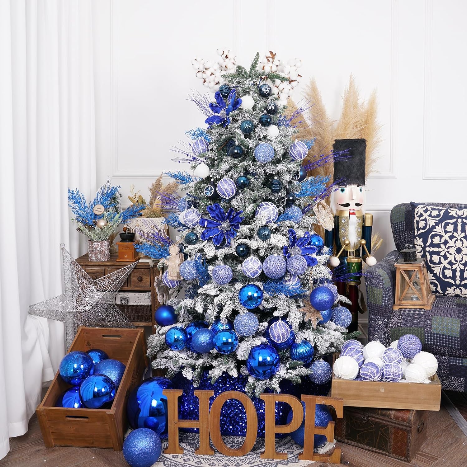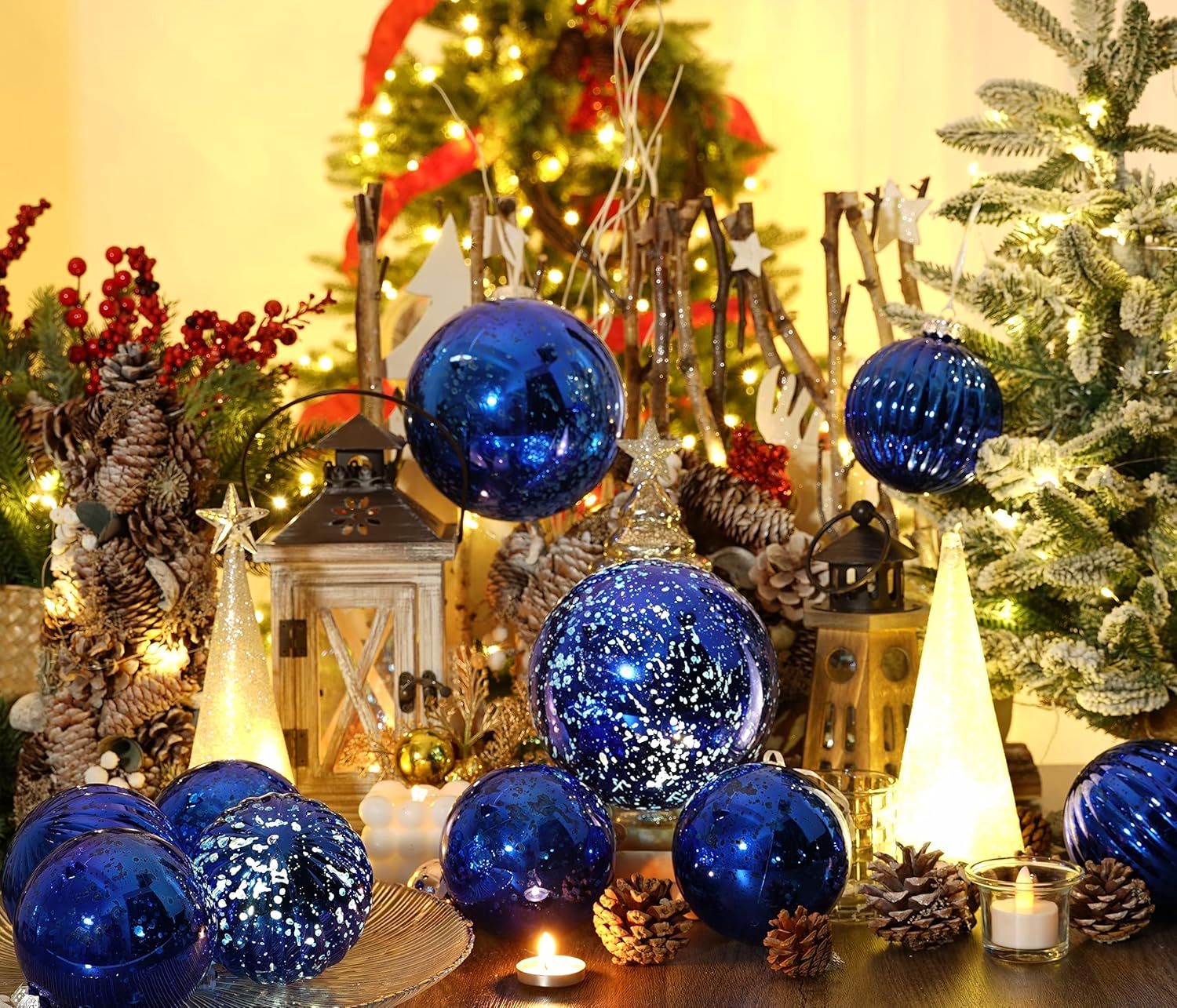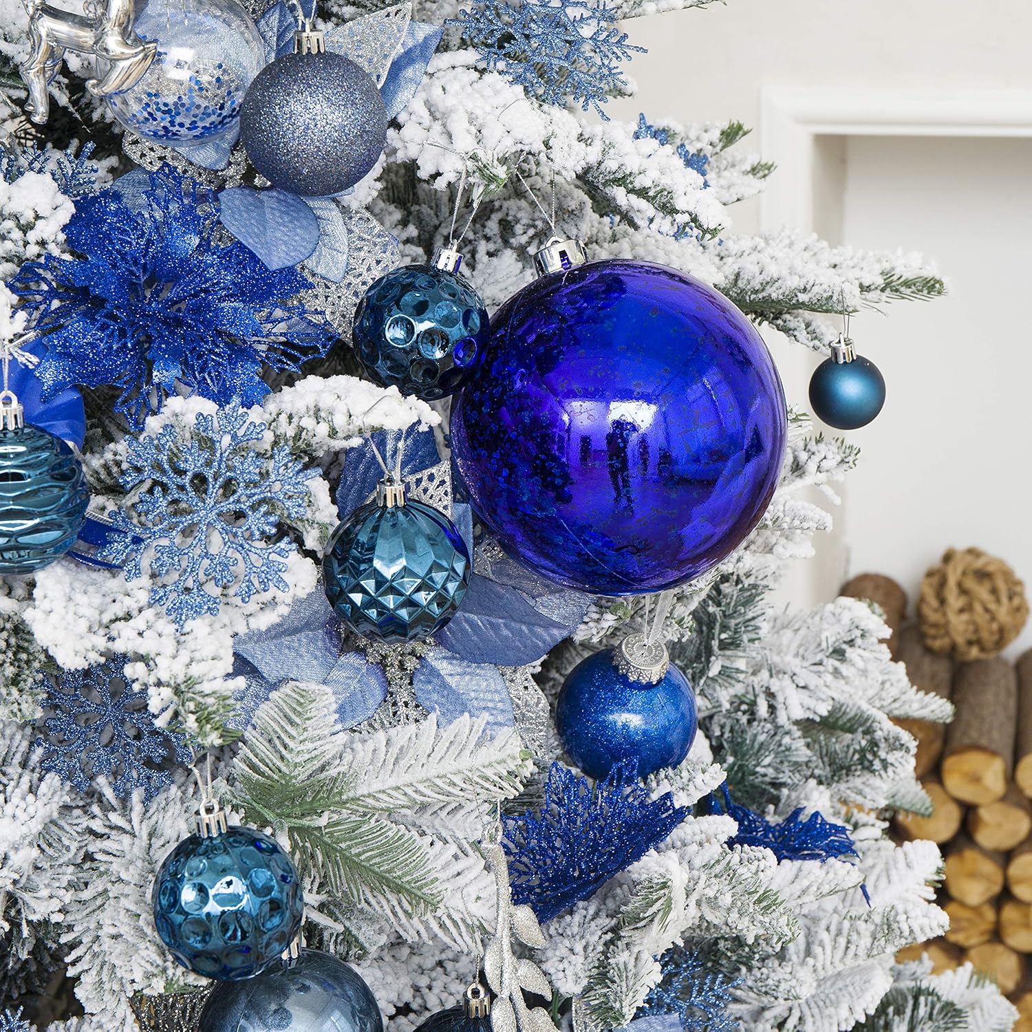 Sunshine Shiny Christmas Ball Ornaments,Giant Hanging Christmas Tree Ornament Decorations for Holiday, Extra Large Shatterproof Retro Mercury Balls Set (Blue, 6inch)