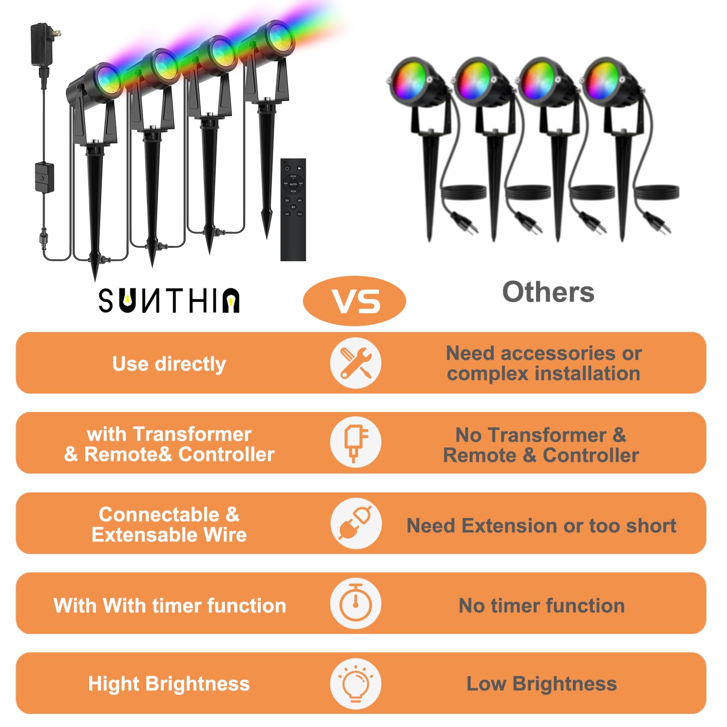 SUNTHIN Outdoor Landscape Lighting with Remote, RGBW Color Changing Spot Uplights,6 Pack