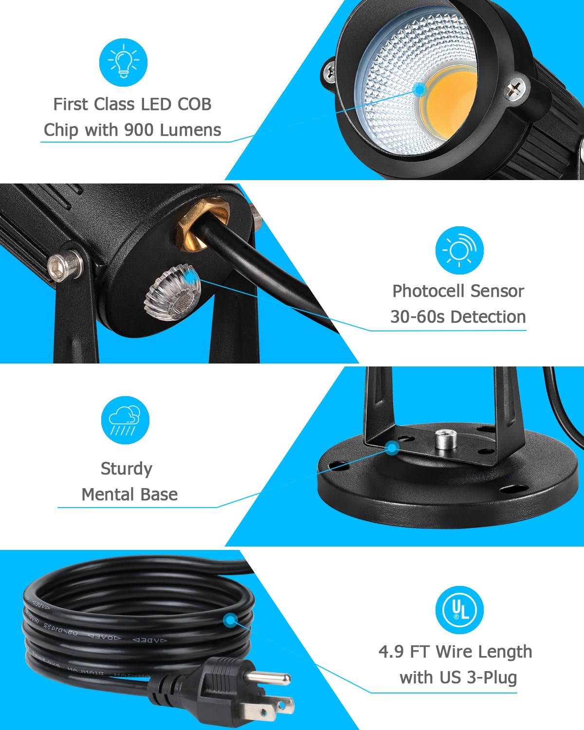 SUNVIE Dusk to Dawn Outdoor Lighting 120V LED Spot Lights Outdoor Landscape Spotlights with Photocell Sensor Waterproof Outdoor Spot Lights for Yard 7W Outdoor Spotlight Flag Light for Garden Tree