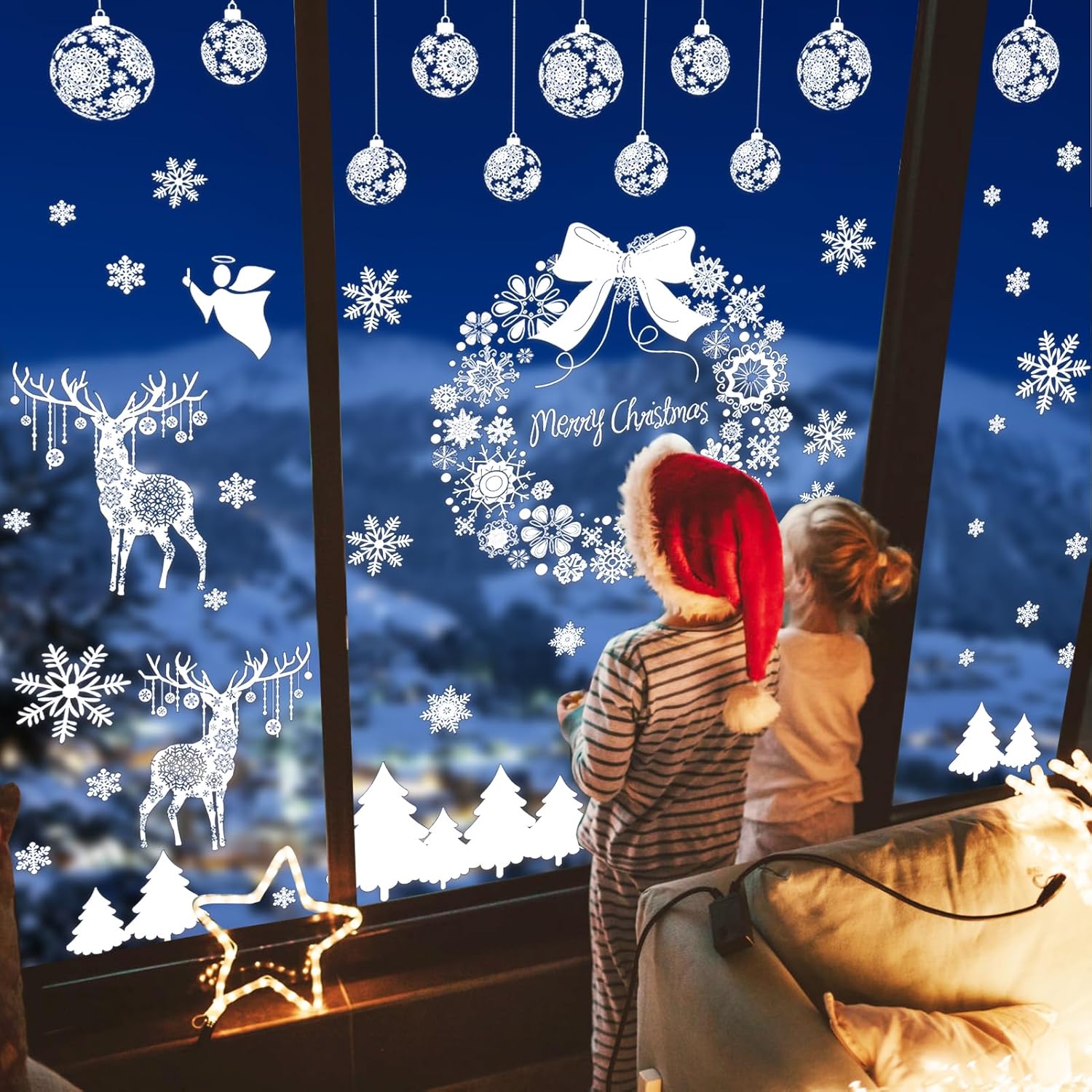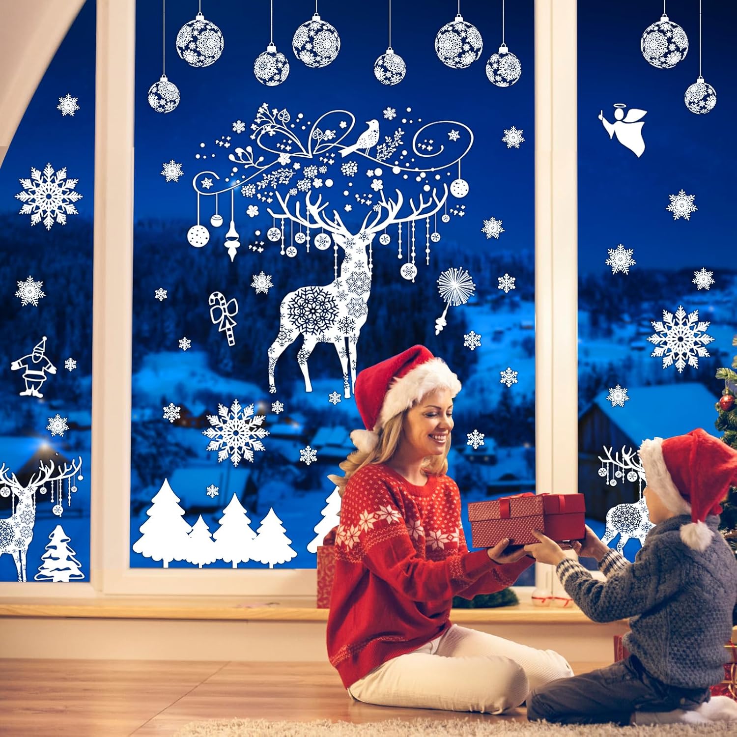 🎄FESTIVE ADORABLE CHRISTMAS ATMOSPHERE🎄: Christmas window clings, elements of Christmas ball, reindeer, wreath, Christmas tree, snowflakes, etc. Classic Christmas character, Christmas window clings adds perfect finishing touch to your Xmas décor, walking into a whiter winter wonderland, a great way of Christmas cheer🎄SUPER HUGE, EXCELLENT VALUE🎄: Vibrant & unique super large Christmas patterns that 4 sheets Christmas window decorations, each Christmas decoration sheet size: 28.5” L x 21.25” W. Extra large Xmas decorations, it’s great for your shop window pane, coffee shops, supermarket, sliding glass door, patio door, dress up room look warm and inviting