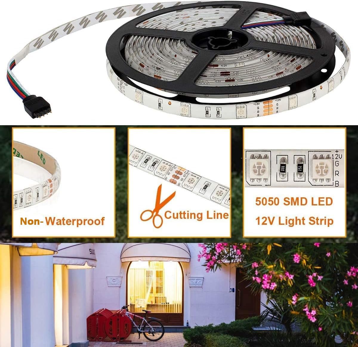 SUPERNIGHT LED Strip Lights, RGB Color Changing 16.4Ft SMD5050 LEDs Flexible Light Strip Rope Lighting Kit with 44 Key Remote Controller and 12V Power Supply for Bedroom TV Backlight Christmas