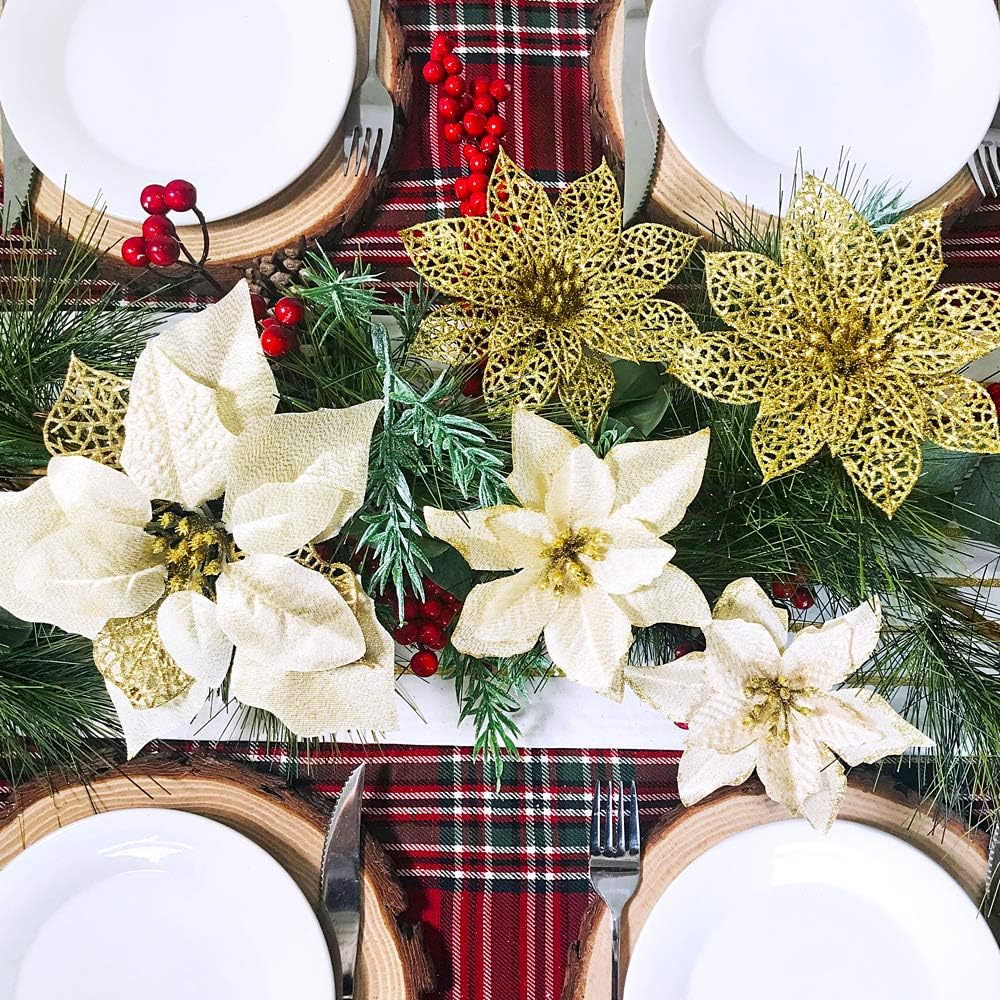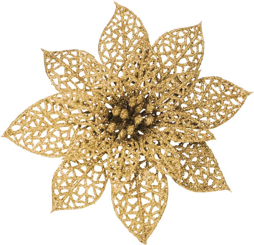 Supla 24 Pack Christmas Gold Glitter Poinsettia Flowers Picks Christmas Tree Ornaments 5.9" Wide for Gold Christmas Tree Wreaths Garland Holiday Seasonal Wedding Decorations White Box Included
